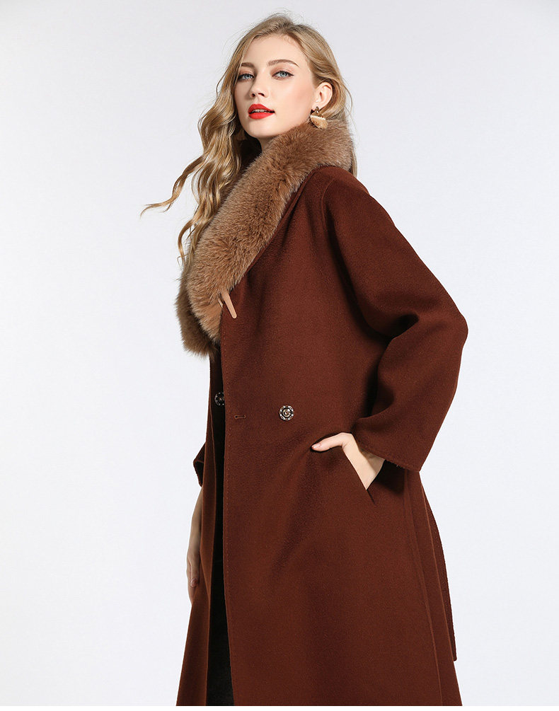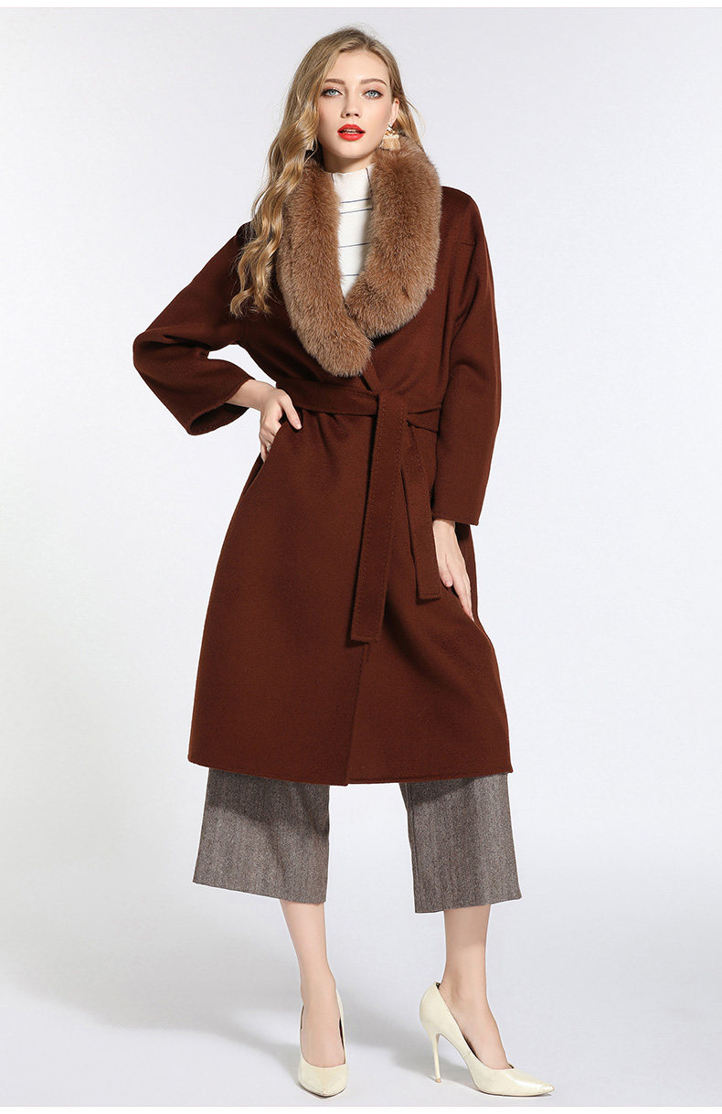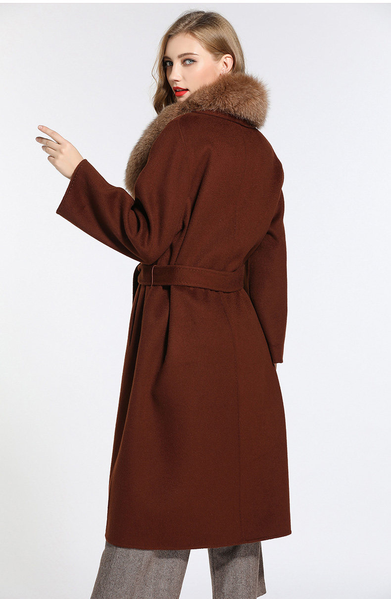 【无毛领】【100%绵羊毛】乔万尼冬季外套宽松复古慵懒气质系带羊毛呢子大衣女长款过膝EB4A037