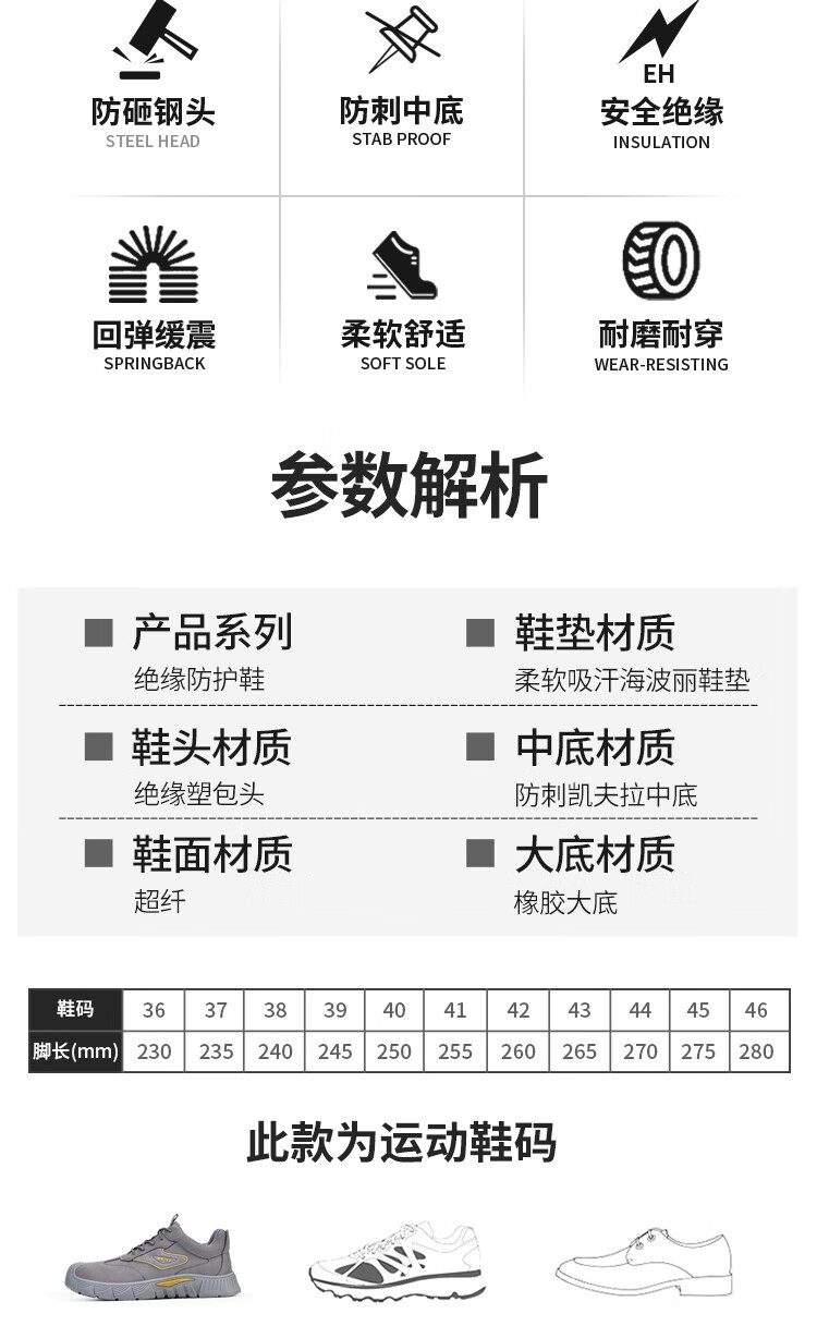 【绝缘】新品秋季款防砸防刺劳保鞋防水绝缘鞋10KV男女同款功能鞋皮面