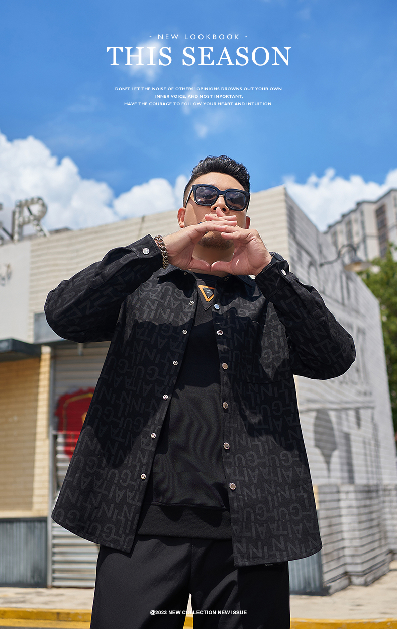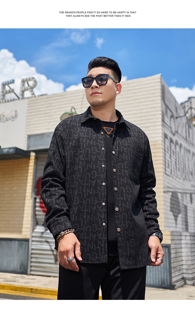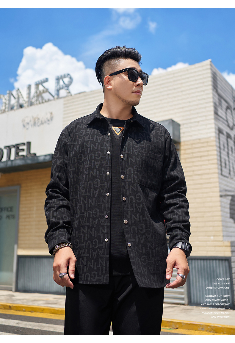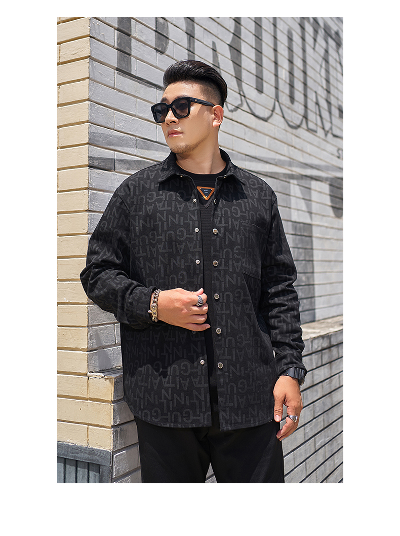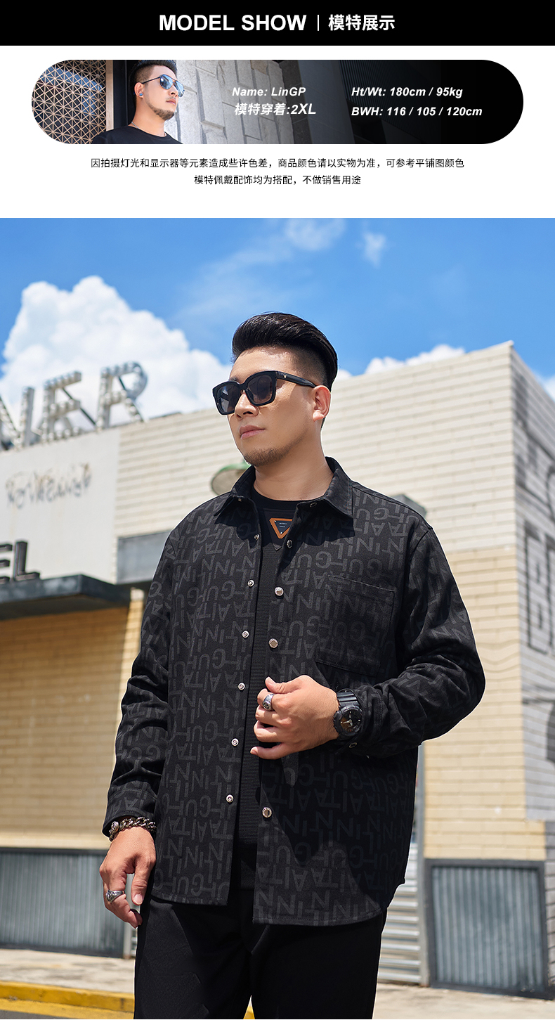 【圈】【新款DMH】大依优型大码加绒外套翻领夹克加肥加大肥佬休闲上衣男士胖子时尚