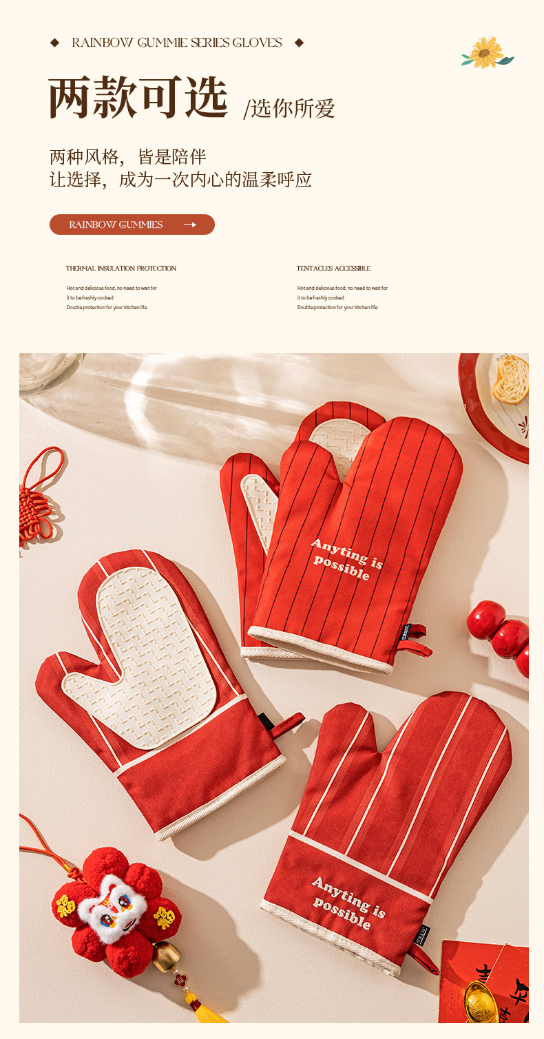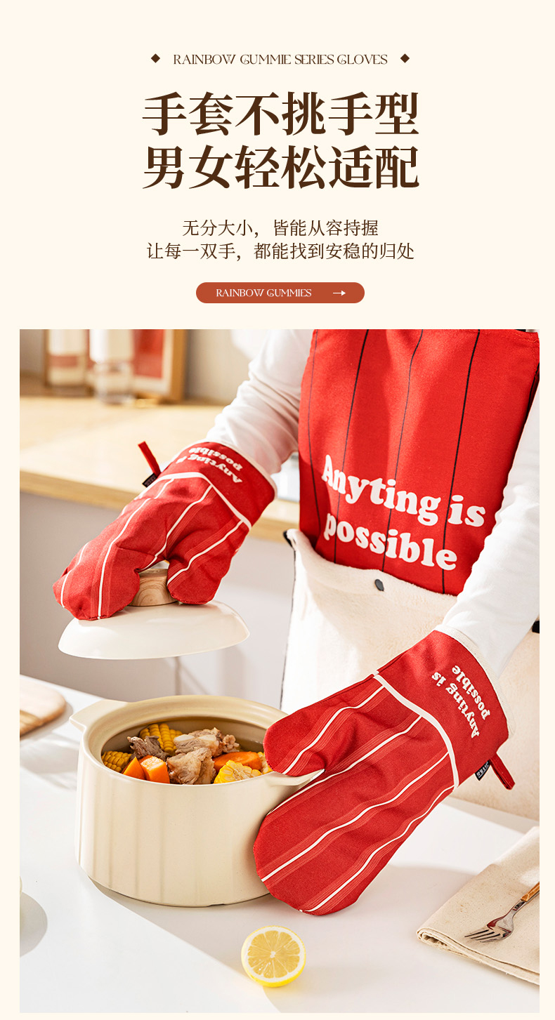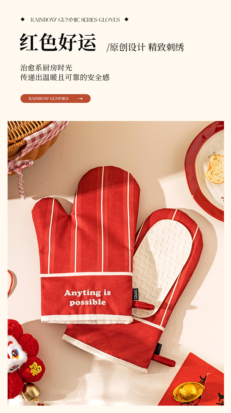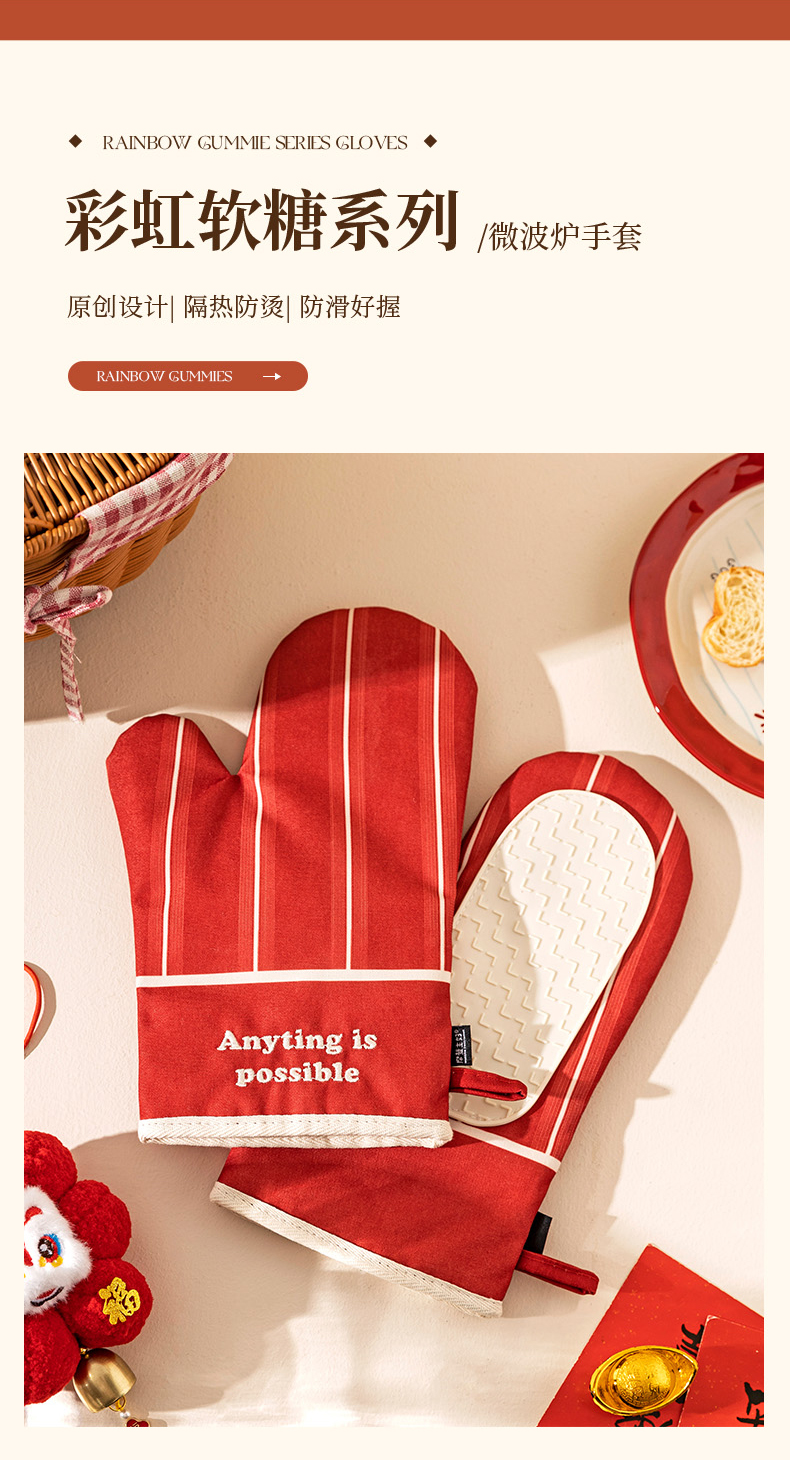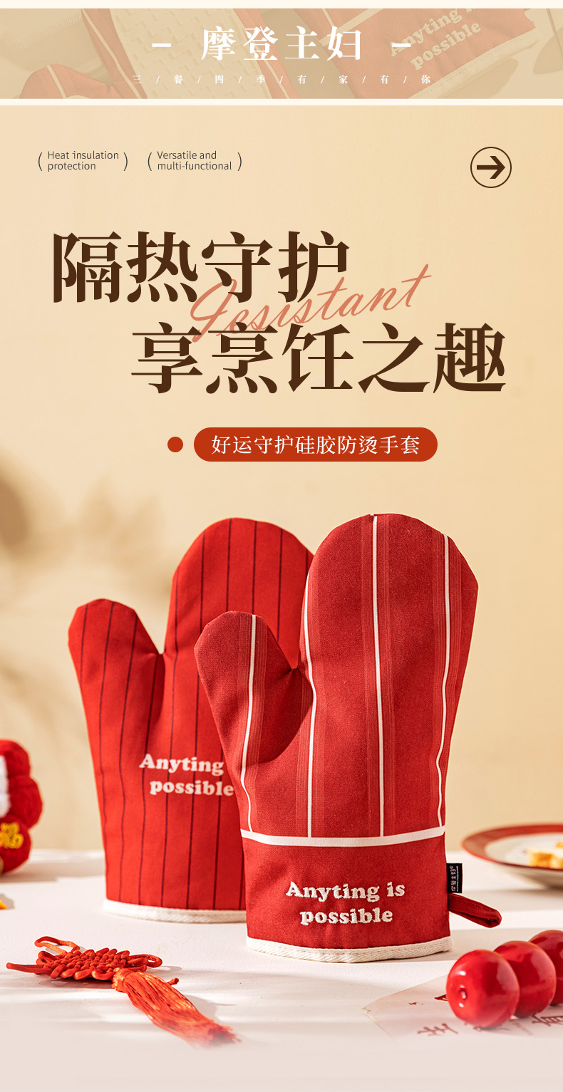 摩登主妇防烫手套硅胶厨房圣诞节烘培隔热耐高温蒸烤箱微波炉专用