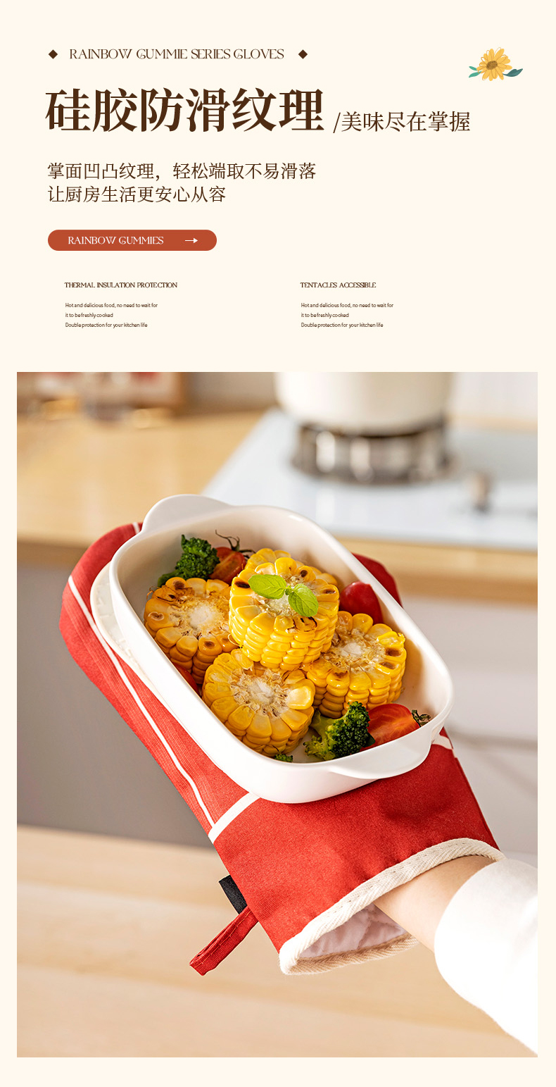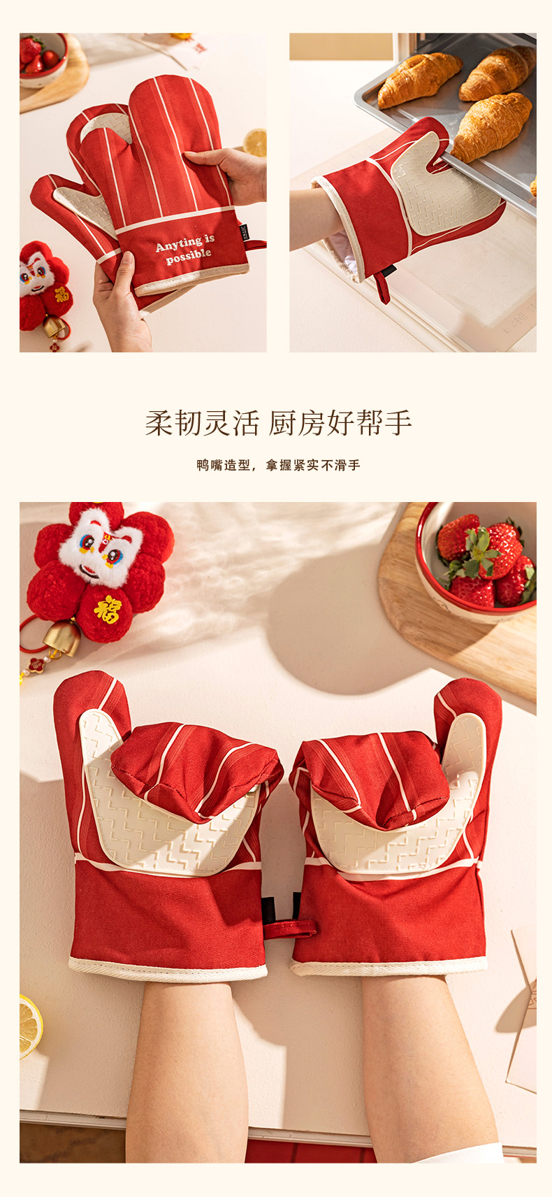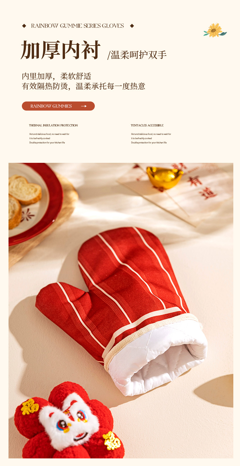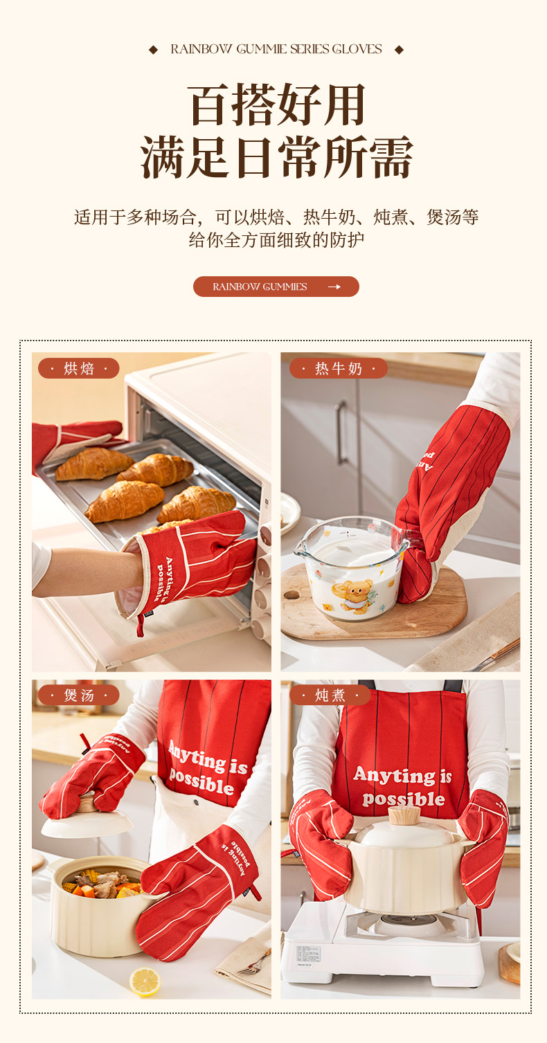 摩登主妇防烫手套硅胶厨房圣诞节烘培隔热耐高温蒸烤箱微波炉专用