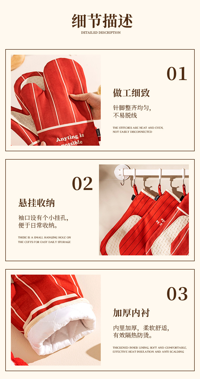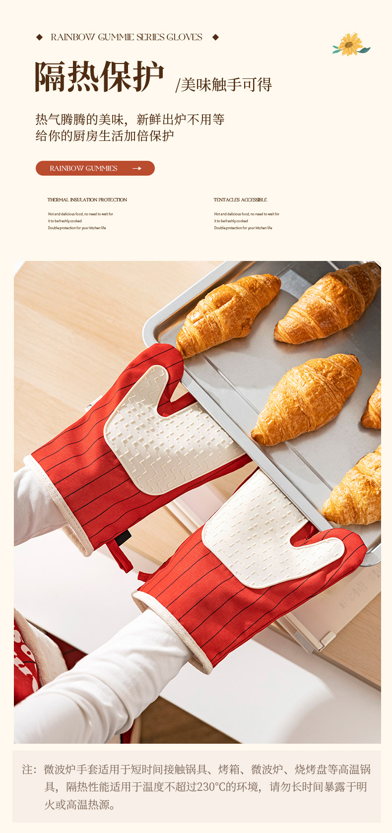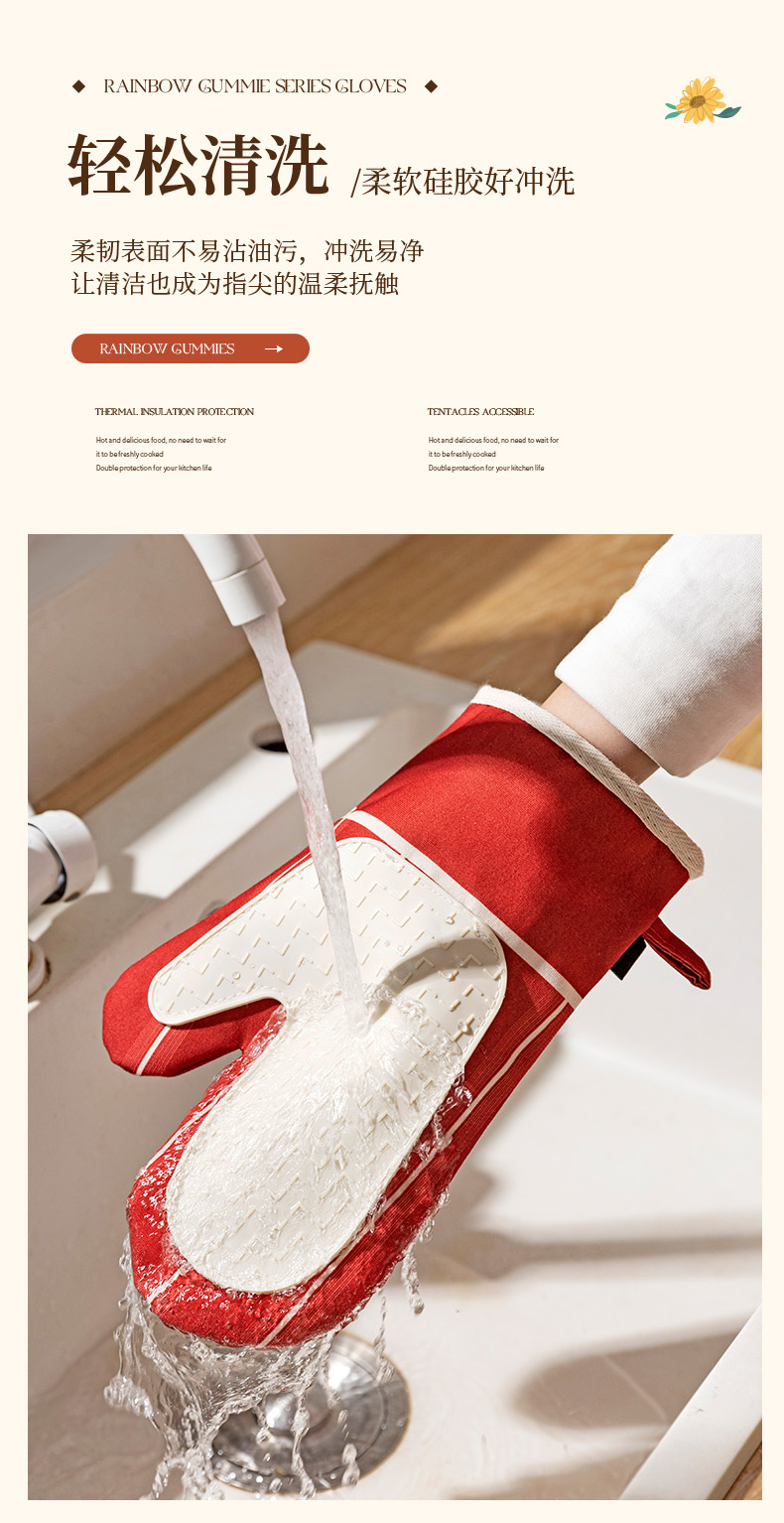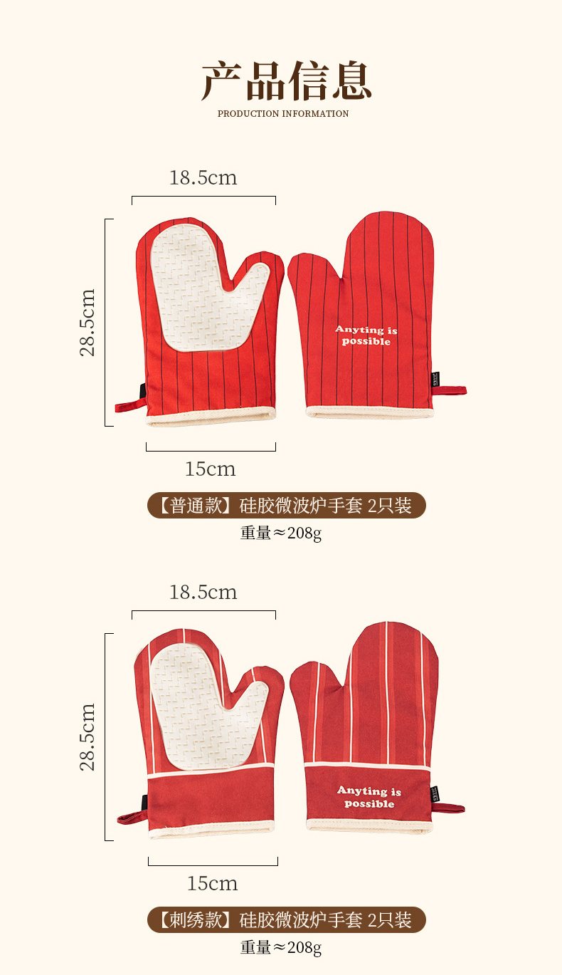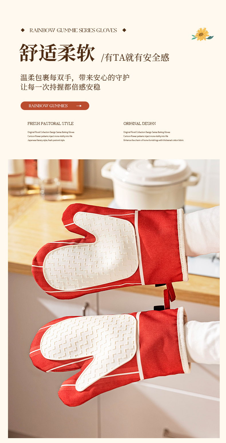 摩登主妇防烫手套硅胶厨房圣诞节烘培隔热耐高温蒸烤箱微波炉专用