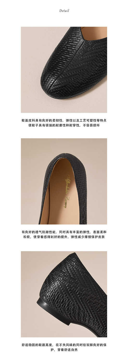 【预售5天】舒适柔软法式优雅圆头头层羊皮低跟单鞋女MBJR&6952