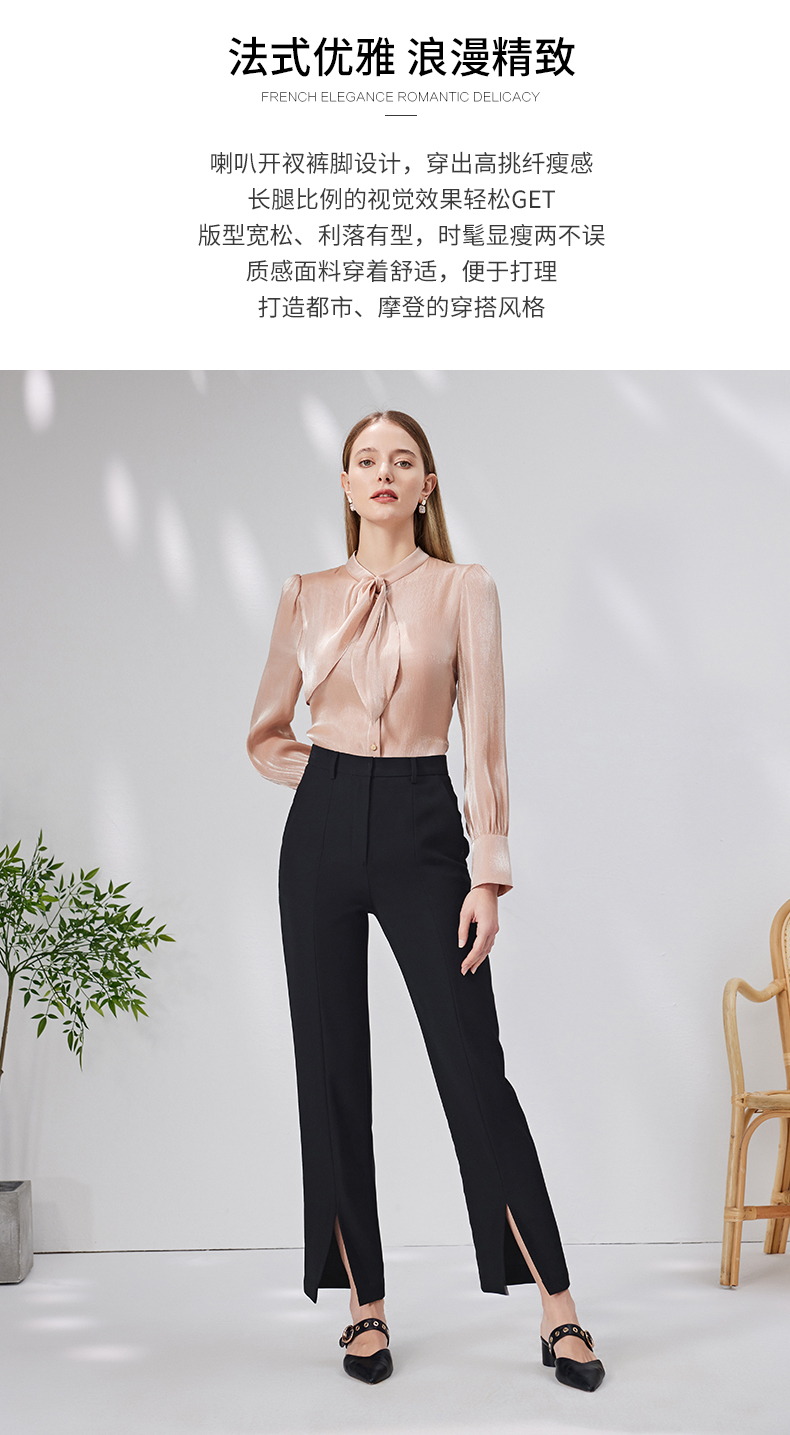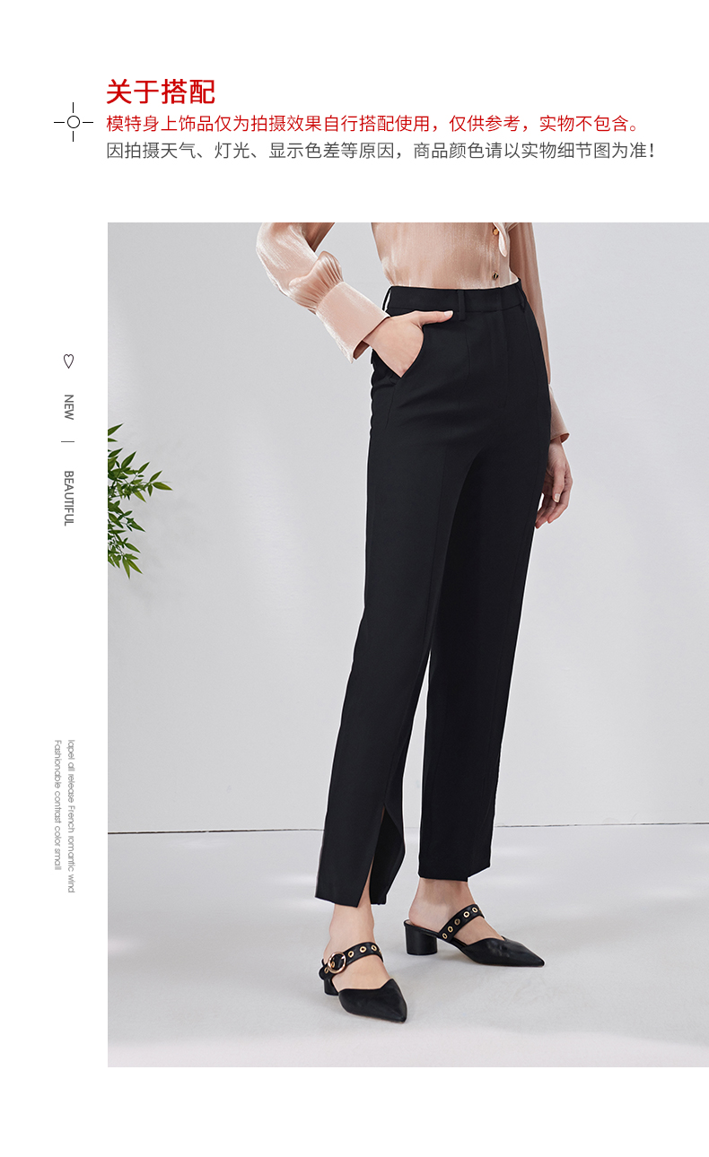 EITIE爱特爱新款时尚修身开叉高腰显瘦女长裤7105803