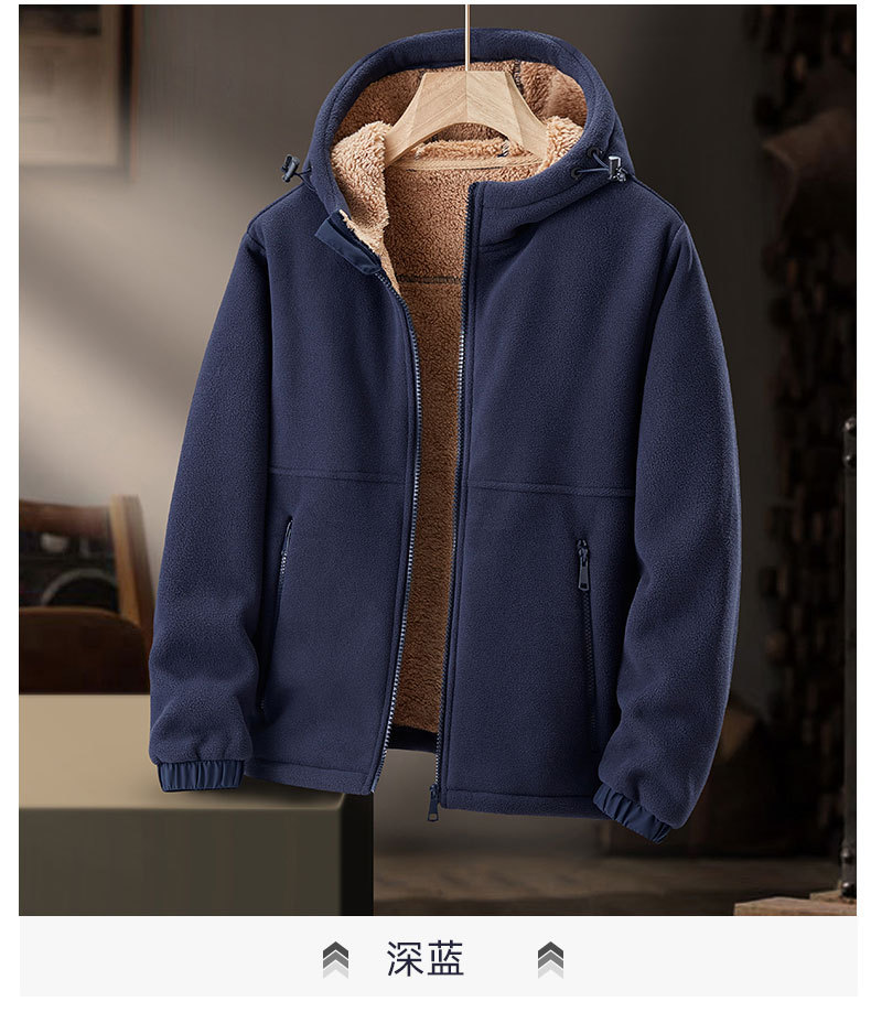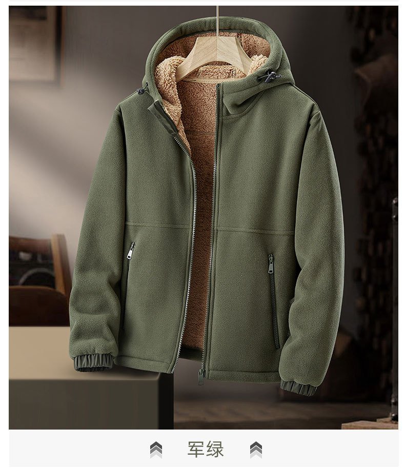 雀说新款重磅男士抓绒衣夹克休闲连帽羊羔绒加绒加厚保暖开衫外套AL9099