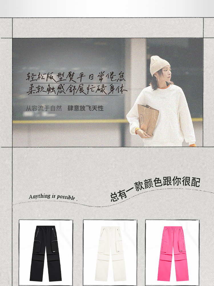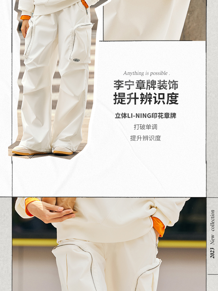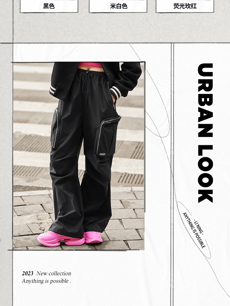 【XL断码】李宁钟楚曦同款卫裤23秋冬秀款直筒伞兵裤工装休闲宽松运动长裤女AKXT788【库存有限,如无货将做退款,介意慎拍!】