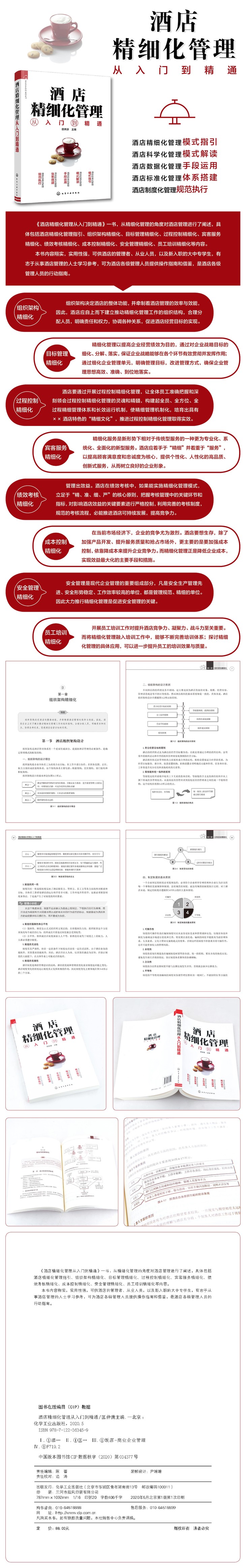 《酒店精细化管理从入门到精通》一书,从精细化管理的角度对酒店管理进行了阐述,具体包括酒店精细化管理指引、组织架构精细化、目标管理精细化、过程控制精细化、宾客服务精细化、绩效考核精细化、成本控制精细化、安全管理精细化、员工培训精细化等内容。 本书内容详实,实用性强,可供酒店的管理者、从业人员,以及新入职的大中专学生,有志于从事酒店管理的人士学习参考,可为酒店各级管理人员提供操作指南和借鉴,是酒店各级管理人员的行动指南。