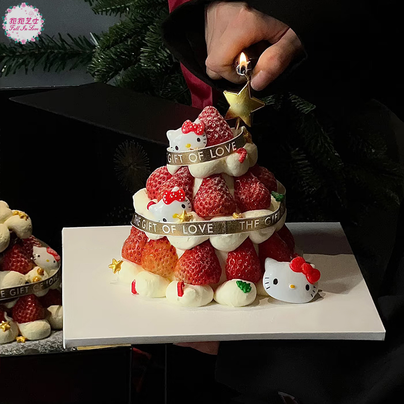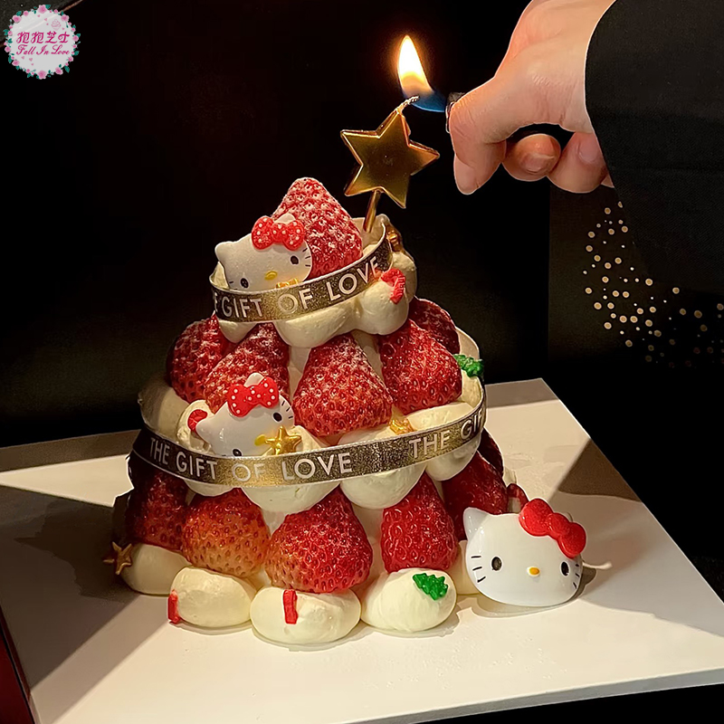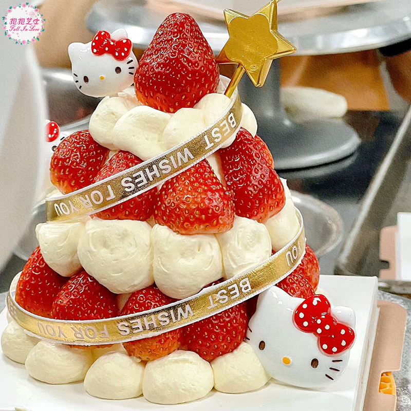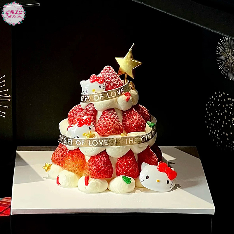 【圣诞新款】Hello Kitty草莓塔蛋糕 一层又一层的新鲜草莓,简直不要太诱人