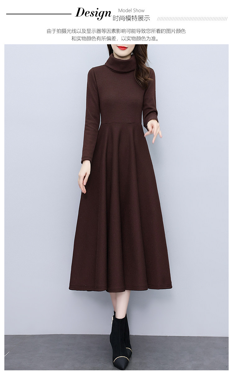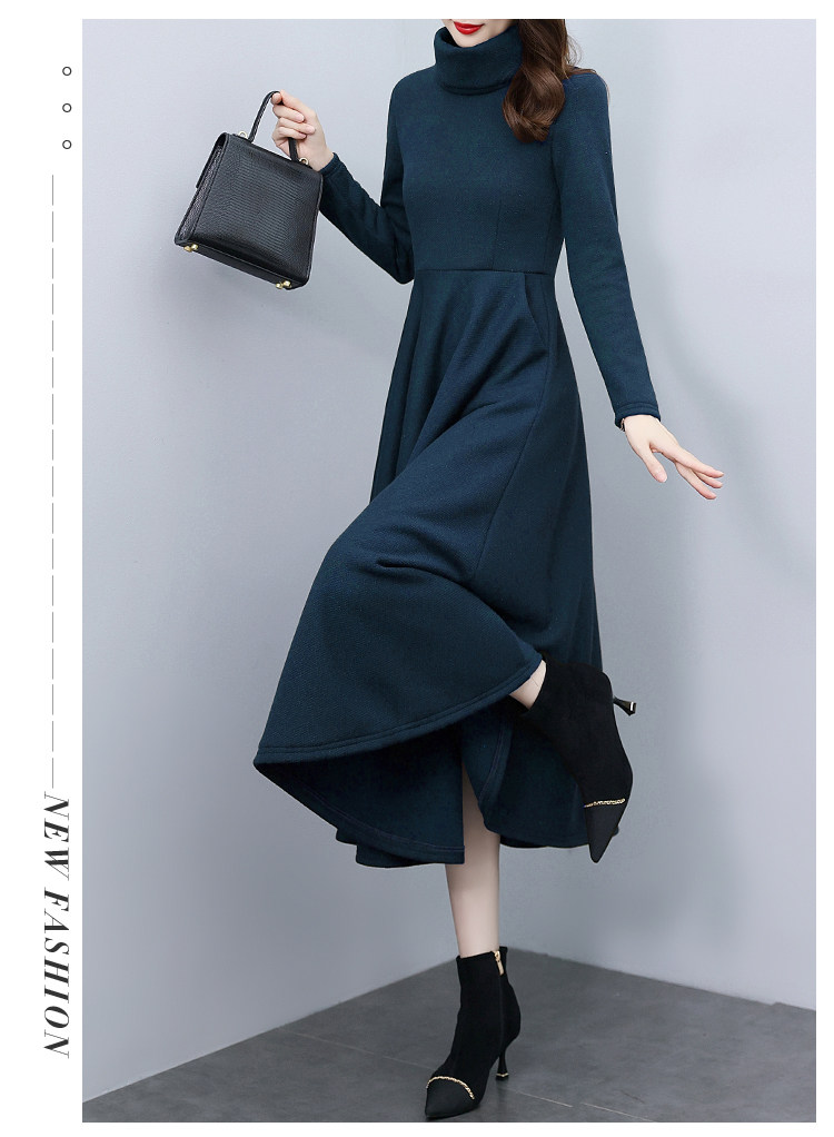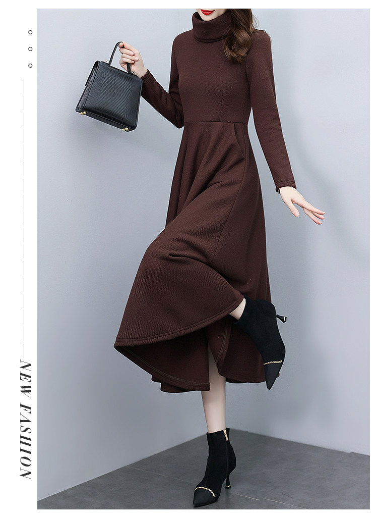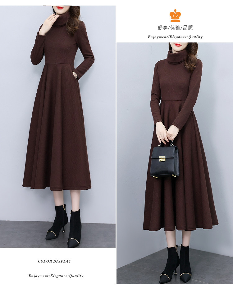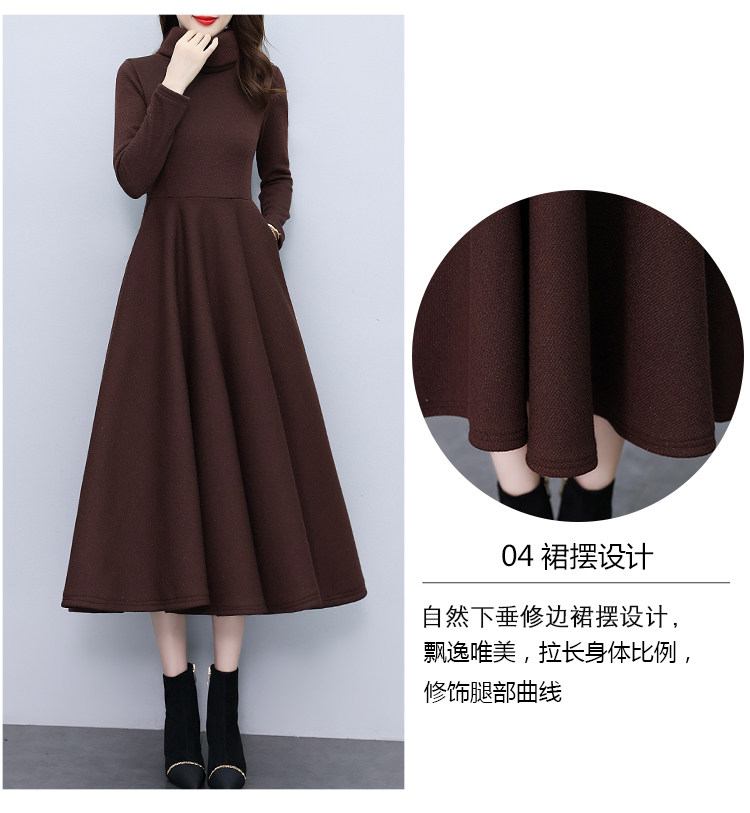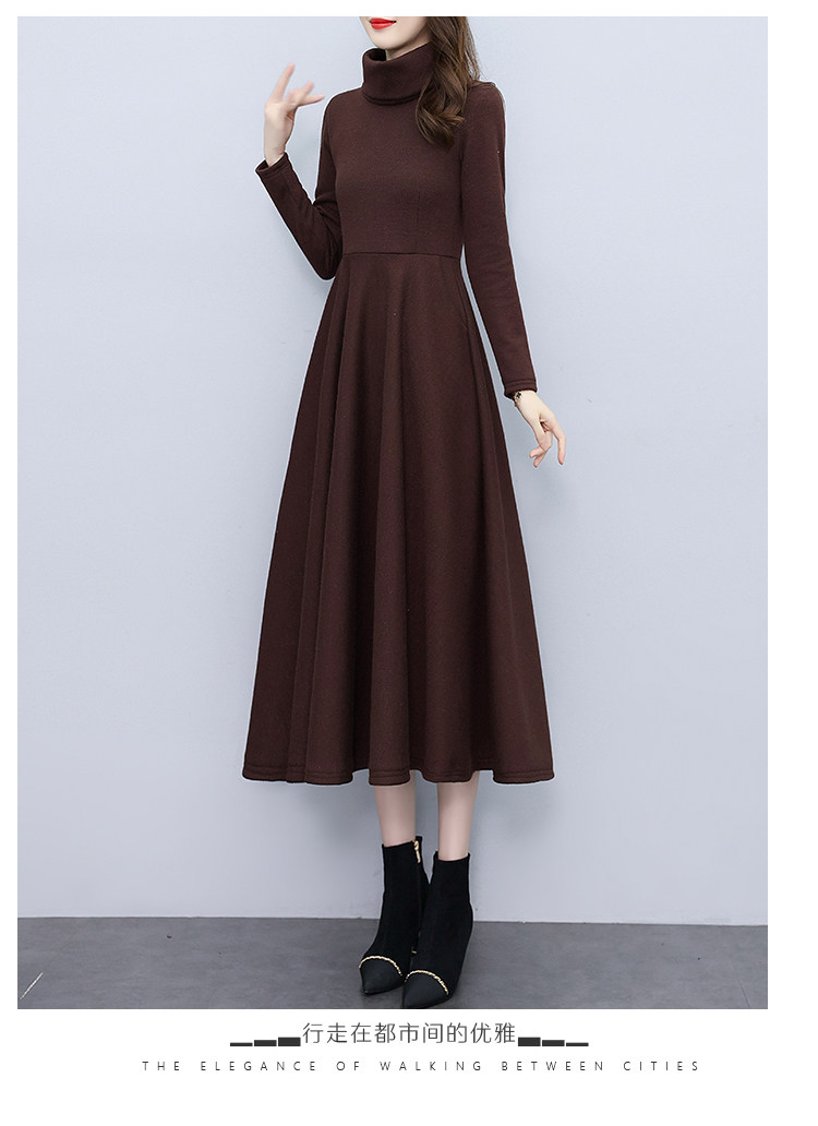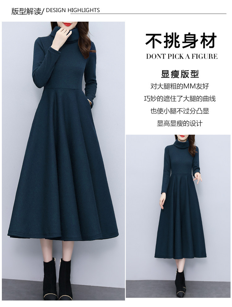 A1088冬季打底连衣裙女秋冬季2024新款长款加厚加绒配大衣的内搭长裙子