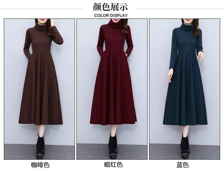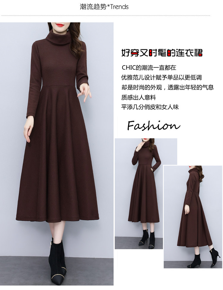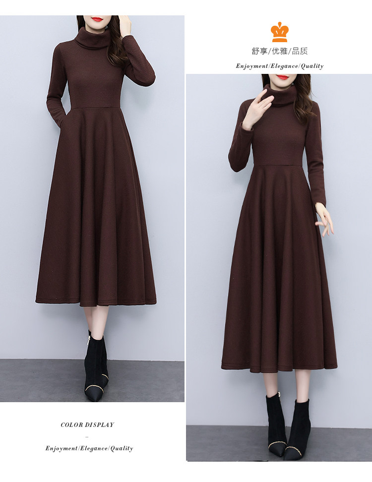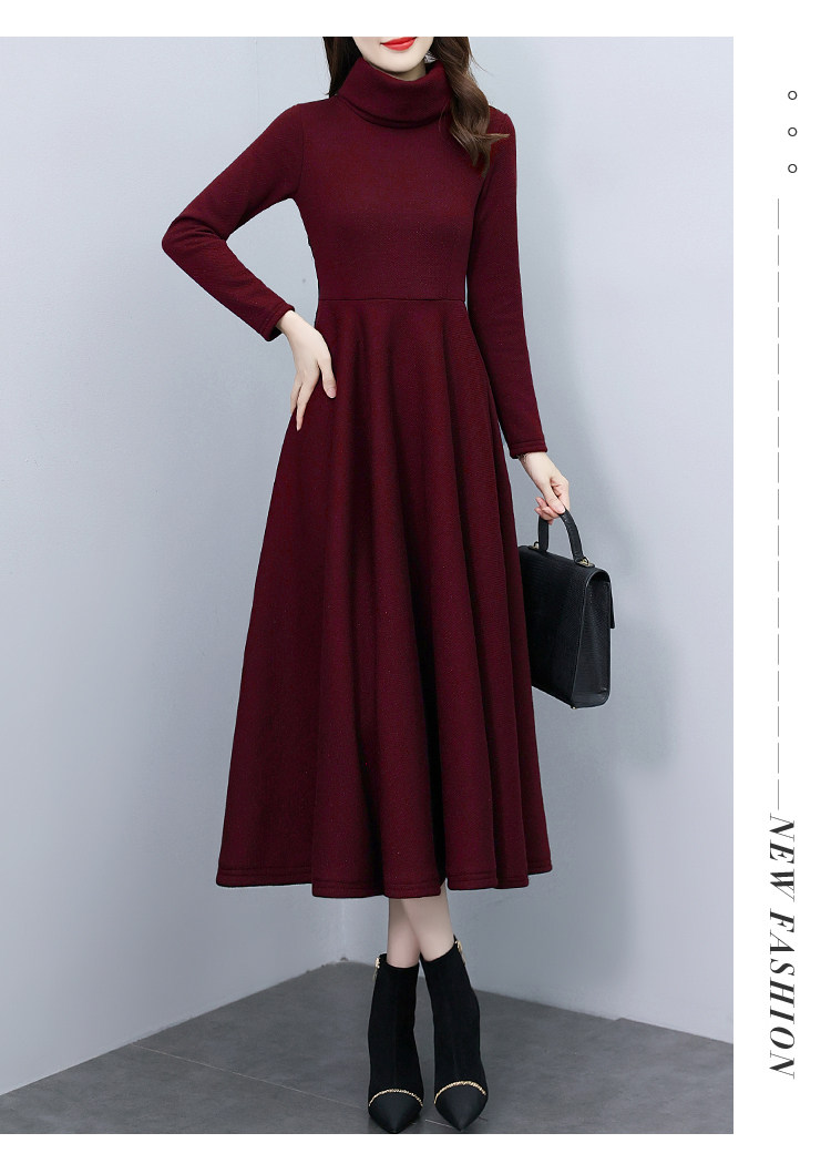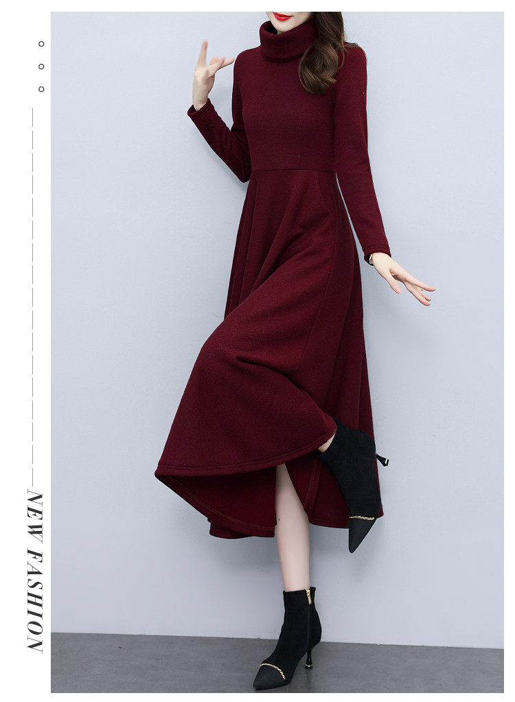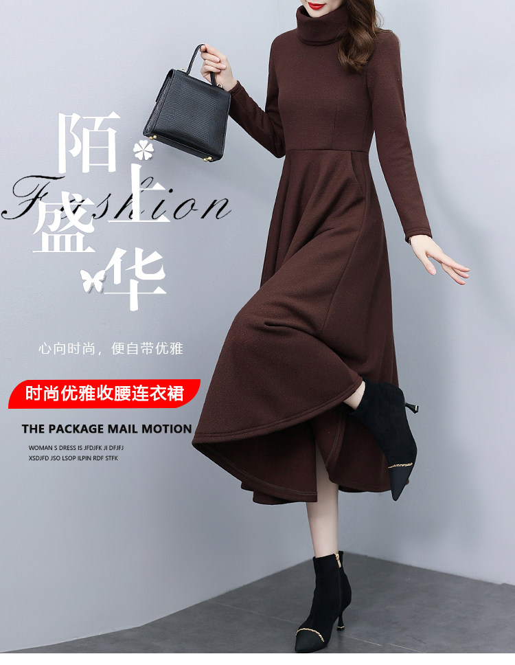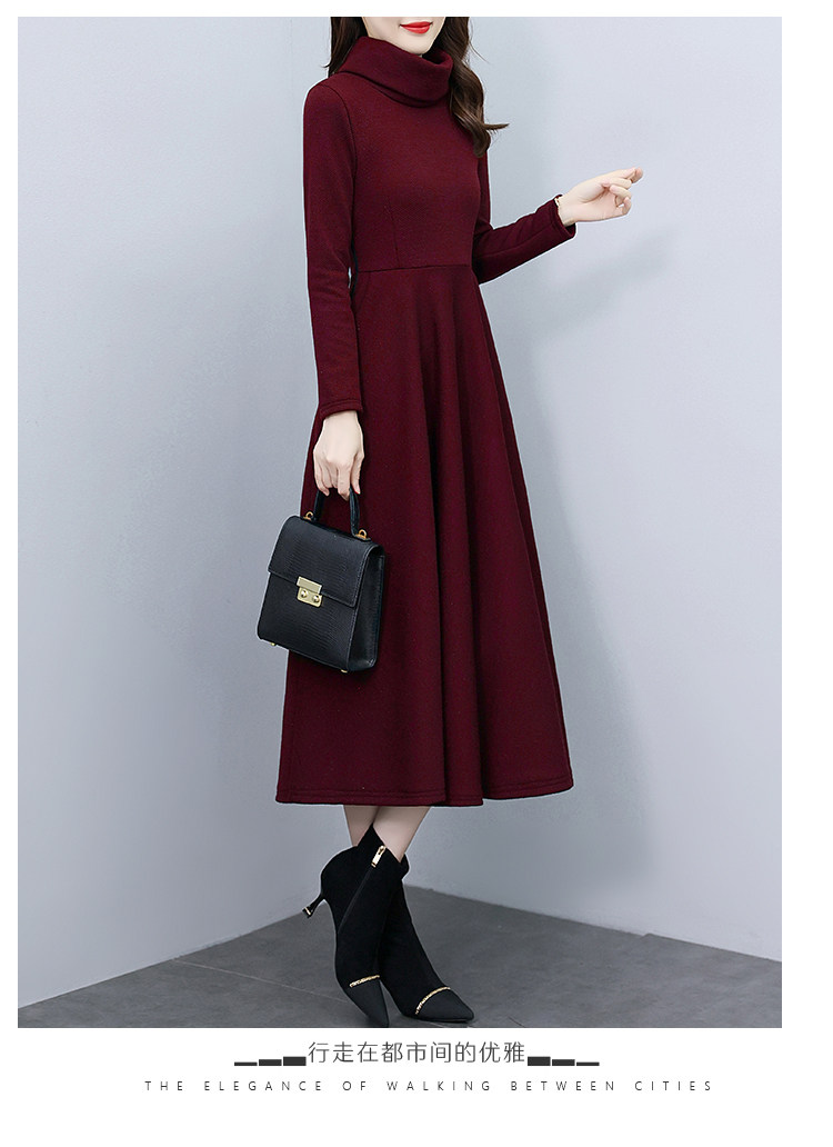 A1088冬季打底连衣裙女秋冬季2024新款长款加厚加绒配大衣的内搭长裙子