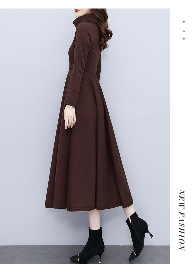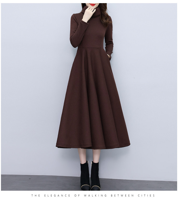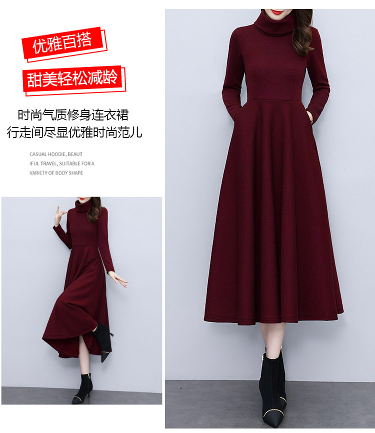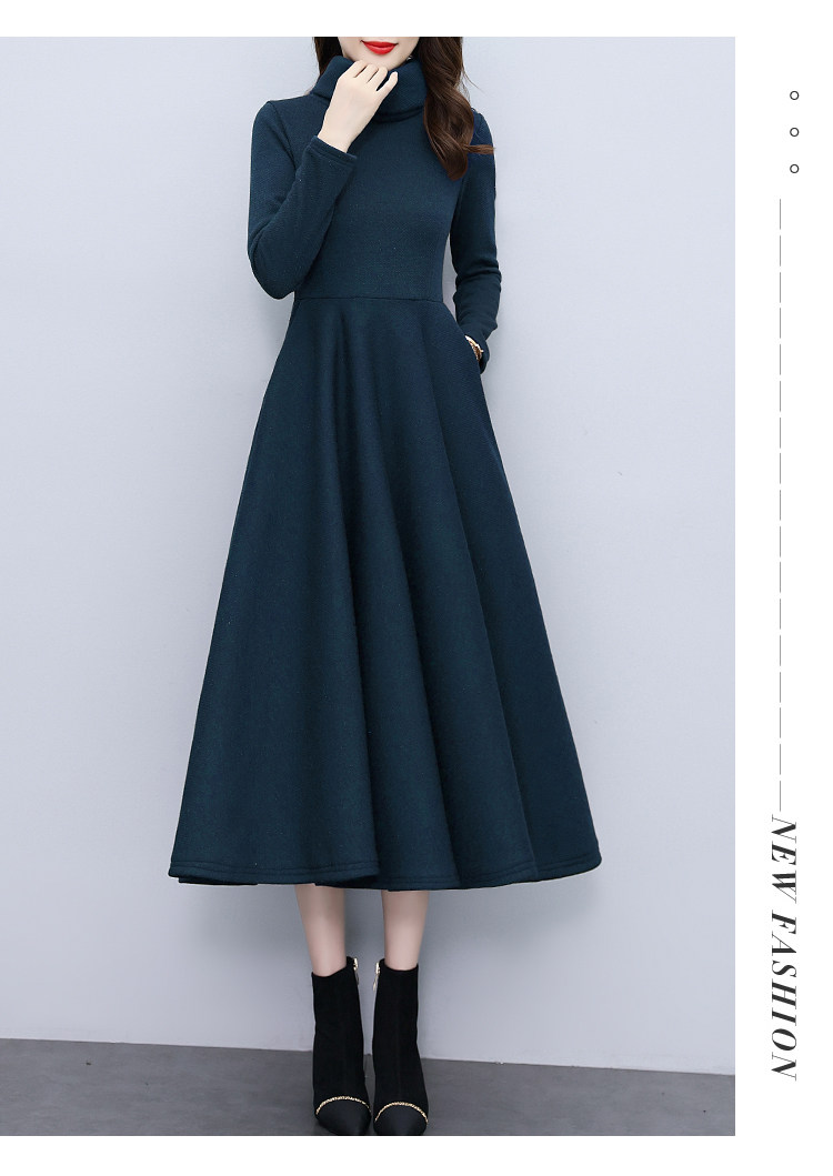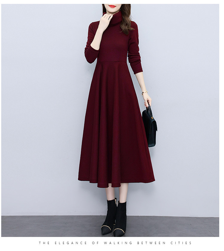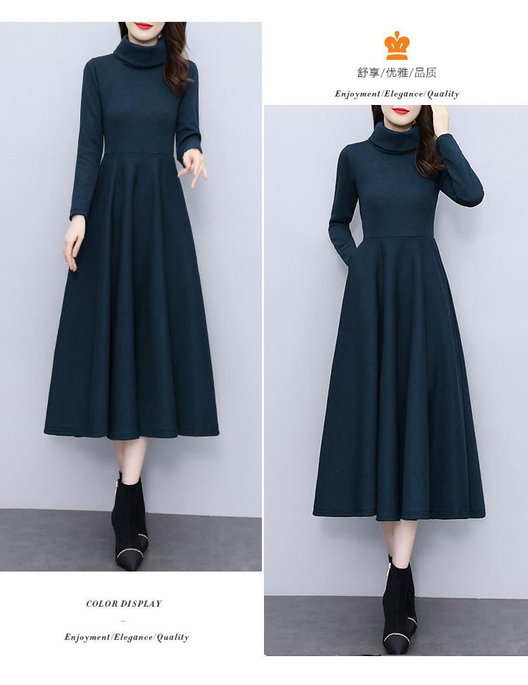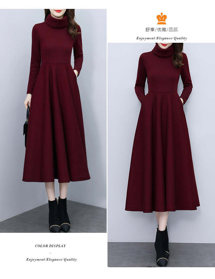 A1088冬季打底连衣裙女秋冬季2024新款长款加厚加绒配大衣的内搭长裙子
