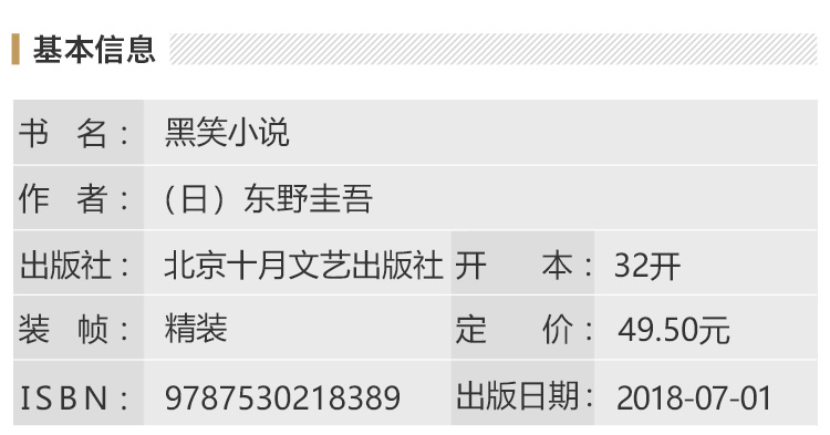 ★《黑笑小说》果然是充满了黑色的笑料啊!我是个俗人,不怎么读书,但看到《黑笑小说》中的笑料,竟哈哈大笑起来。感谢东野圭吾先生,他的笑的小说(《怪笑小说》《毒笑小说》《黑笑小说》《歪笑小说》)拯救了我。——日本读者评论