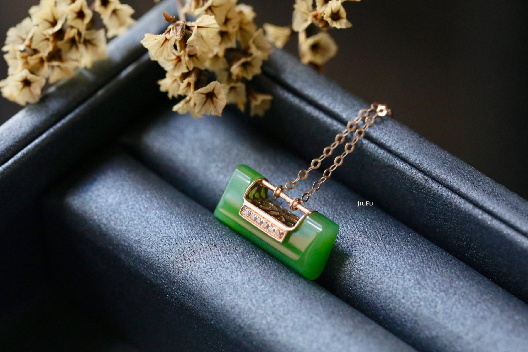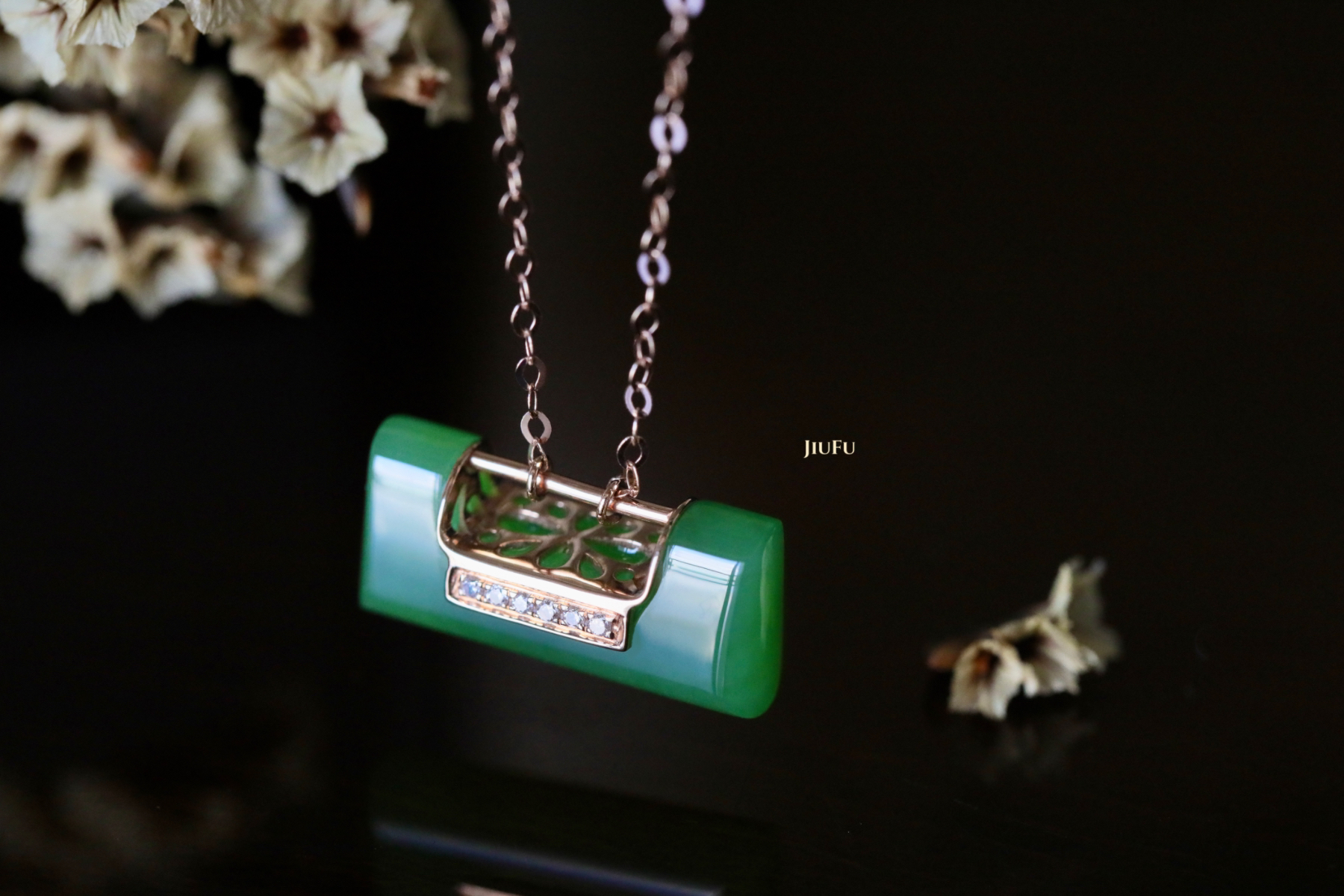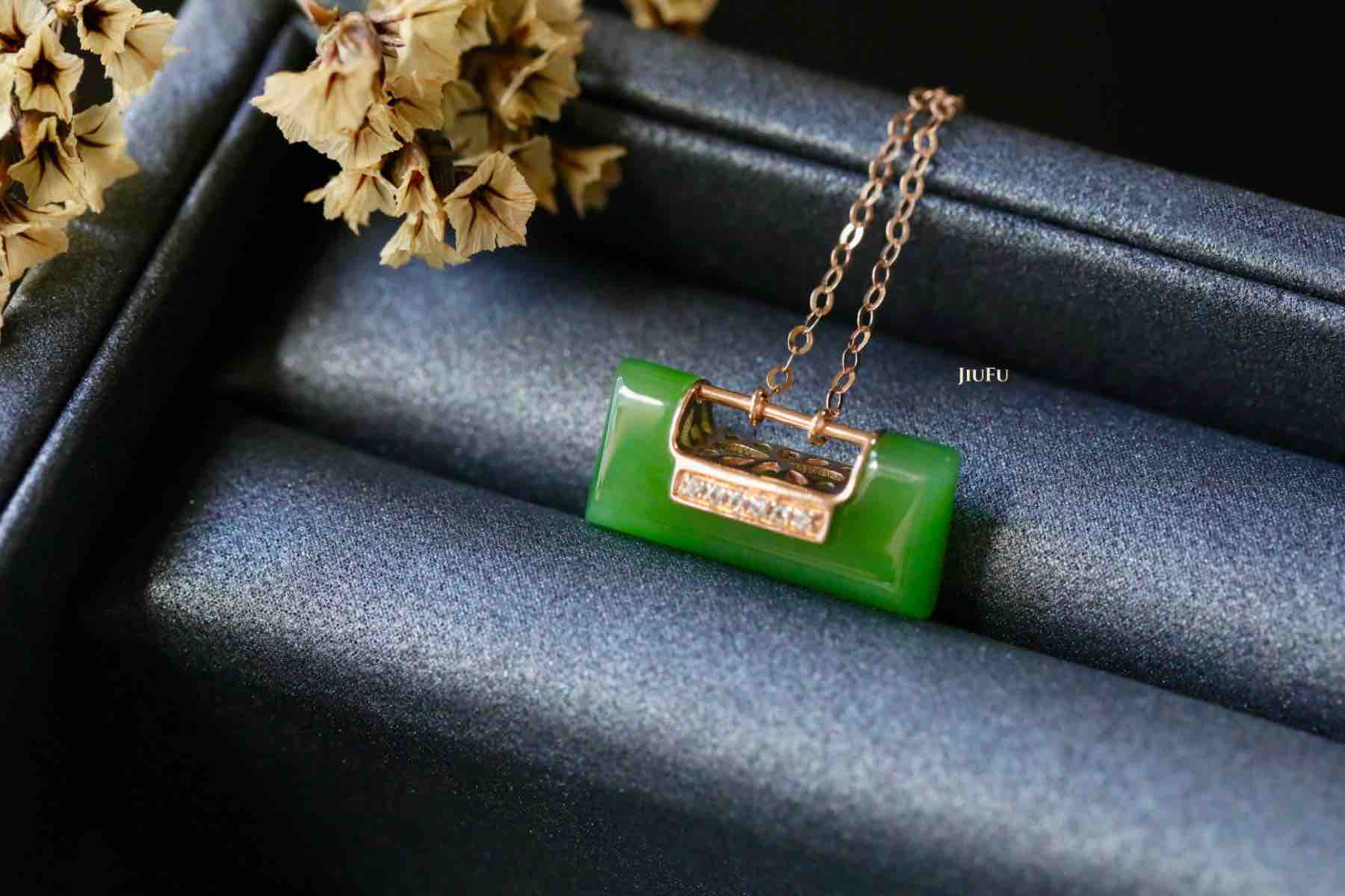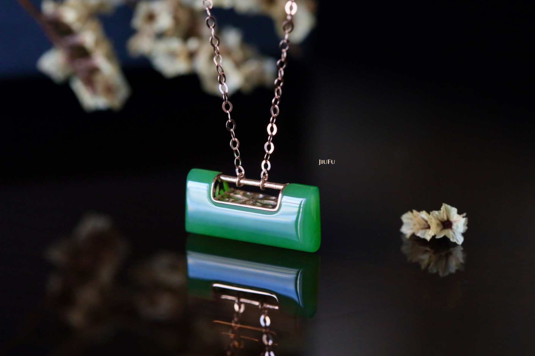 18K玫瑰金和田玉(碧玉)项链