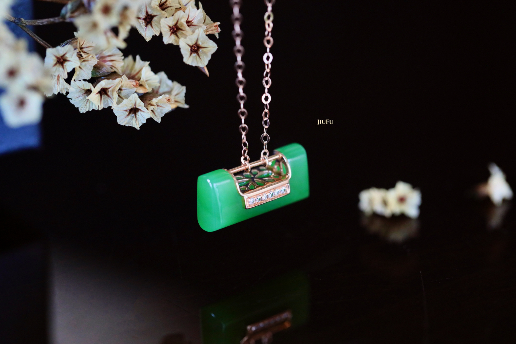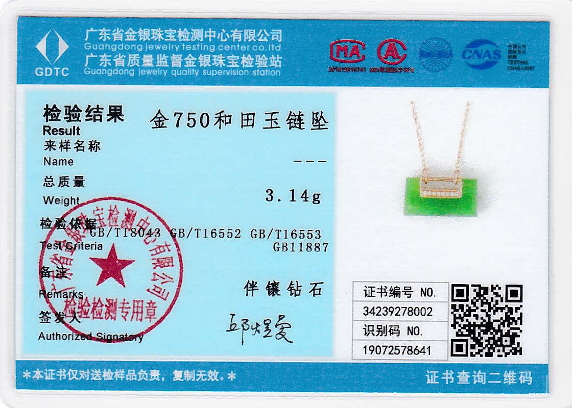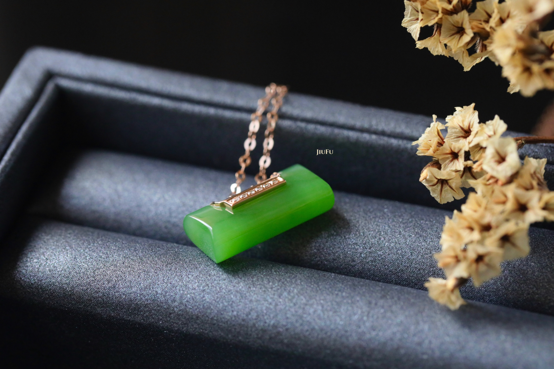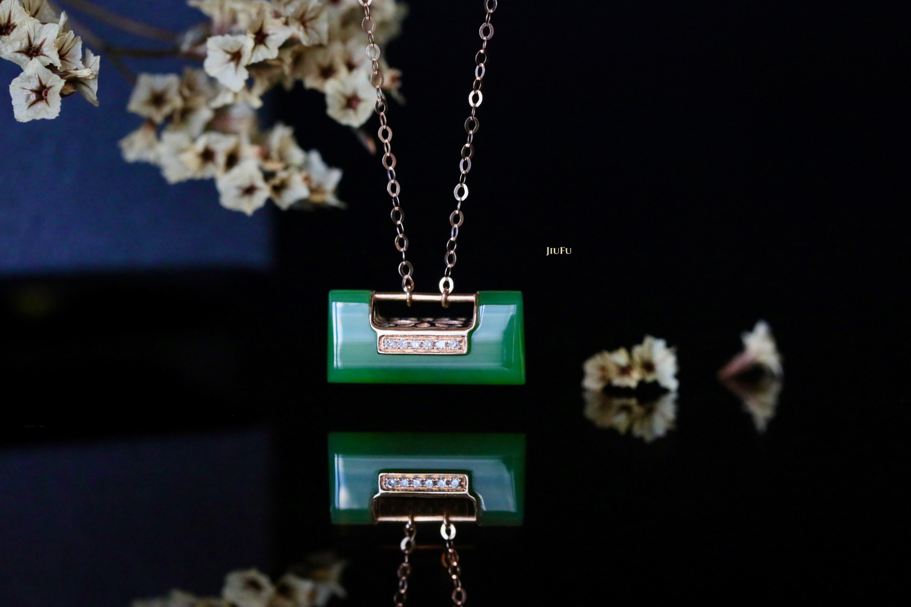 18K玫瑰金和田玉(碧玉)项链