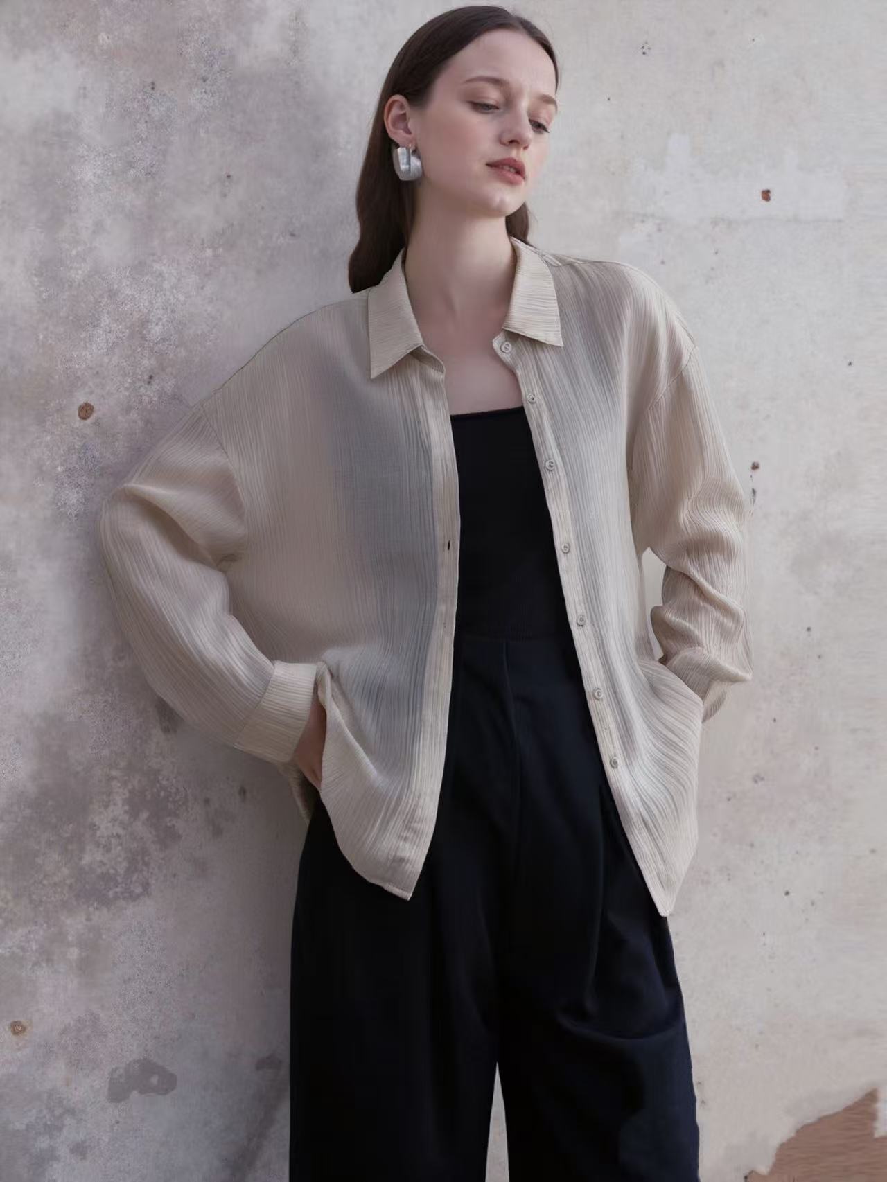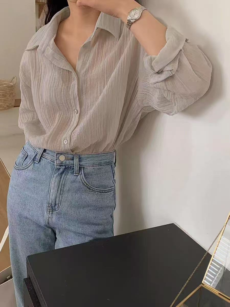 【超值推荐】压皱薄款肌理纹薄款衬衫防晒衫-喜出