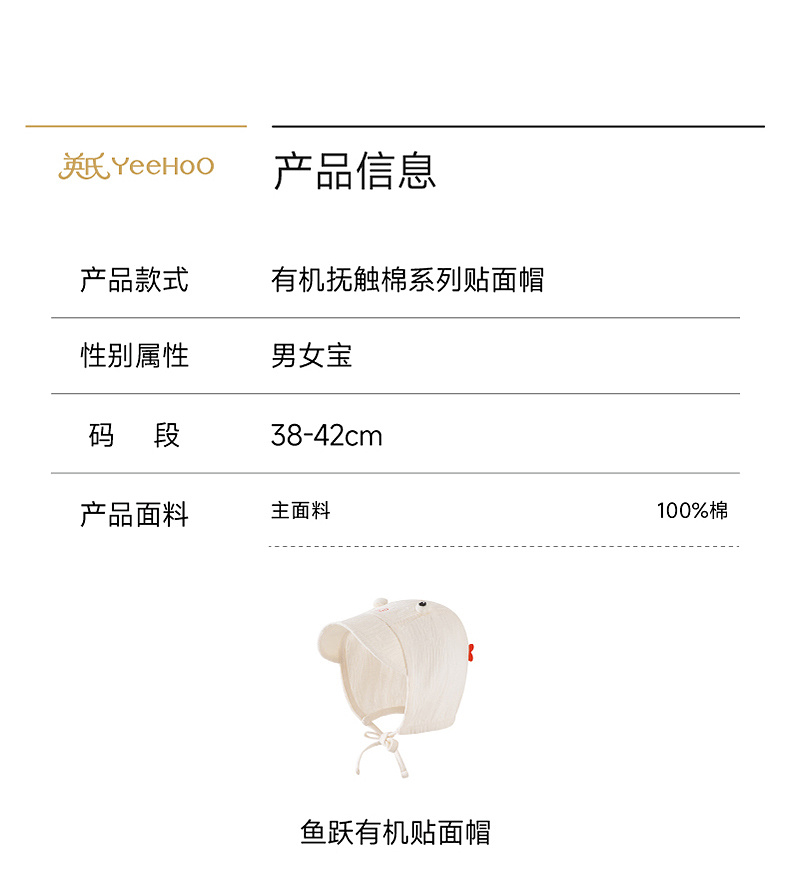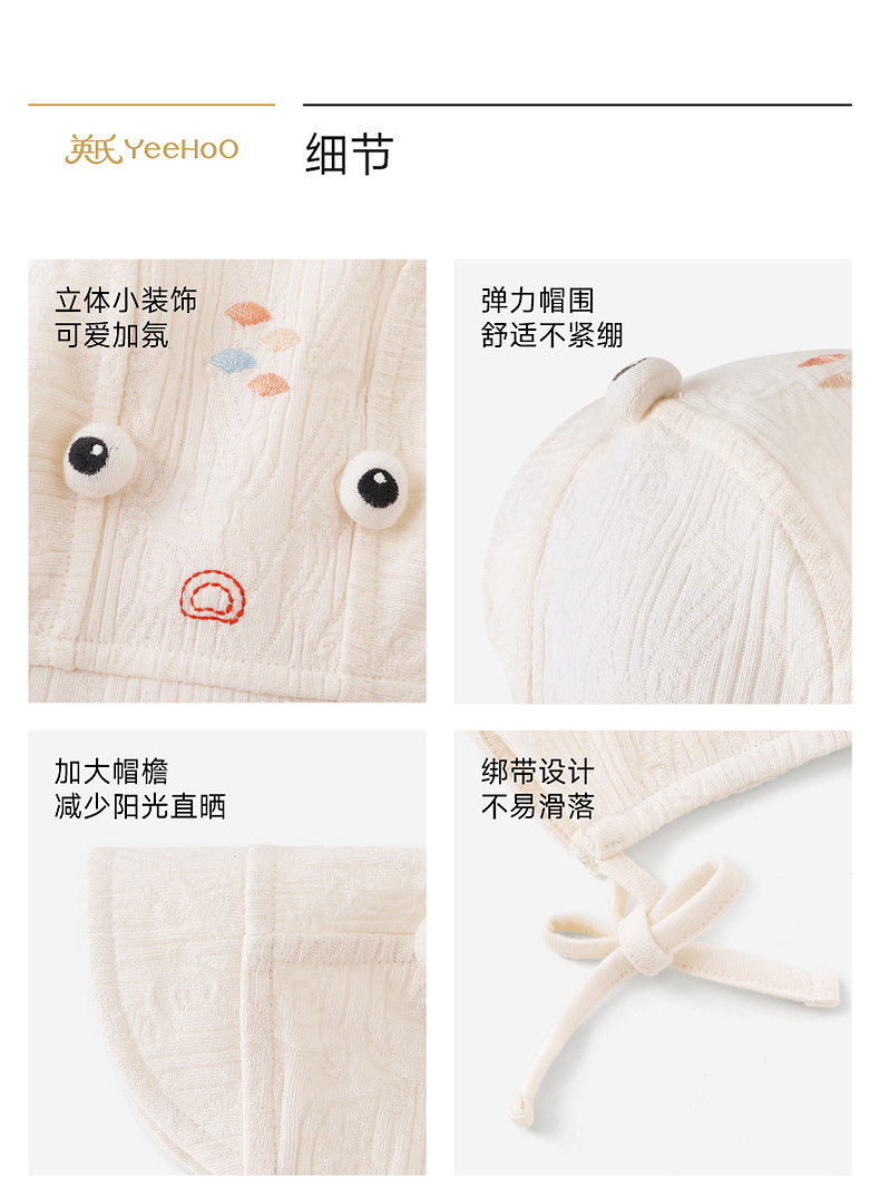 【商场同款】英氏婴儿帽子新生儿胎帽夏季新款纯棉宝宝贴面帽遮风