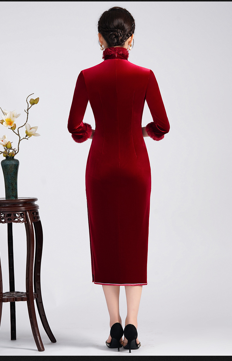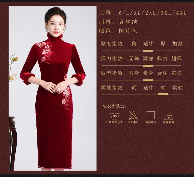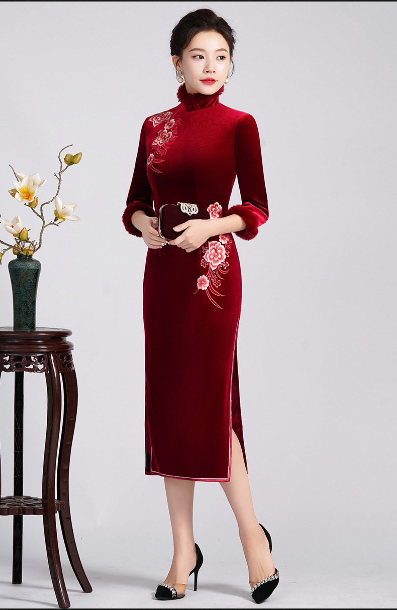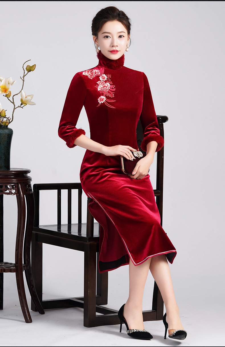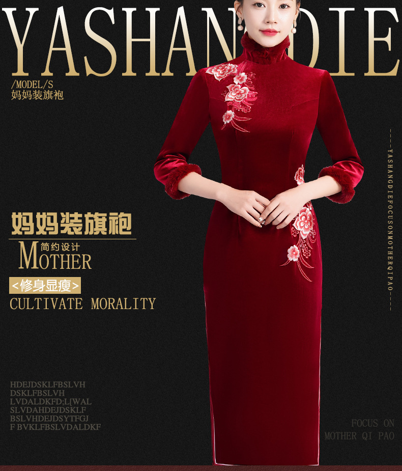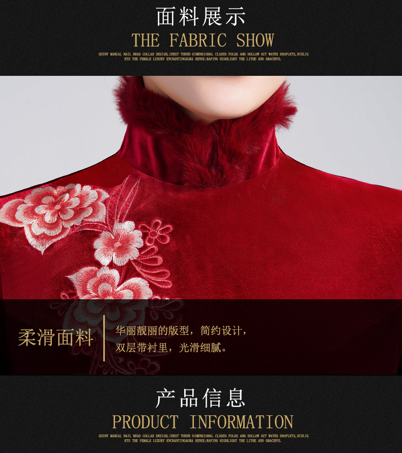 真丝绒连衣裙新款早秋大码女装气质改良旗袍裙婚庆婚宴礼服LHS-SR4