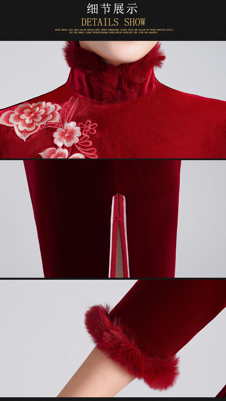 蓝色刺绣加绒加厚冬装国风改良旗袍年轻款 SC22380