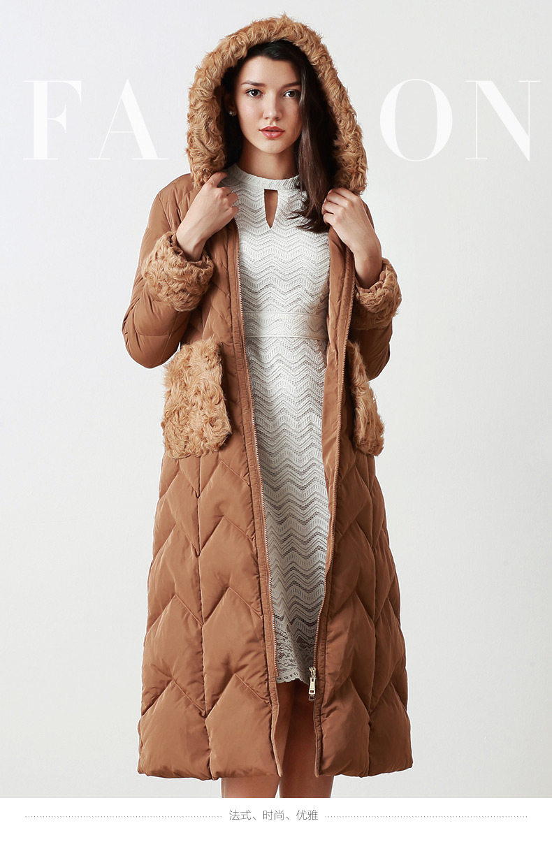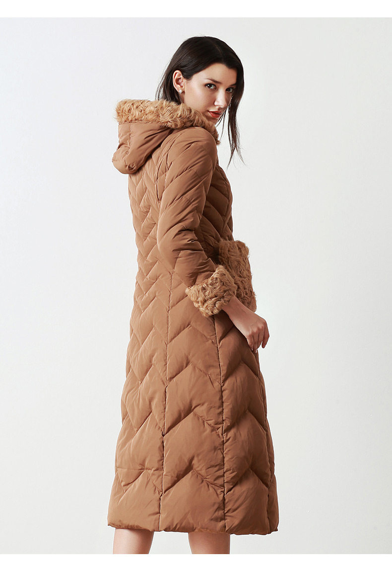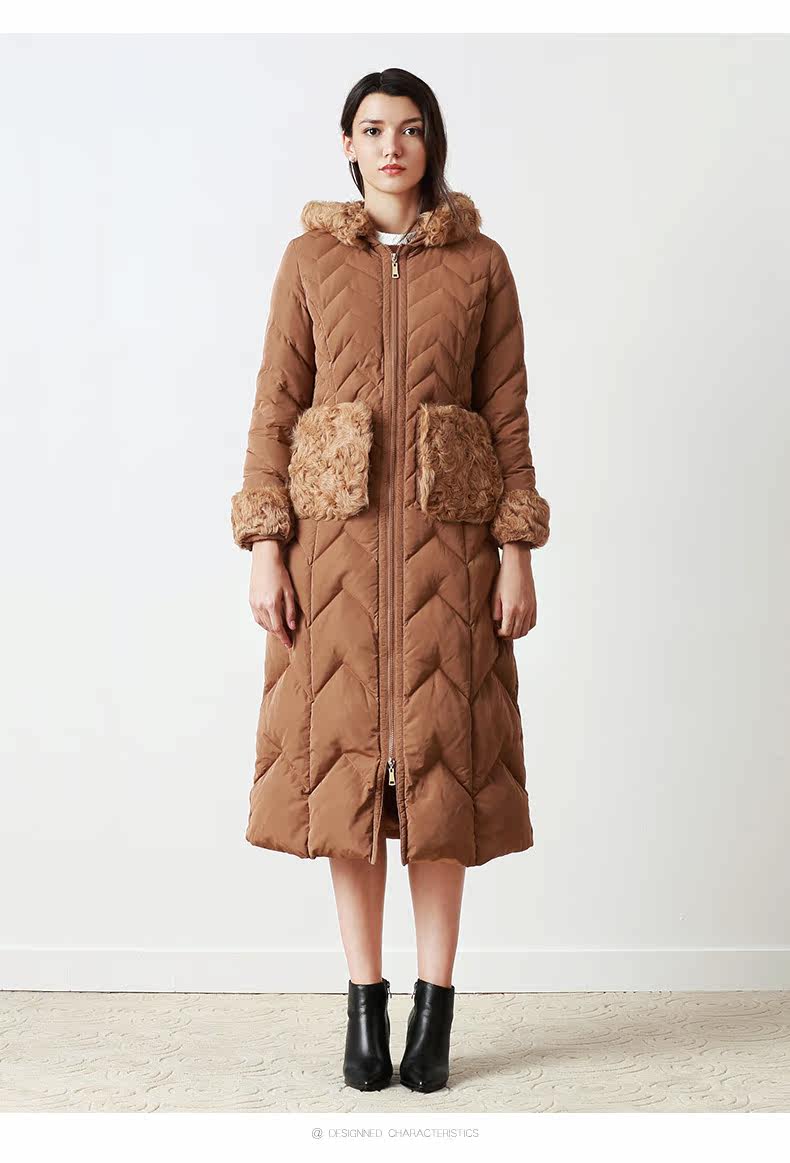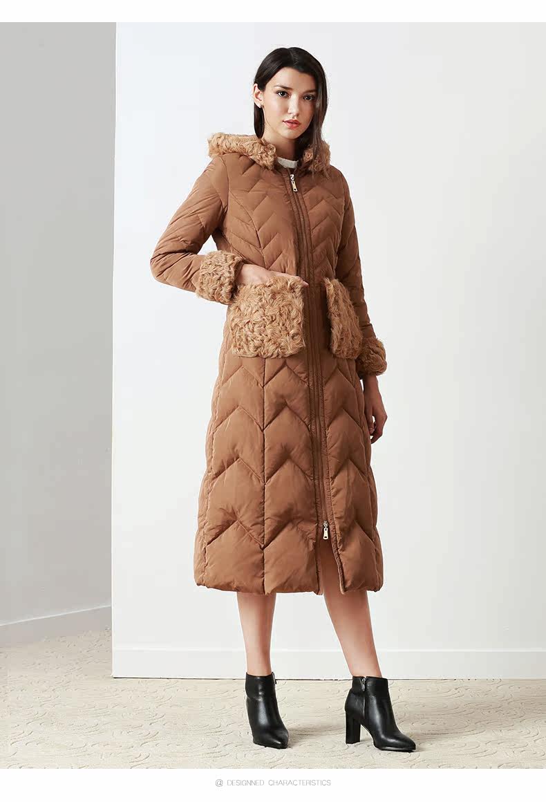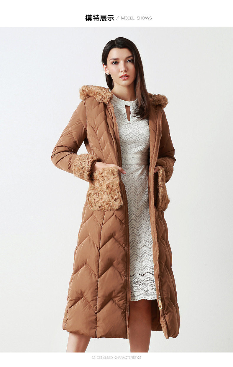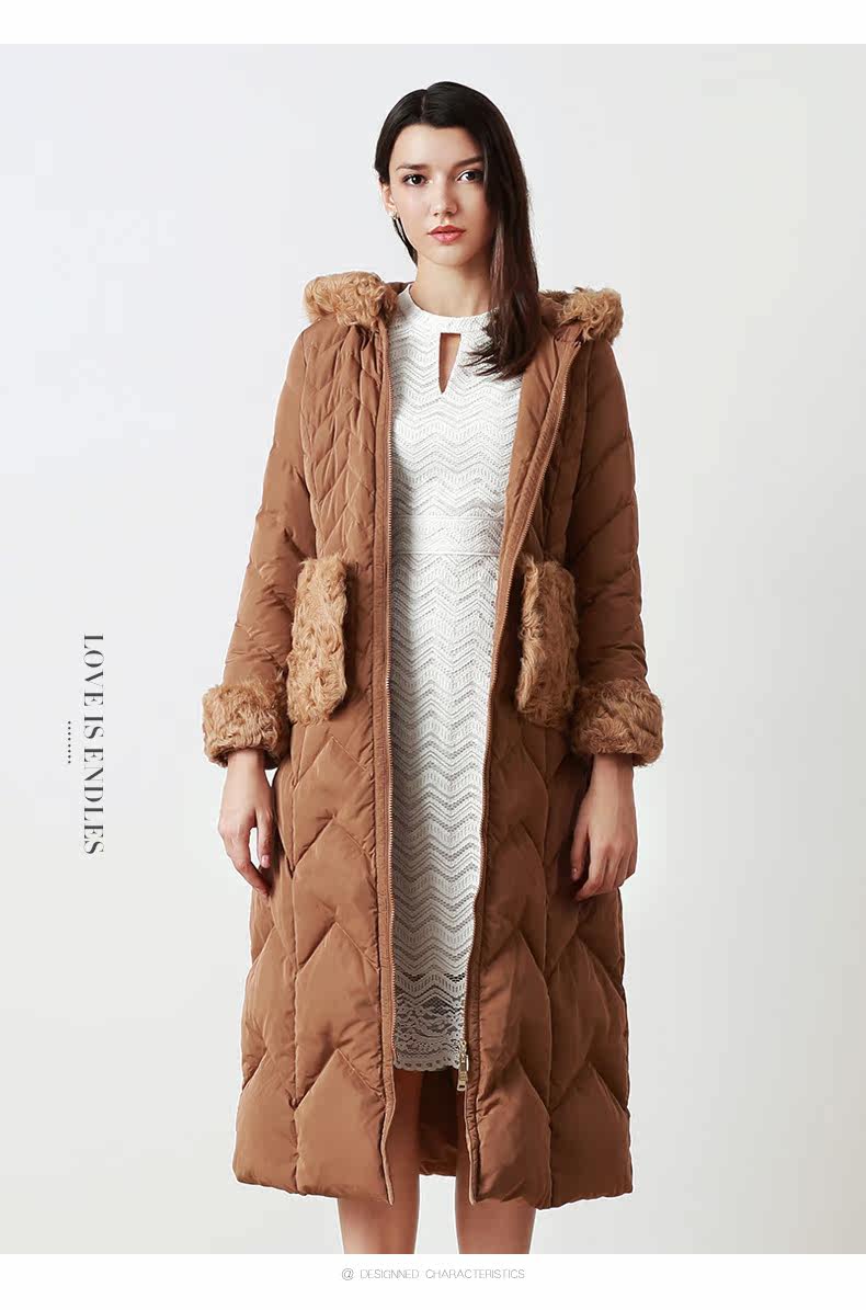 EITIE爱特爱品牌女装冬款时尚加厚保暖鹅绒连帽羽绒服长款5611314