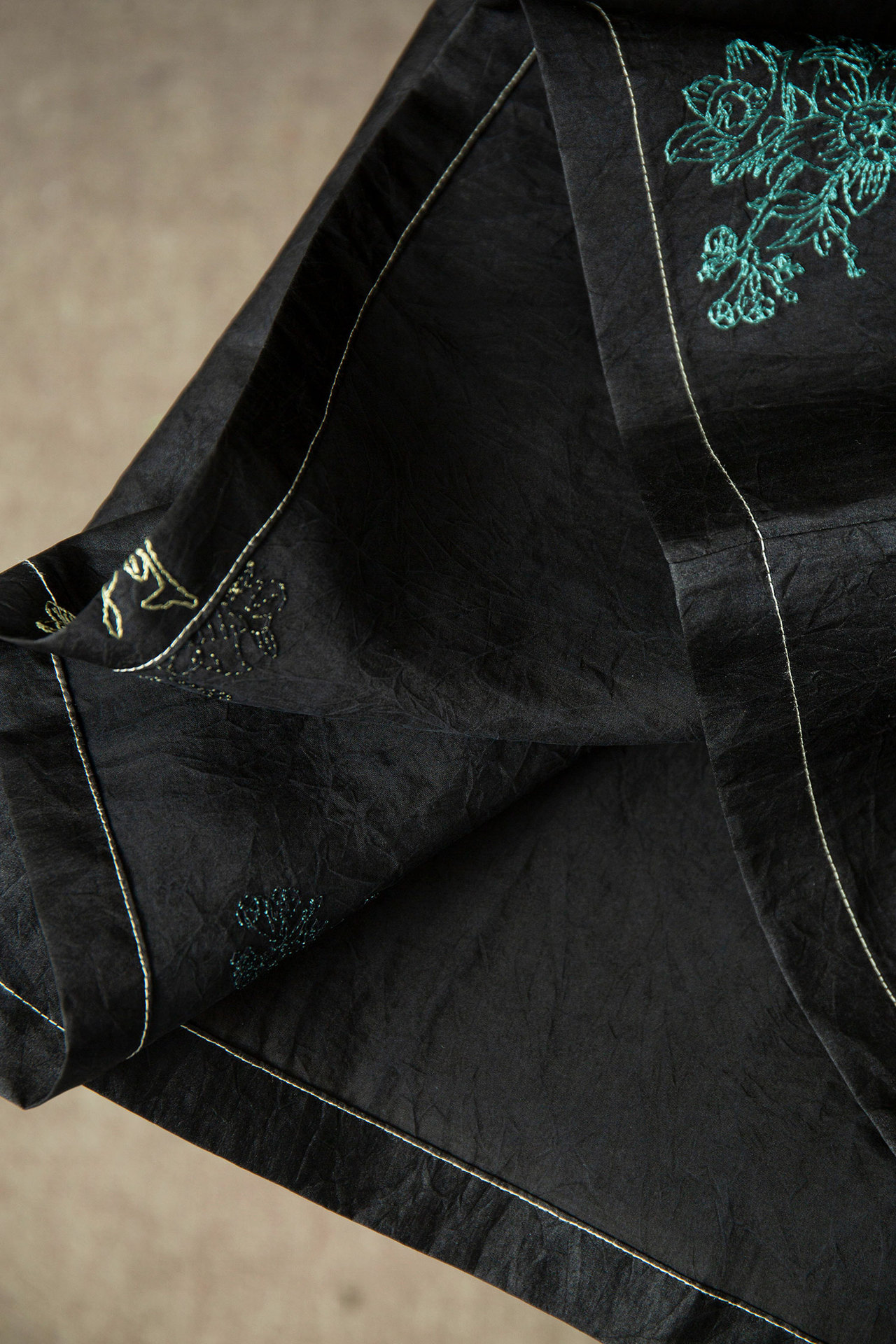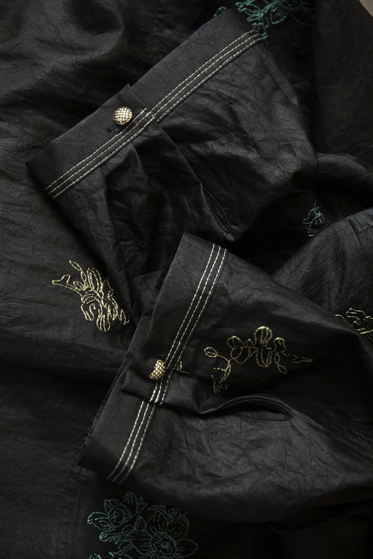 丁摩 真丝香云纱刺绣V领中长裙女奢华老龟纹100桑蚕丝短袖连衣裙夏5ZF-52046