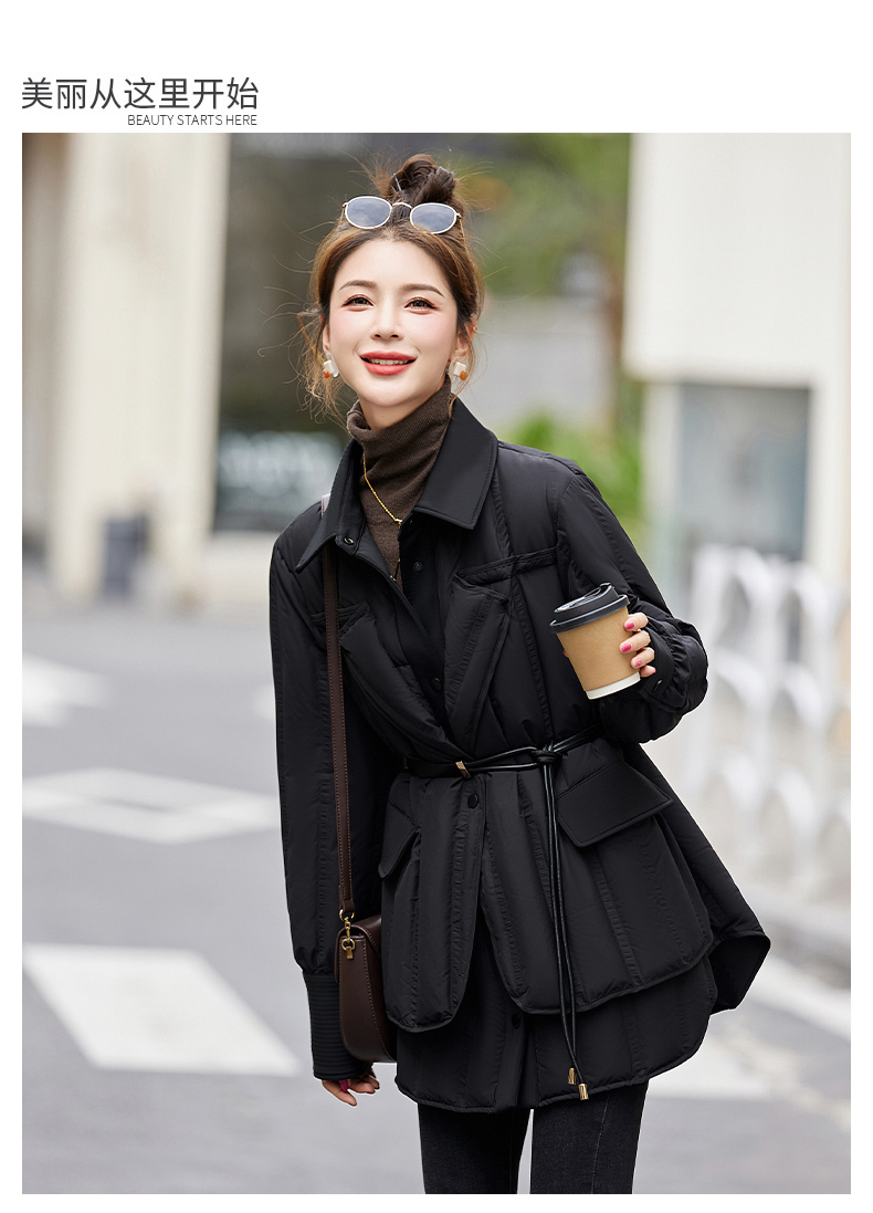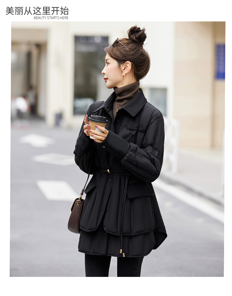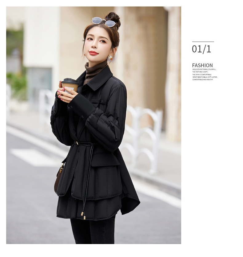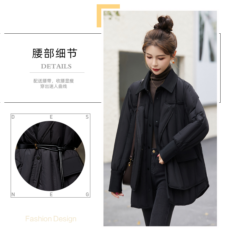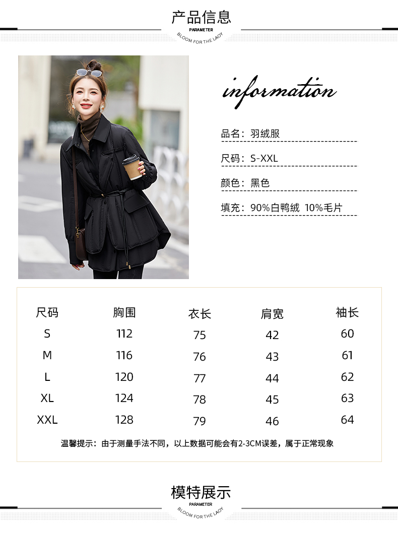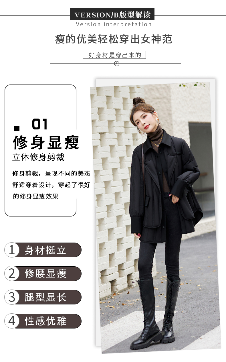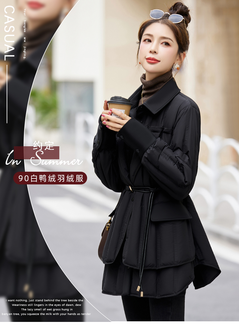 纯色简约,定制面料超显瘦90白鸭绒收腰羽绒服HR-BX2366