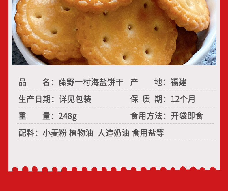 藤野一村日式小圆饼干248g袋装海盐韧性咸味网红零食一箱24袋