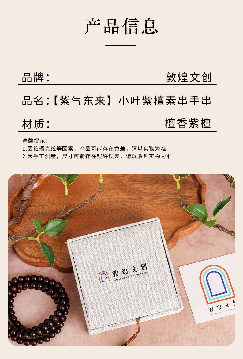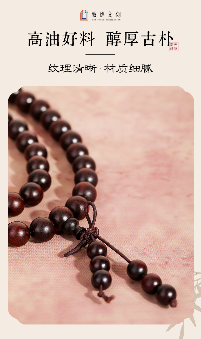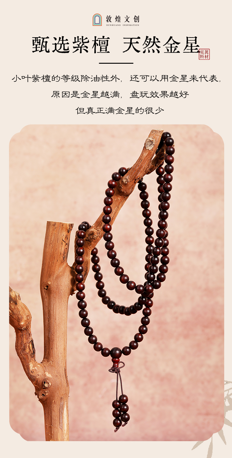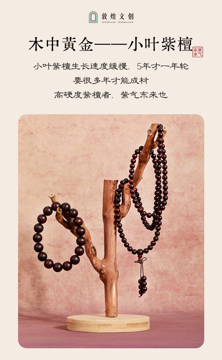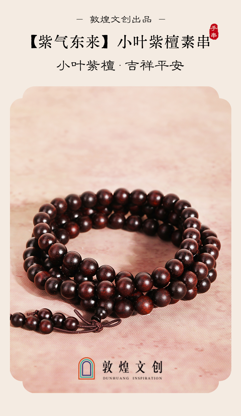 【紫檀"二膘料" 木质紧密 油性十足】敦煌文创紫气东来小叶紫檀手串