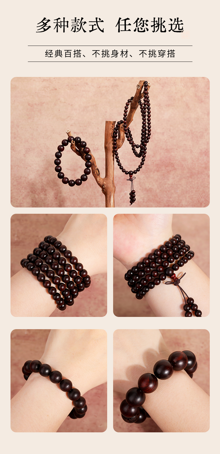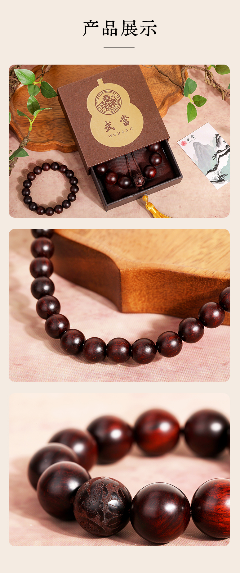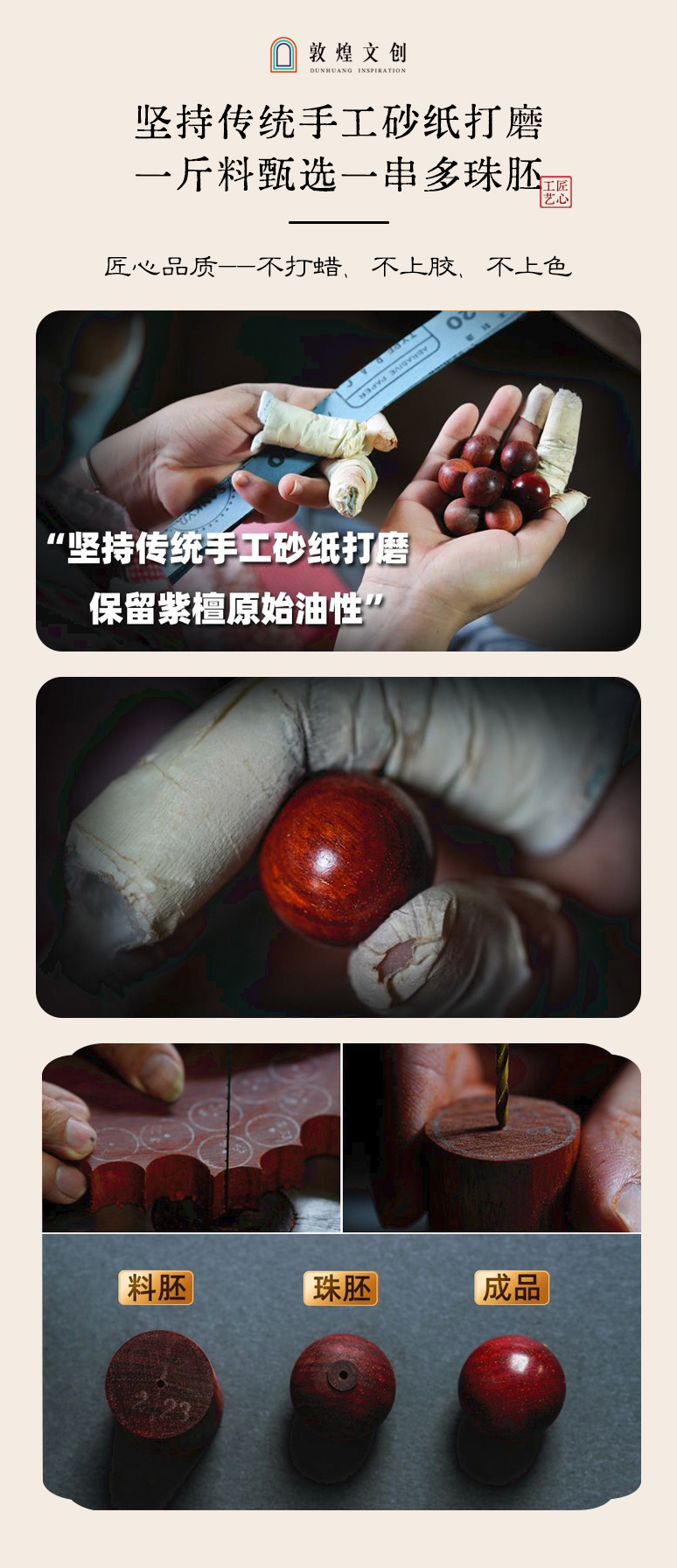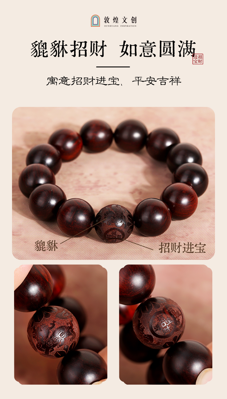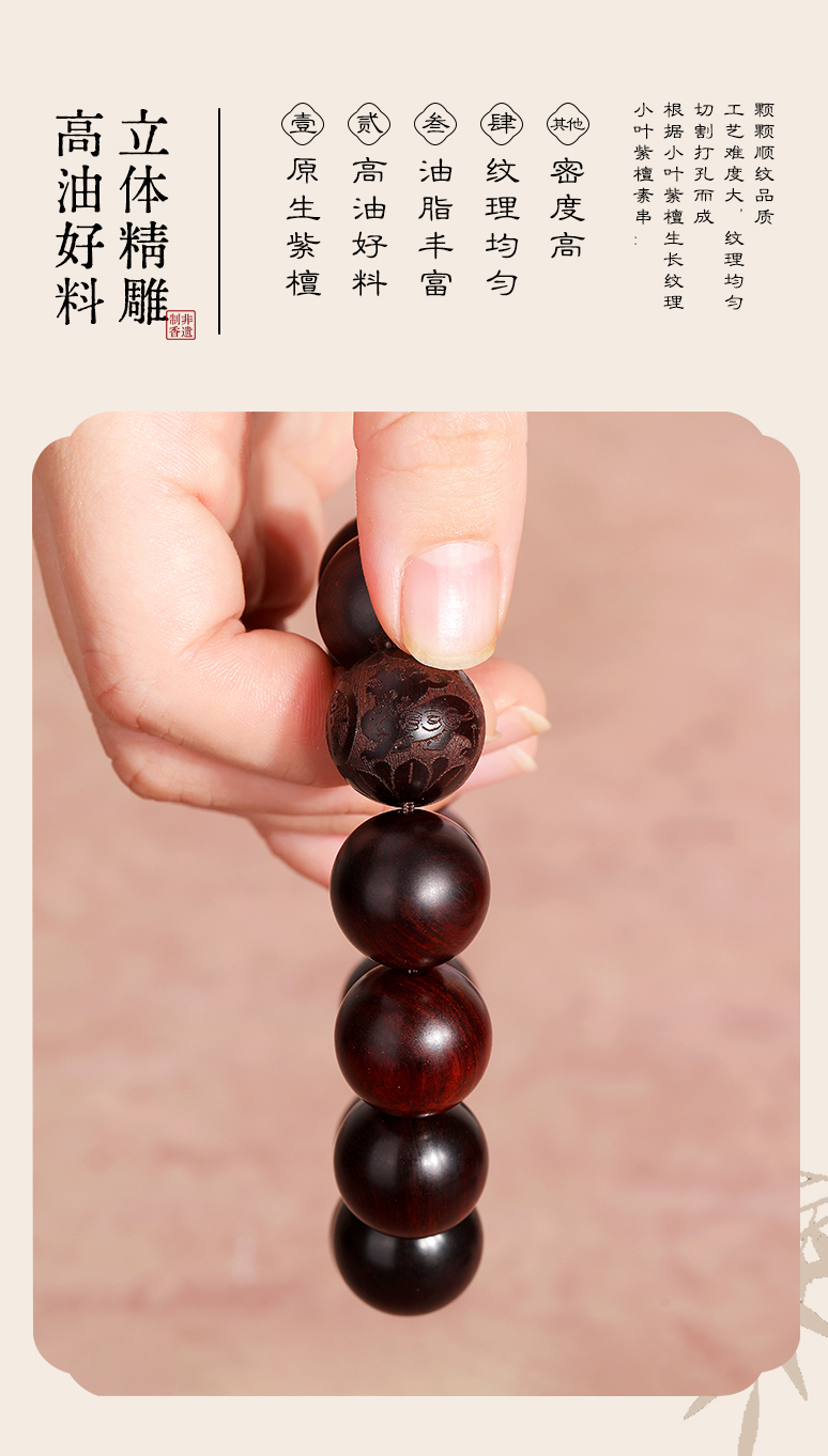 【紫檀"二膘料" 木质紧密 油性十足】敦煌文创紫气东来小叶紫檀手串