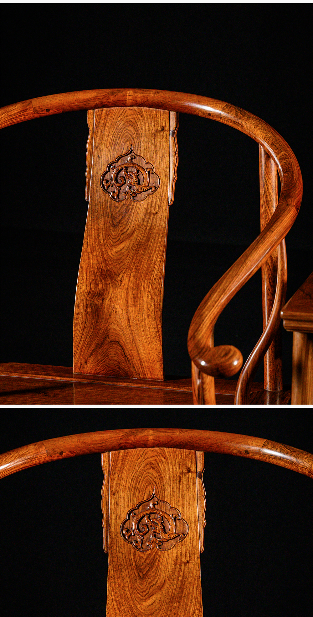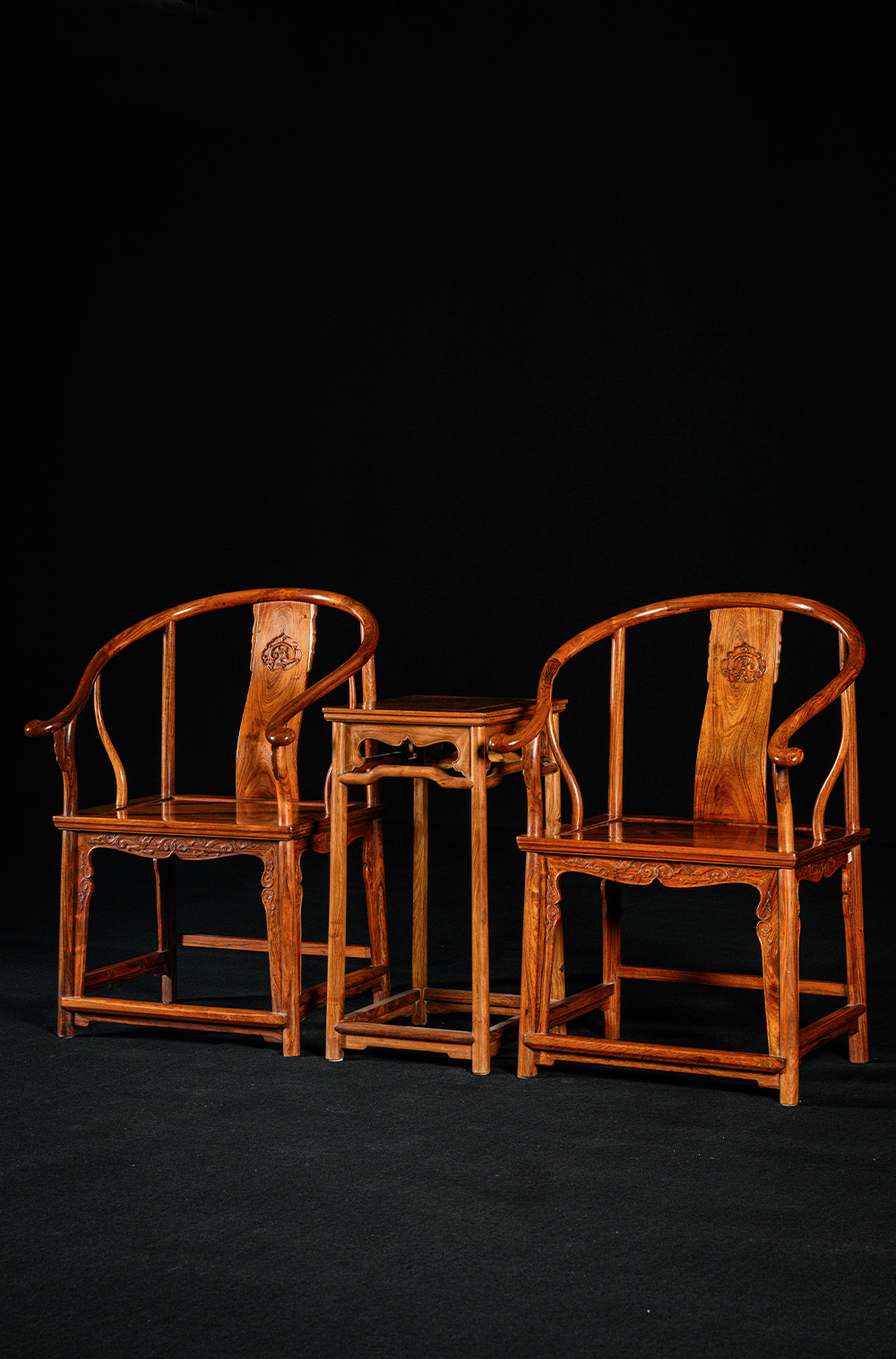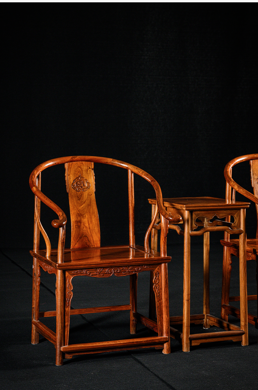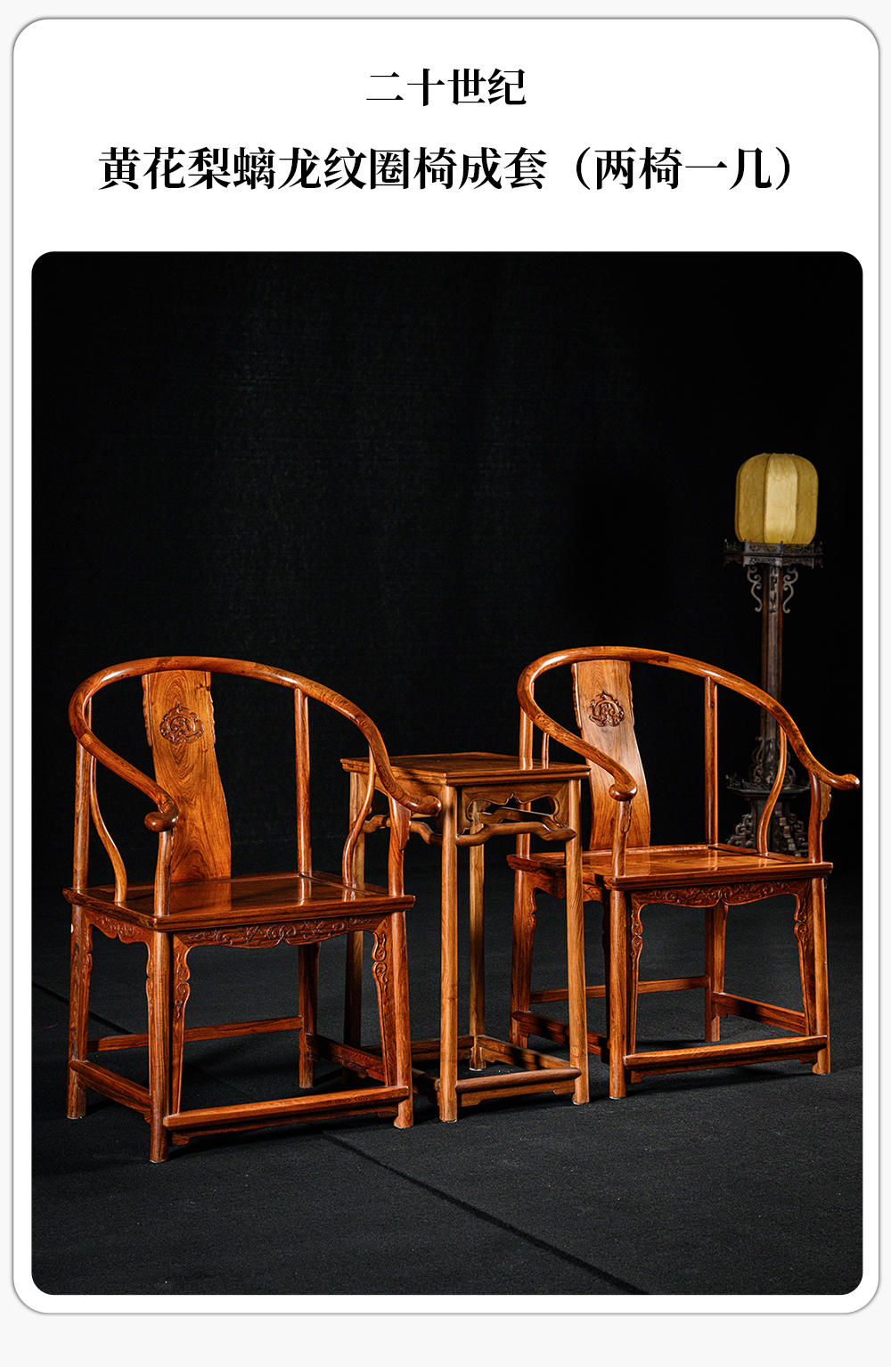 二十世纪 黄花梨螭龙纹圈椅成套(两椅一几)