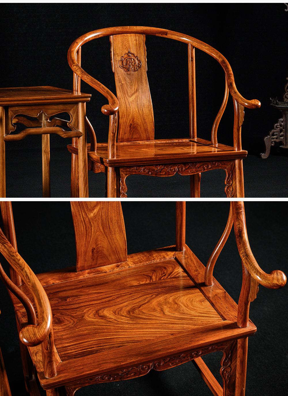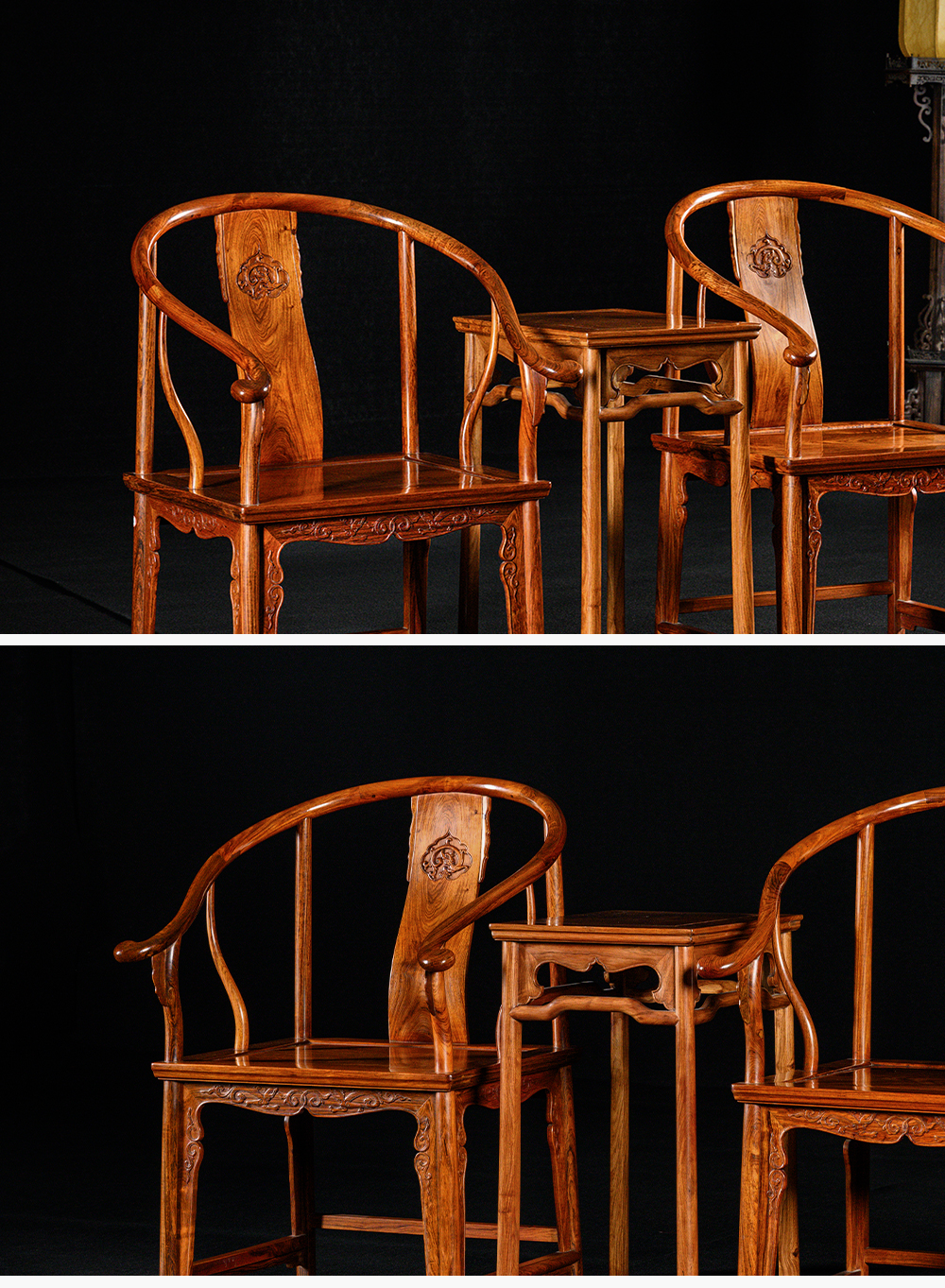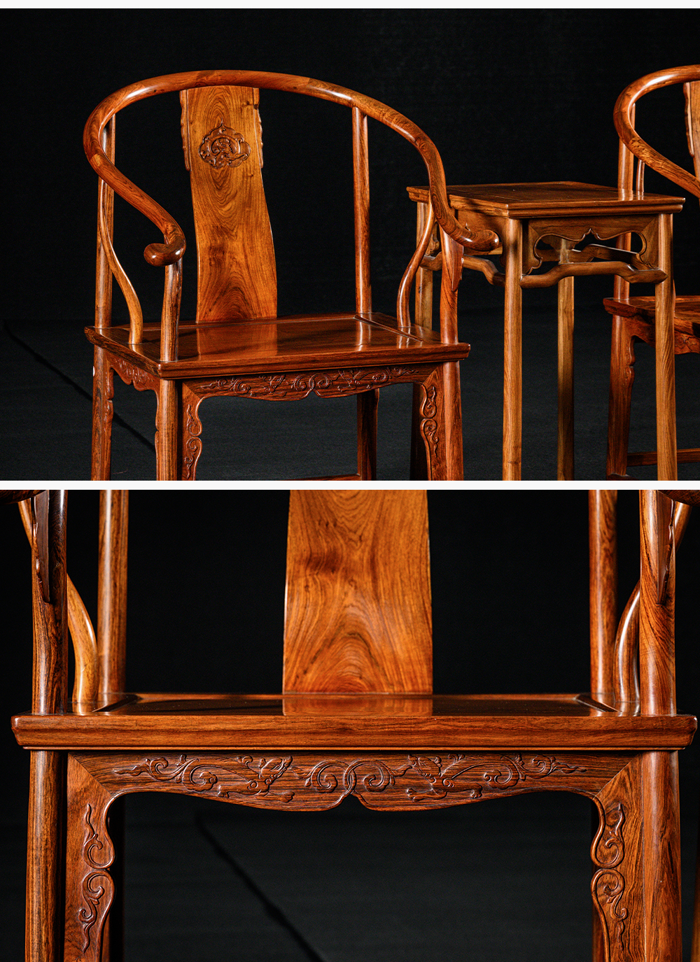 二十世纪 黄花梨螭龙纹圈椅成套(两椅一几)