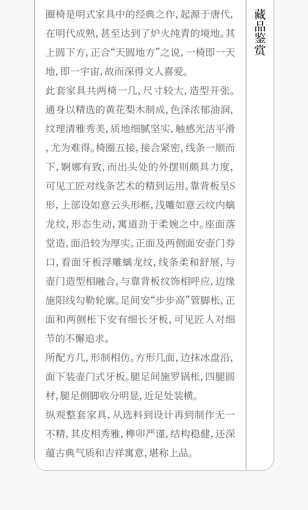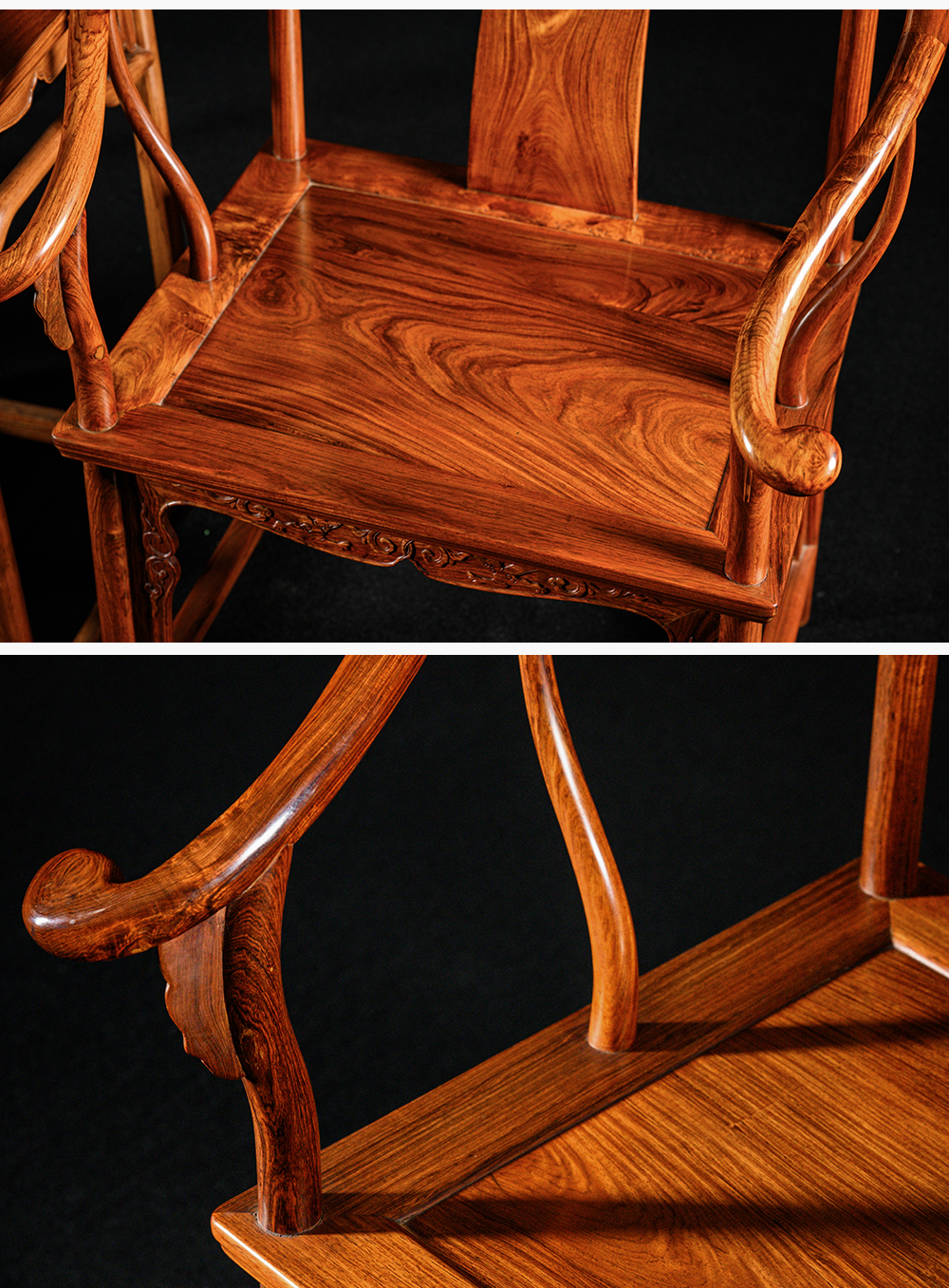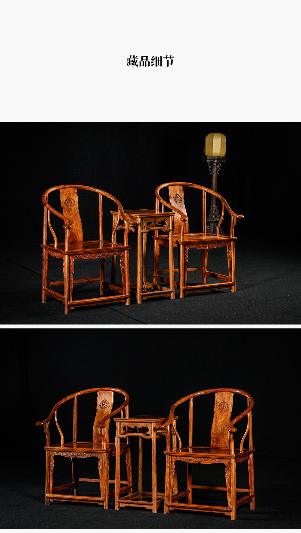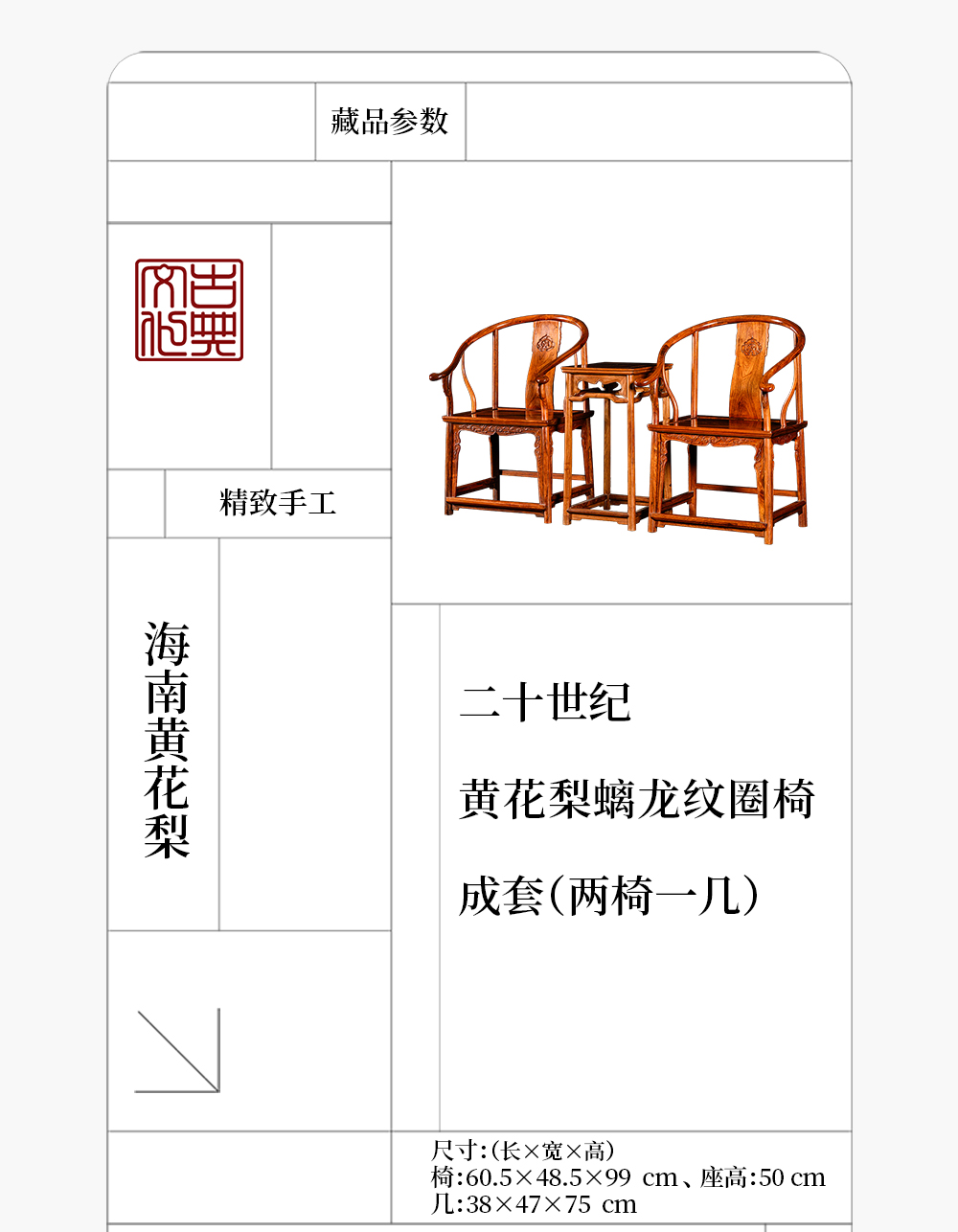二十世纪 黄花梨螭龙纹圈椅成套(两椅一几)