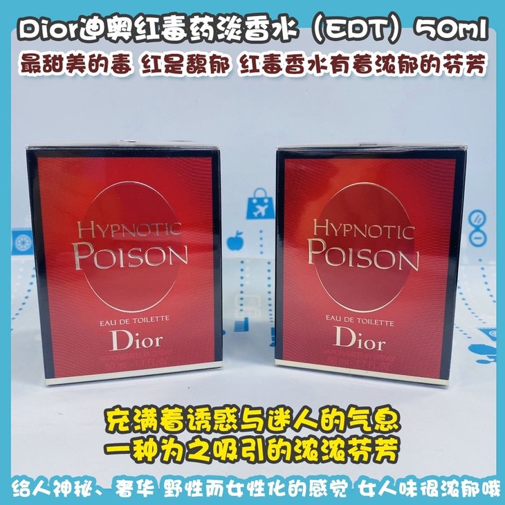 Dior迪奥红毒药淡香水(EDT)50ml👍最甜美的毒,红是馥郁。红毒香水有着浓郁的芬芳❤,仿佛具有天鹅绒般光滑细致🐩。充满着诱惑与迷人的气息,一种为之吸引的浓浓芬芳😇!它是燃烧魔力的目标,当鲜红丝绸拂过护身魔石💎,它点燃狂野的欲望,令芬芳的神奇感性愈加强烈🔥。给人神秘、奢华、野性而女性化的感觉,女人味很浓郁哦👄,小女人必备!