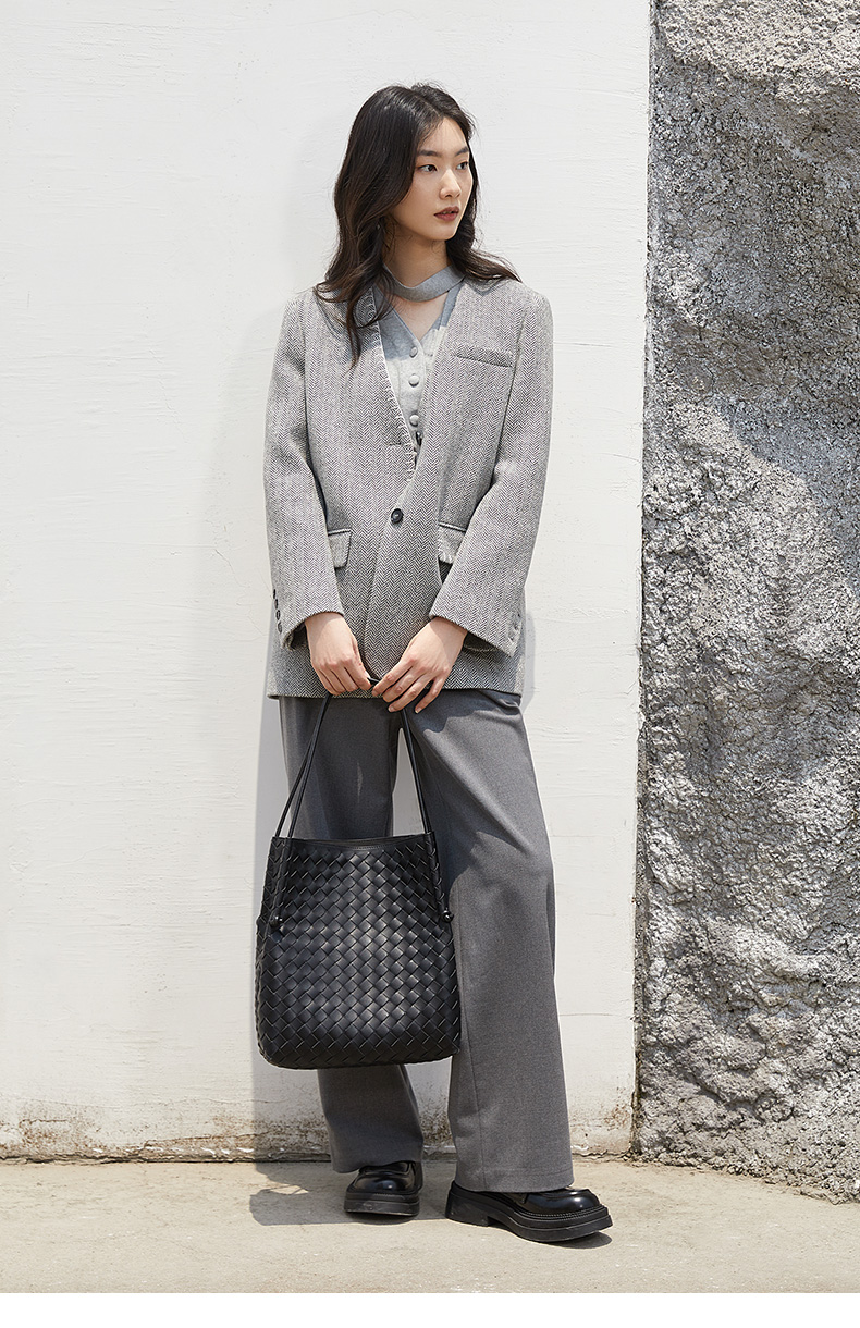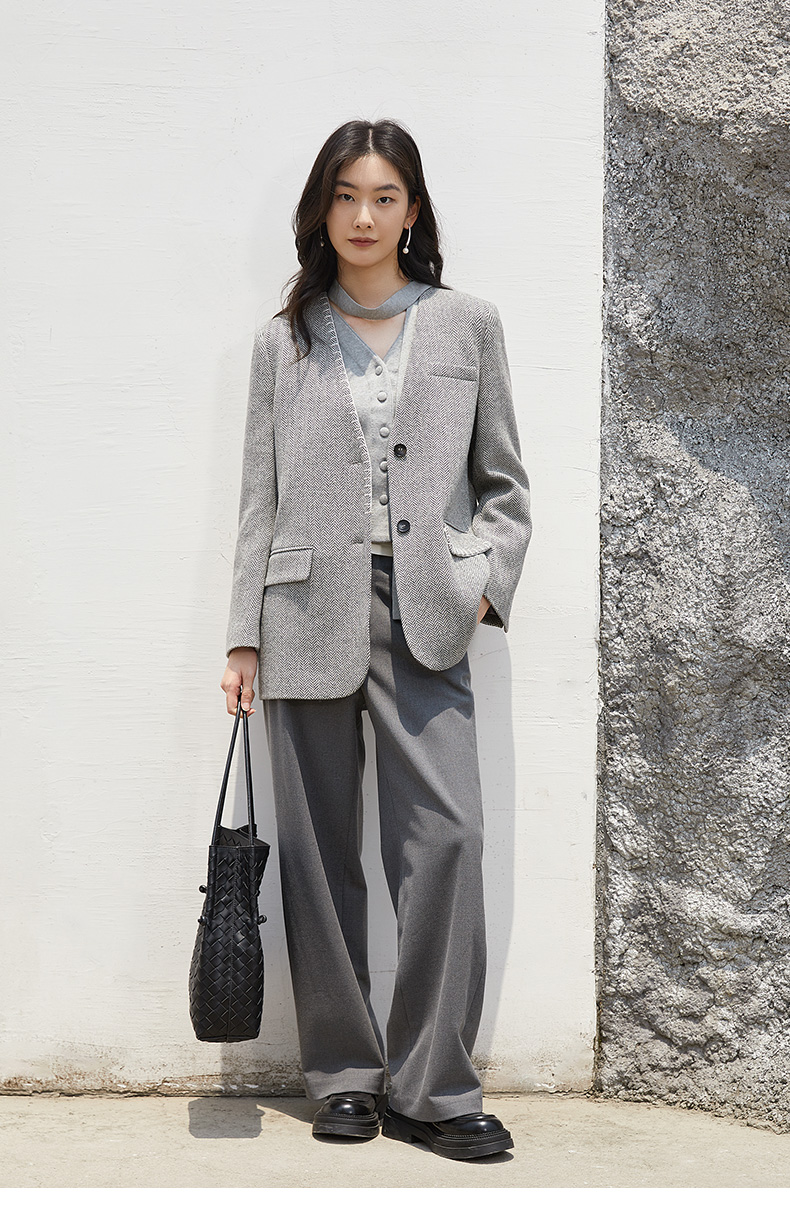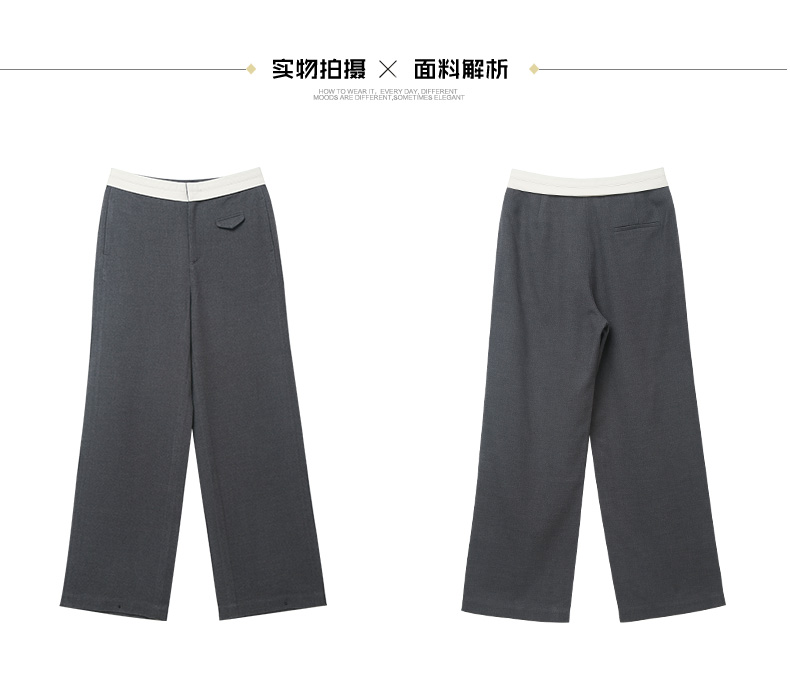 深灰撞白腰头阔腿裤 垂感宽松九分裤 简约通勤风质感休闲西装裤