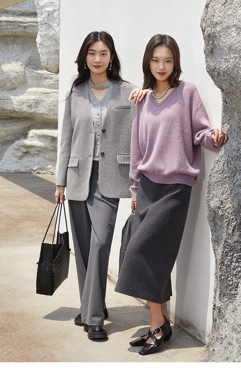 温柔气质款圆领宽松显瘦玫紫色毛衣女 慵懒风针织上衣