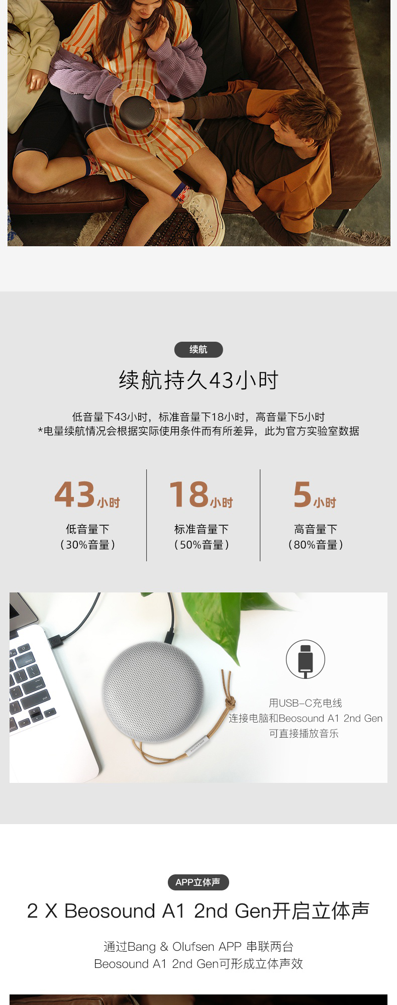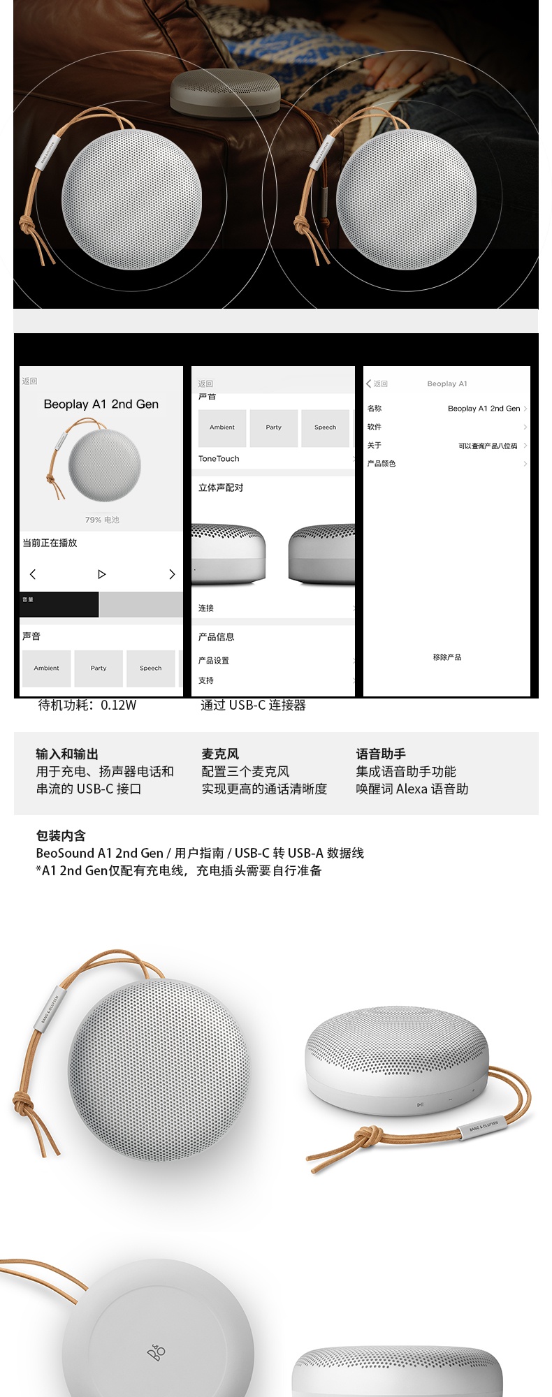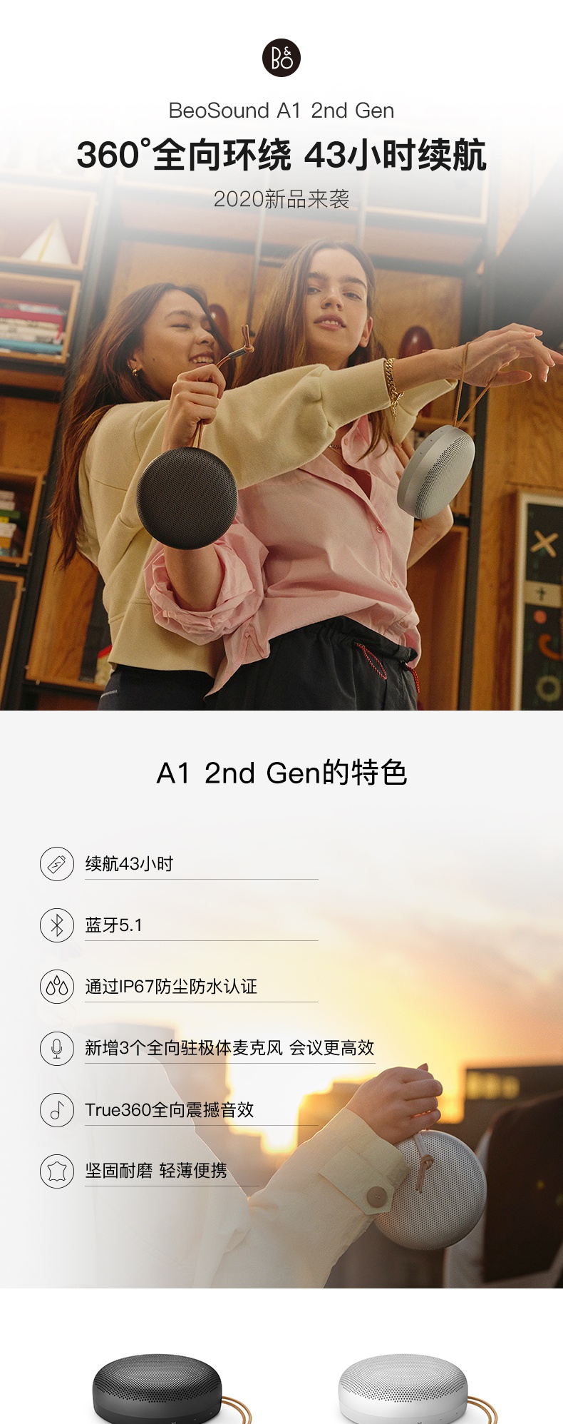 B&O PLAY beoplay Beosound A1Gen2 便携式无线蓝牙音响A1二代音箱