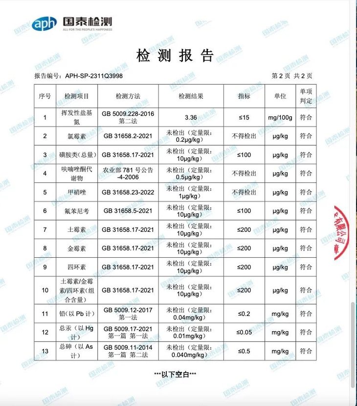 (蛋鲜森的产品检测报告,“不得检出”是指没有检测出该物质)