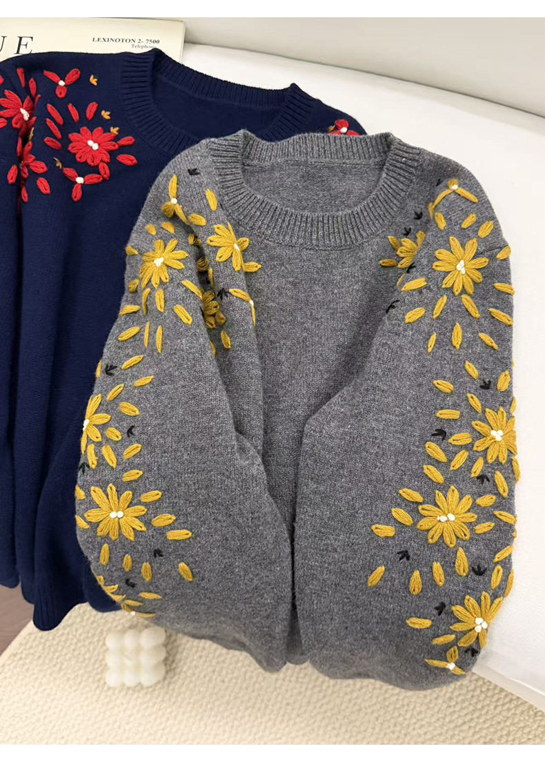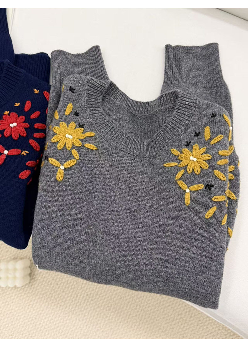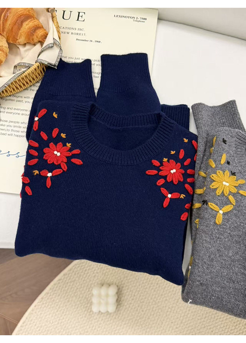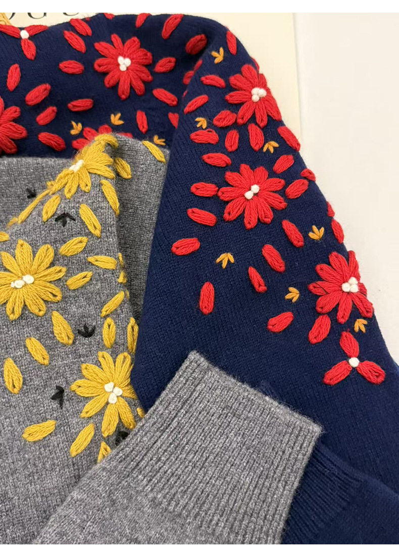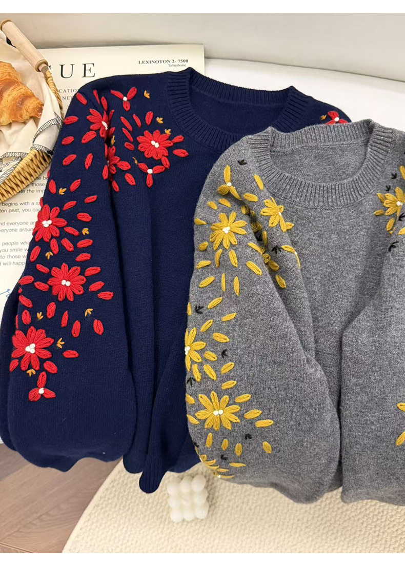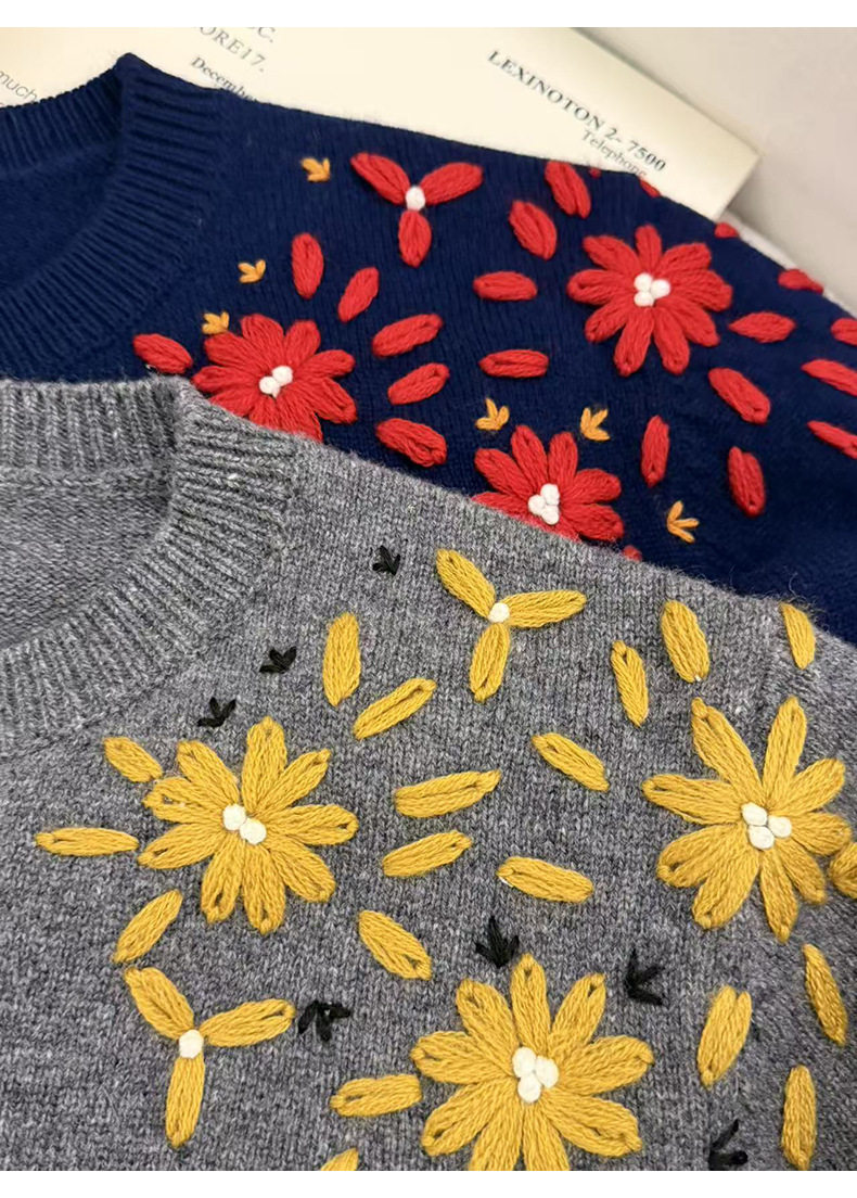 「高货rp」全新升级【铂金会员404/天猫539/差价135】(03516)洛诗琳重工手工钩花羊毛衫2025冬季圆领套头加厚针织上衣