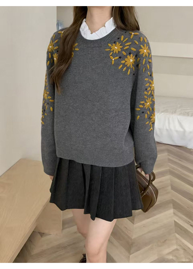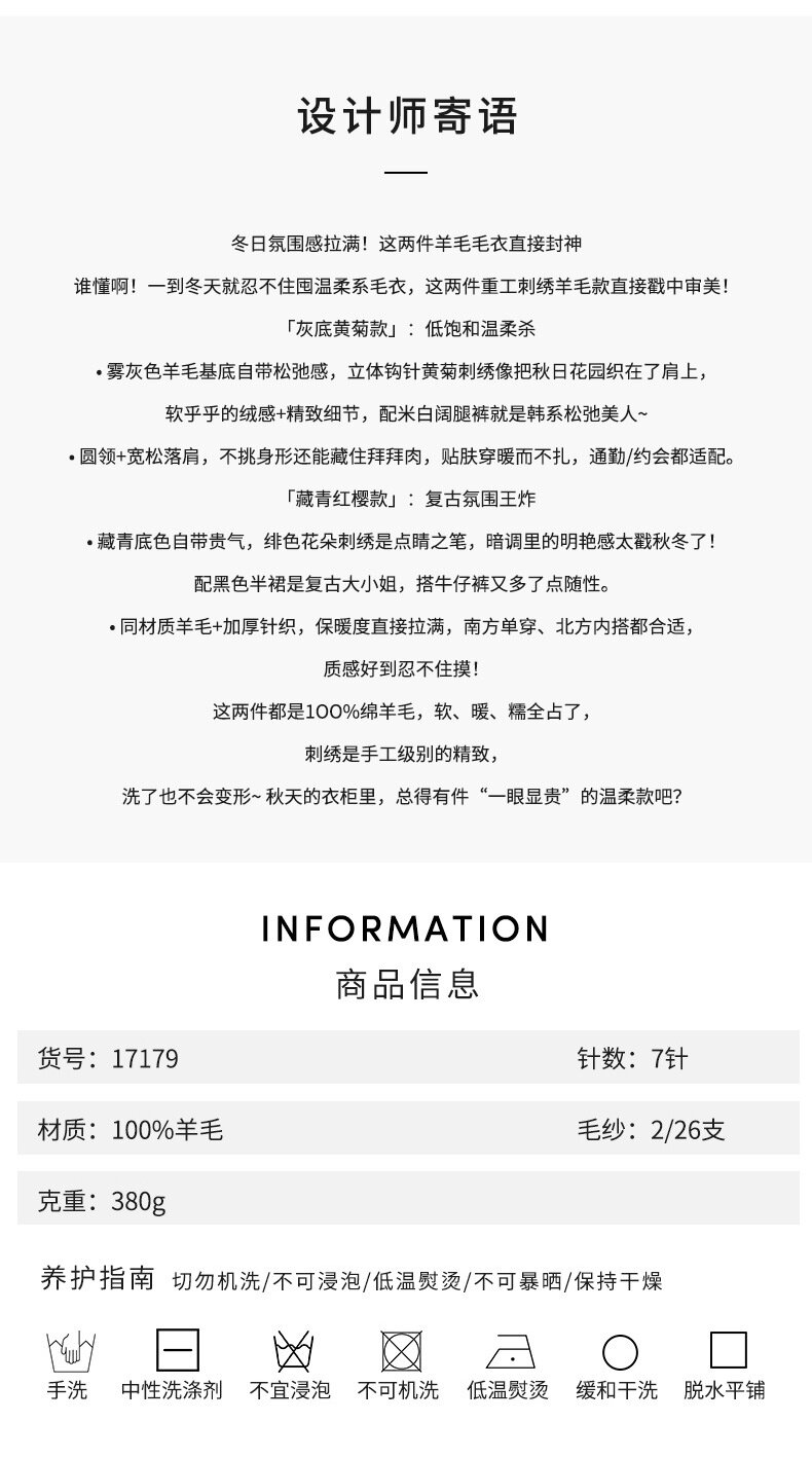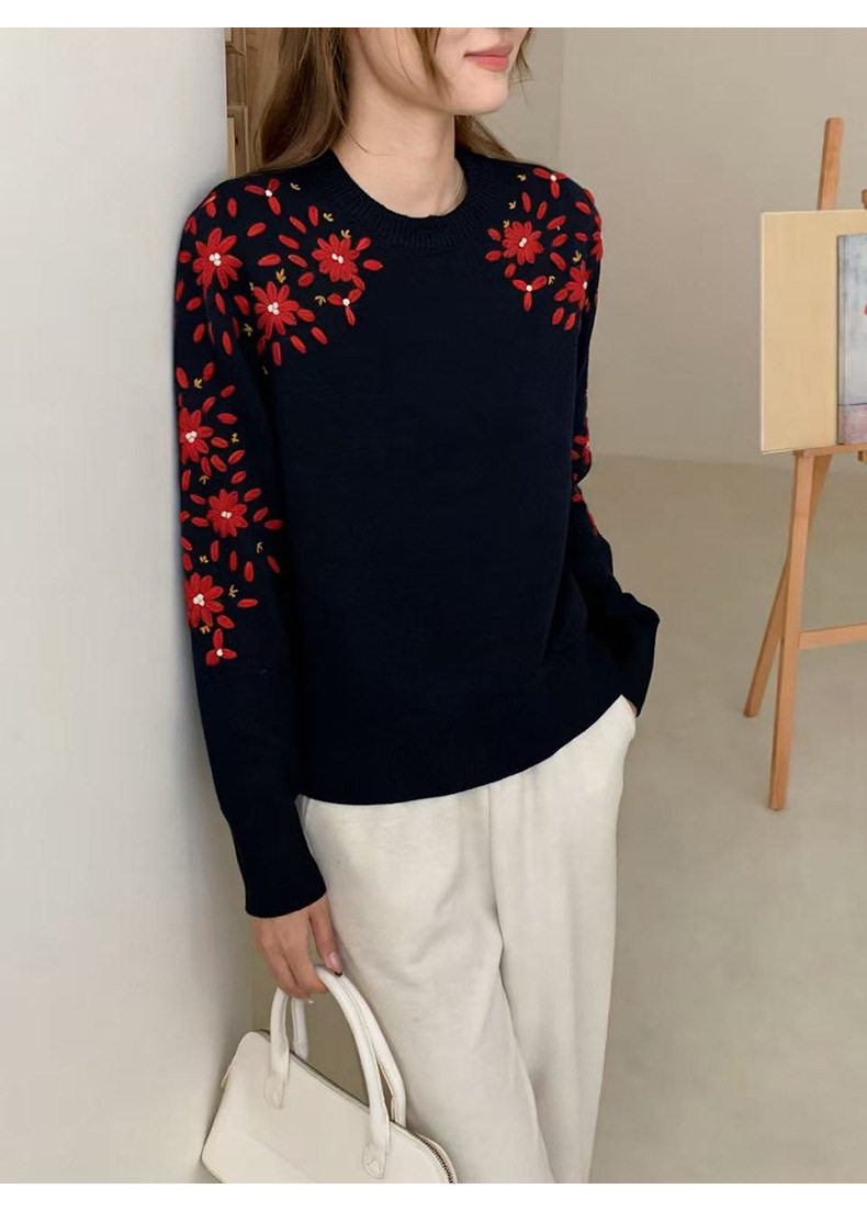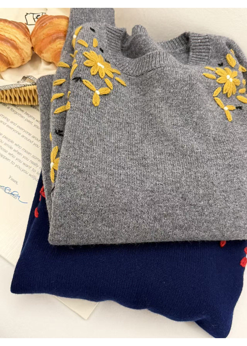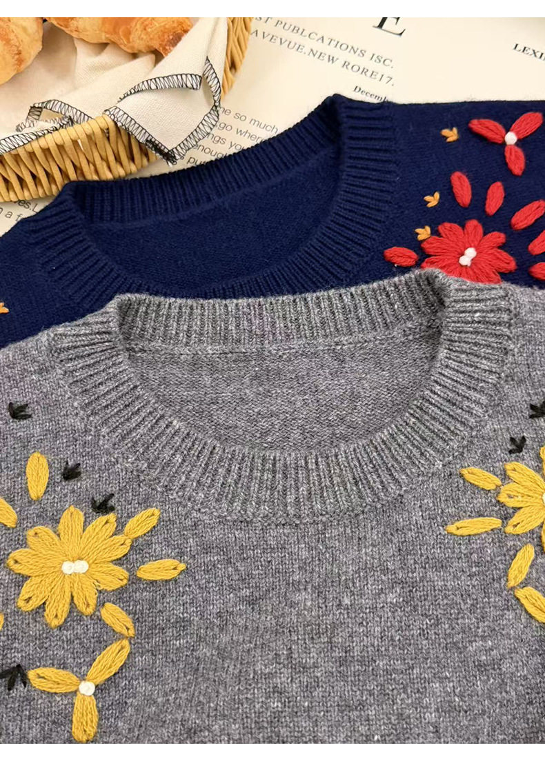「高货rp」全新升级【铂金会员404/天猫539/差价135】(03516)洛诗琳重工手工钩花羊毛衫2025冬季圆领套头加厚针织上衣
