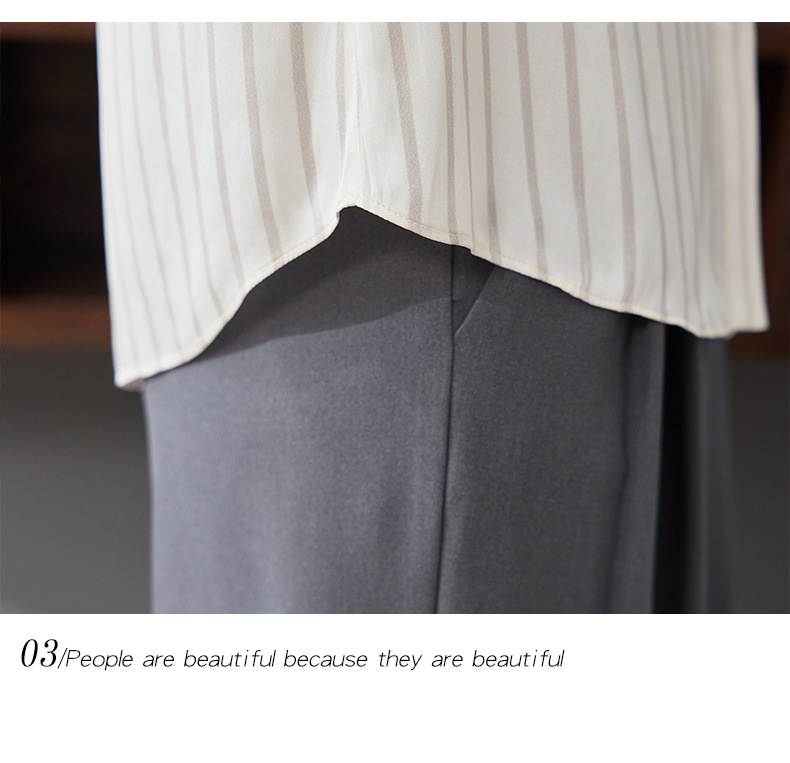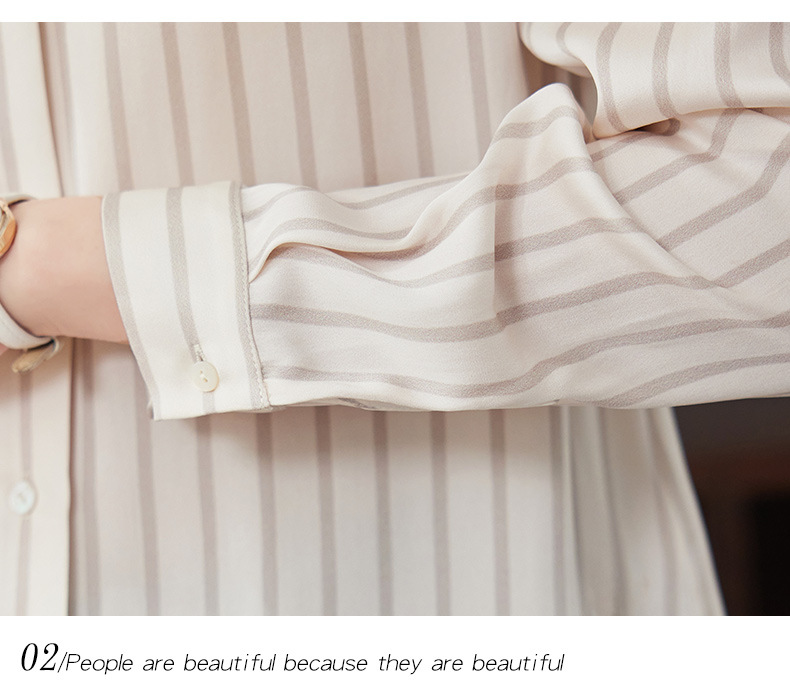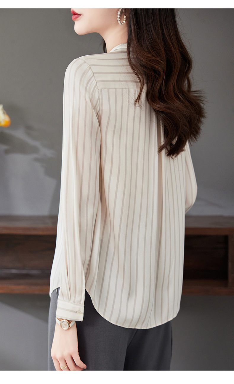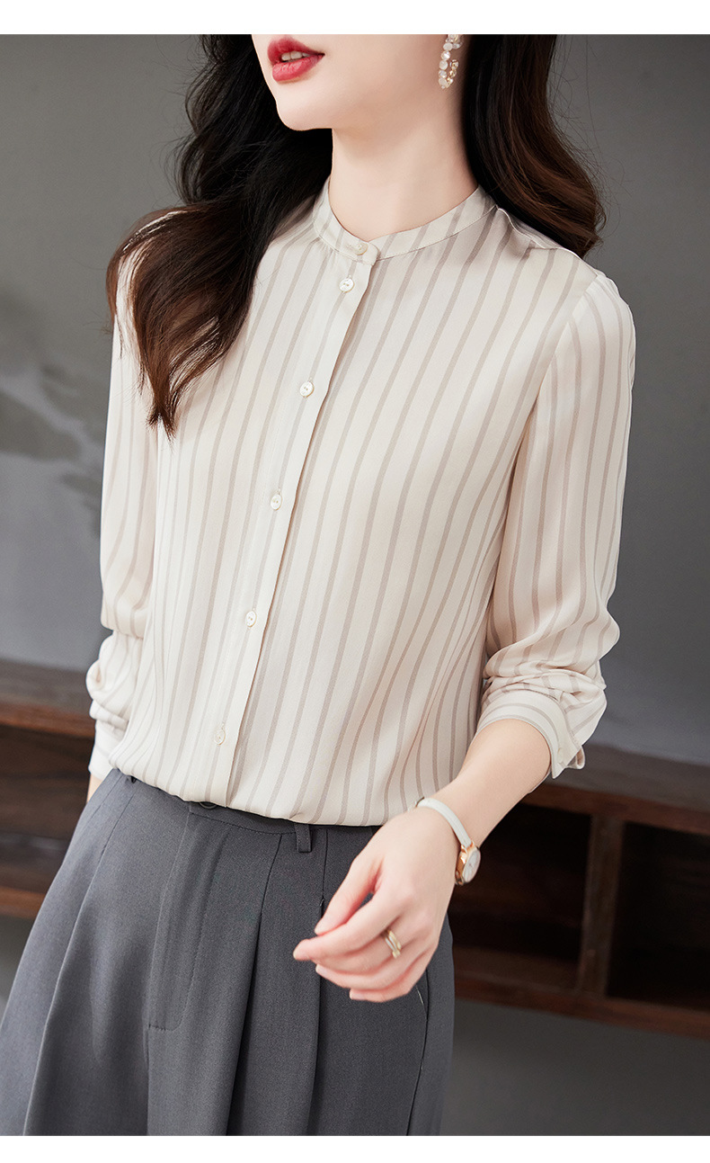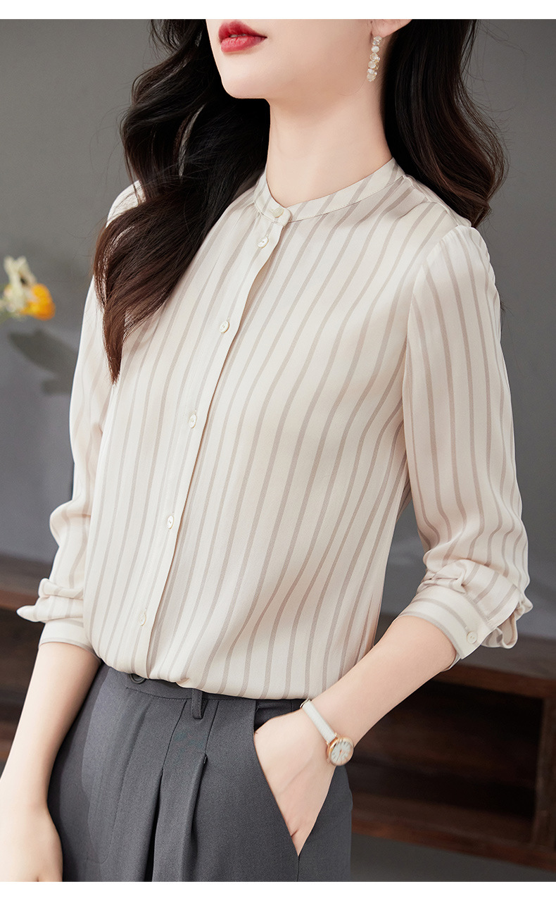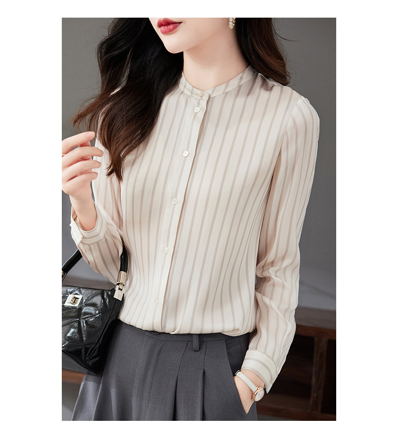 LS-9020重磅丝绸条纹真丝衬衫2023秋季新款通勤小衫气质桑蚕丝上衣