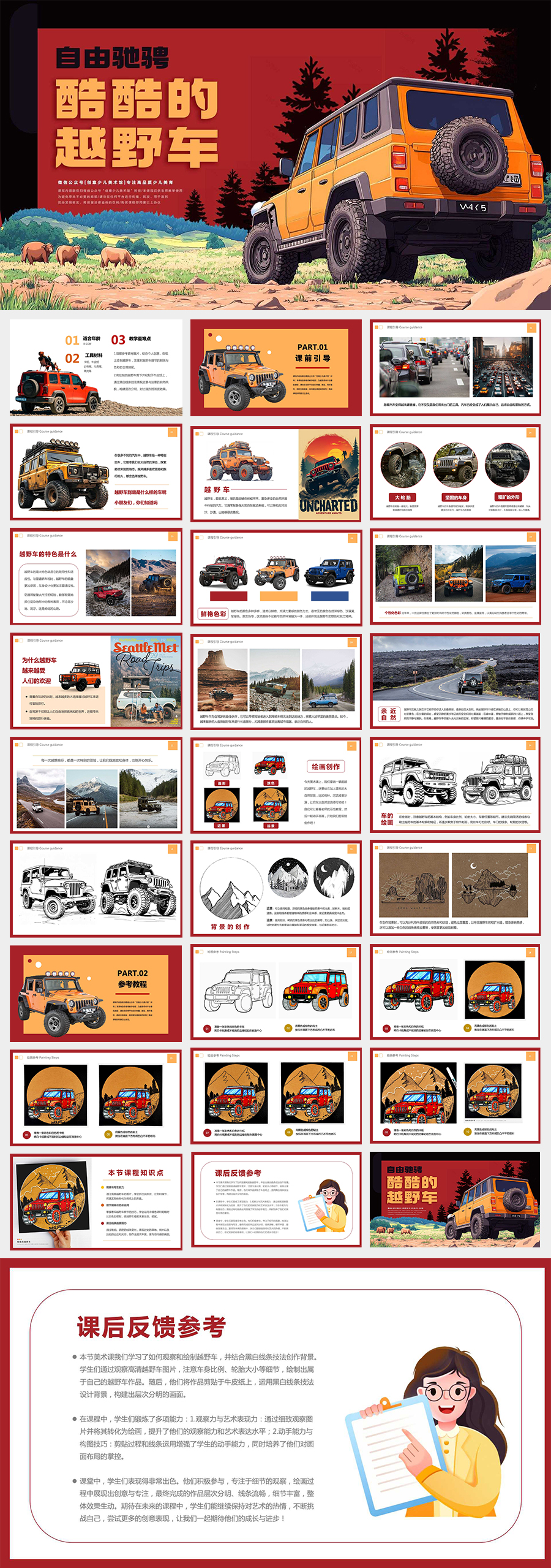 《一辆酷酷的越野车 》汽车线描交通工具写生【自动发货:下单后,点击手机短信中收到的链接,即可获取文件下载的链接;如有任何问题,可添加客服微信hm33268获得帮助】