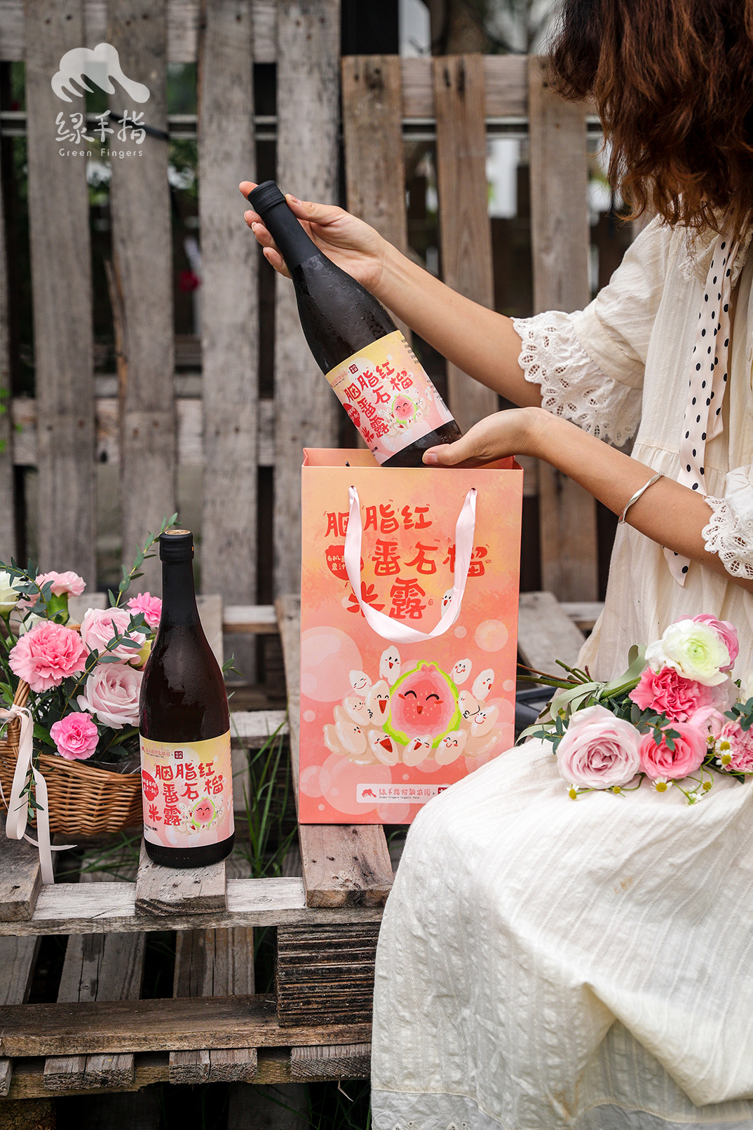 生产方式:主料为胭脂红番石榴和糯米,加入黄山山泉水及植物酒曲自然发酵,采用非遗酿造工艺酿造。