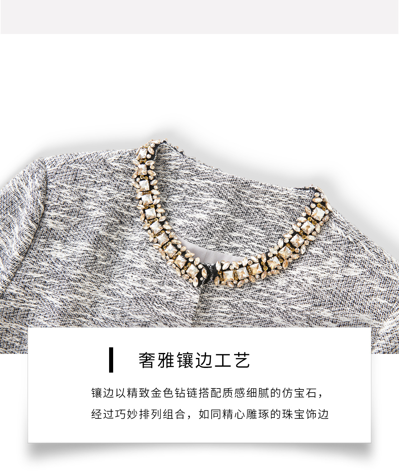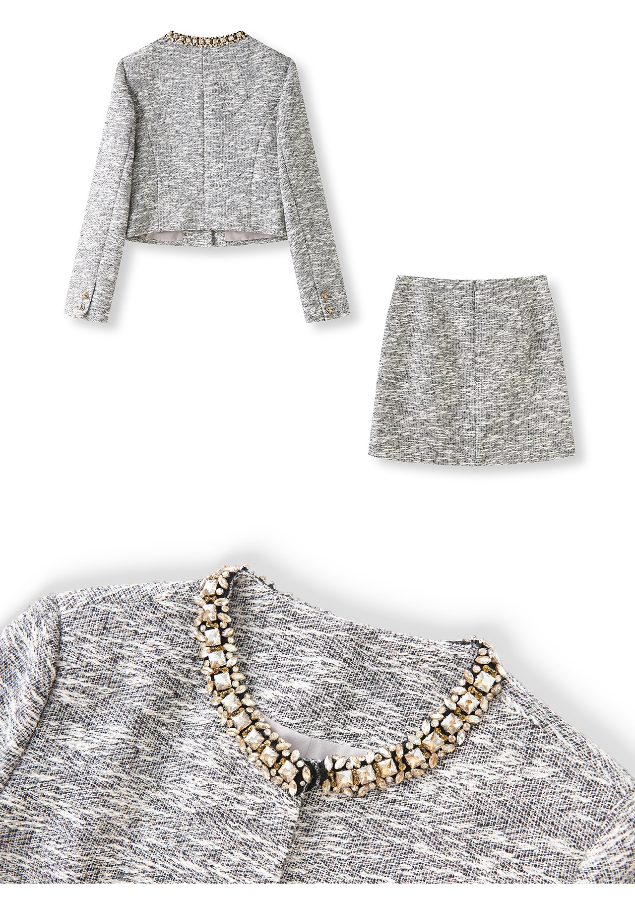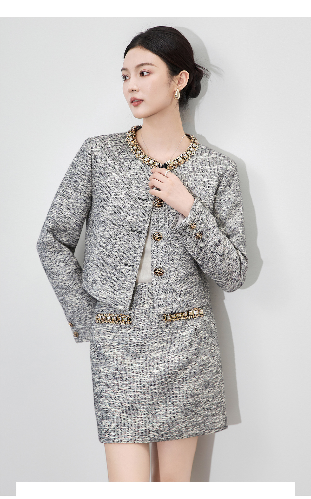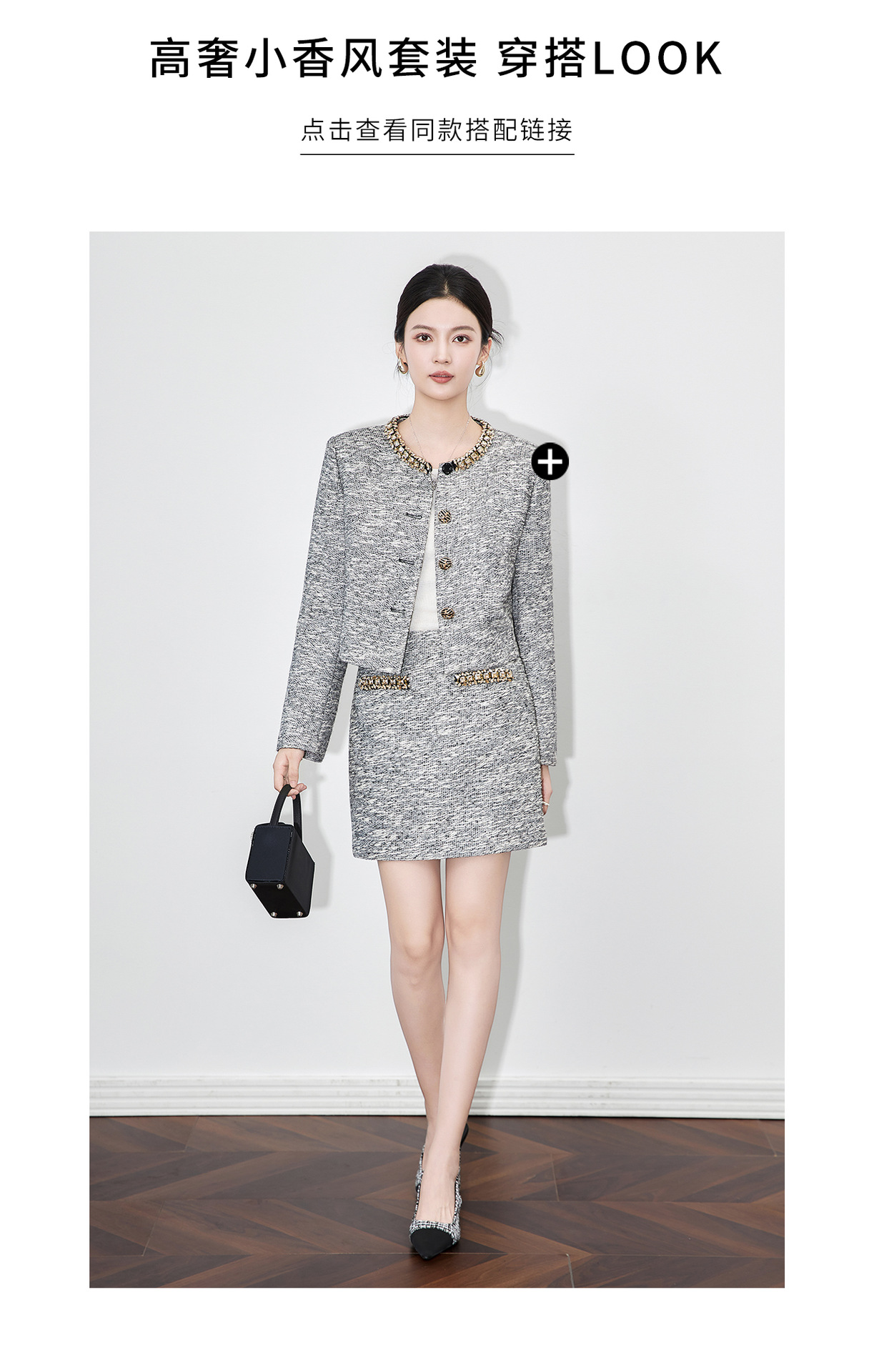 「高货wl」全新升级【铂金会员487/天猫659/差价172】(99537)洛诗琳轻奢小香粗花呢钉钻短外套上衣直筒半身裙两件套