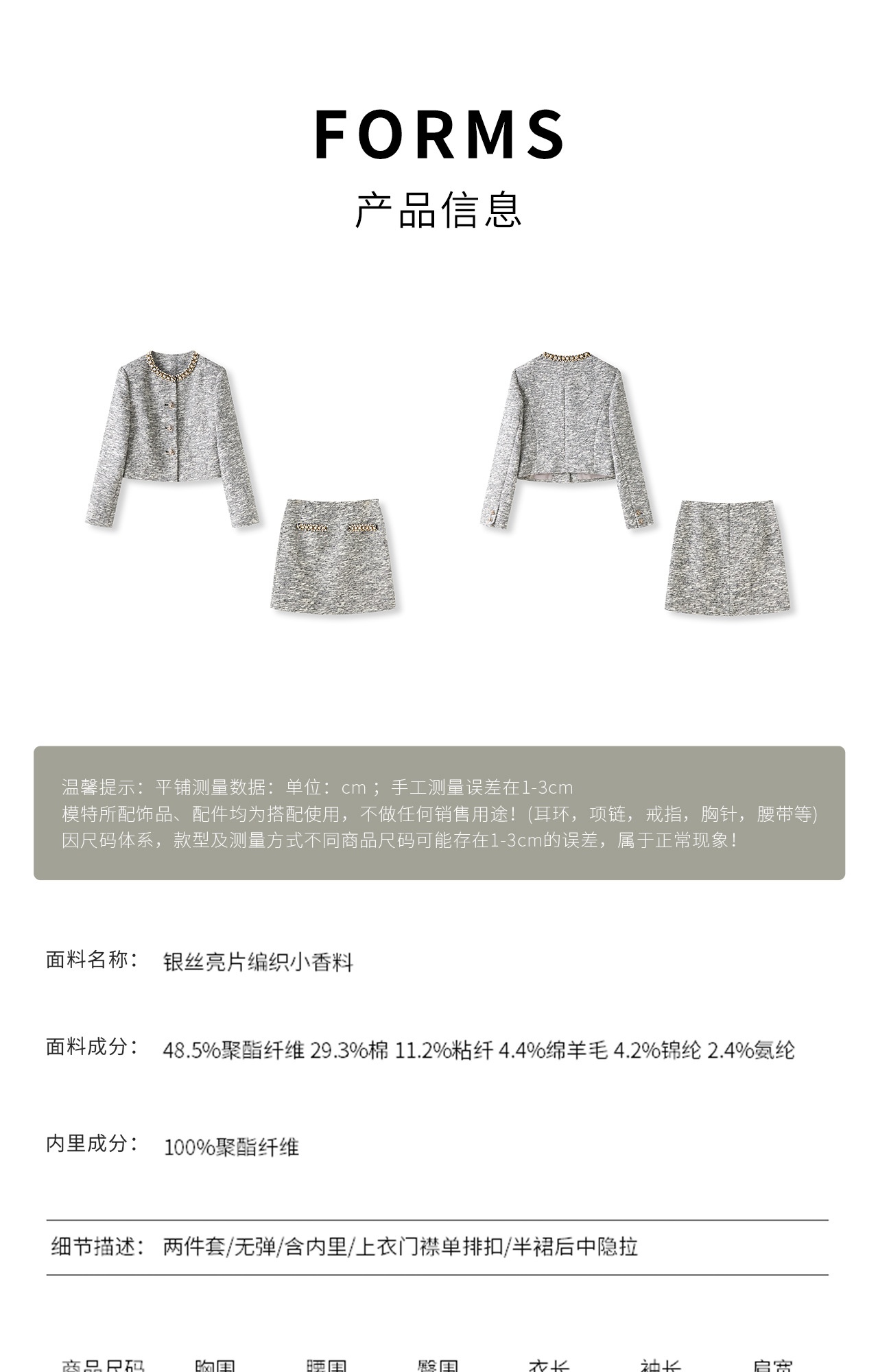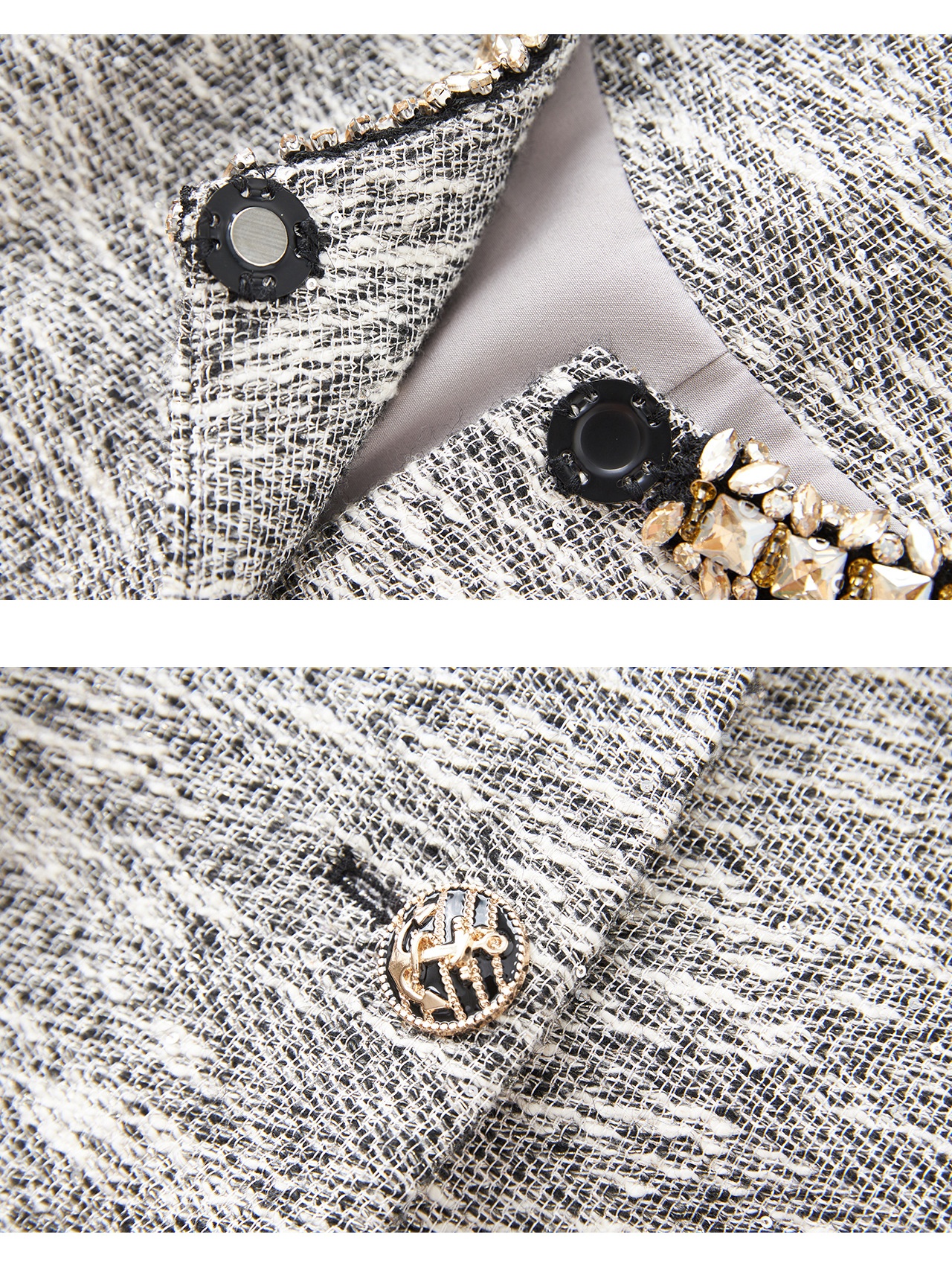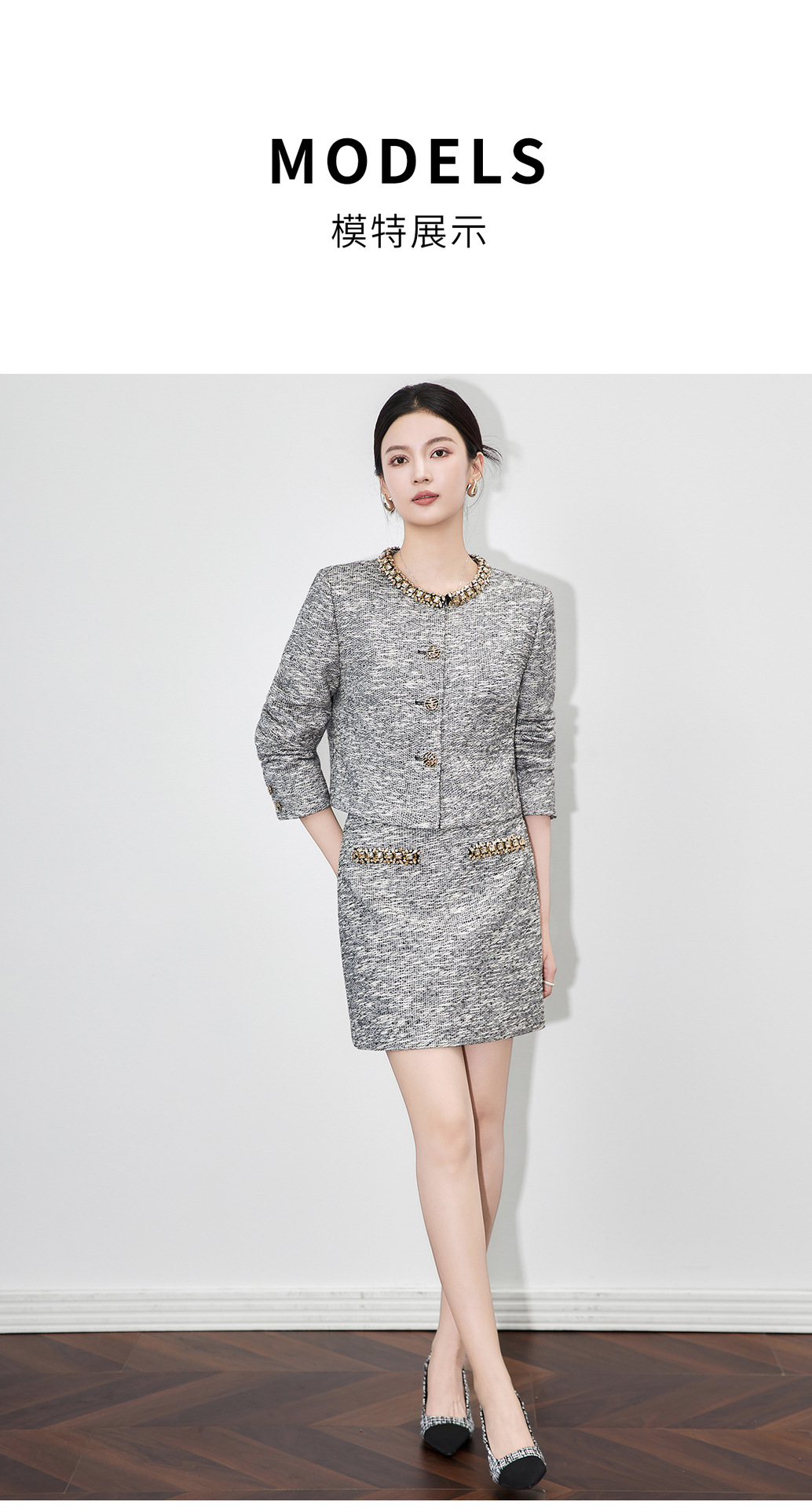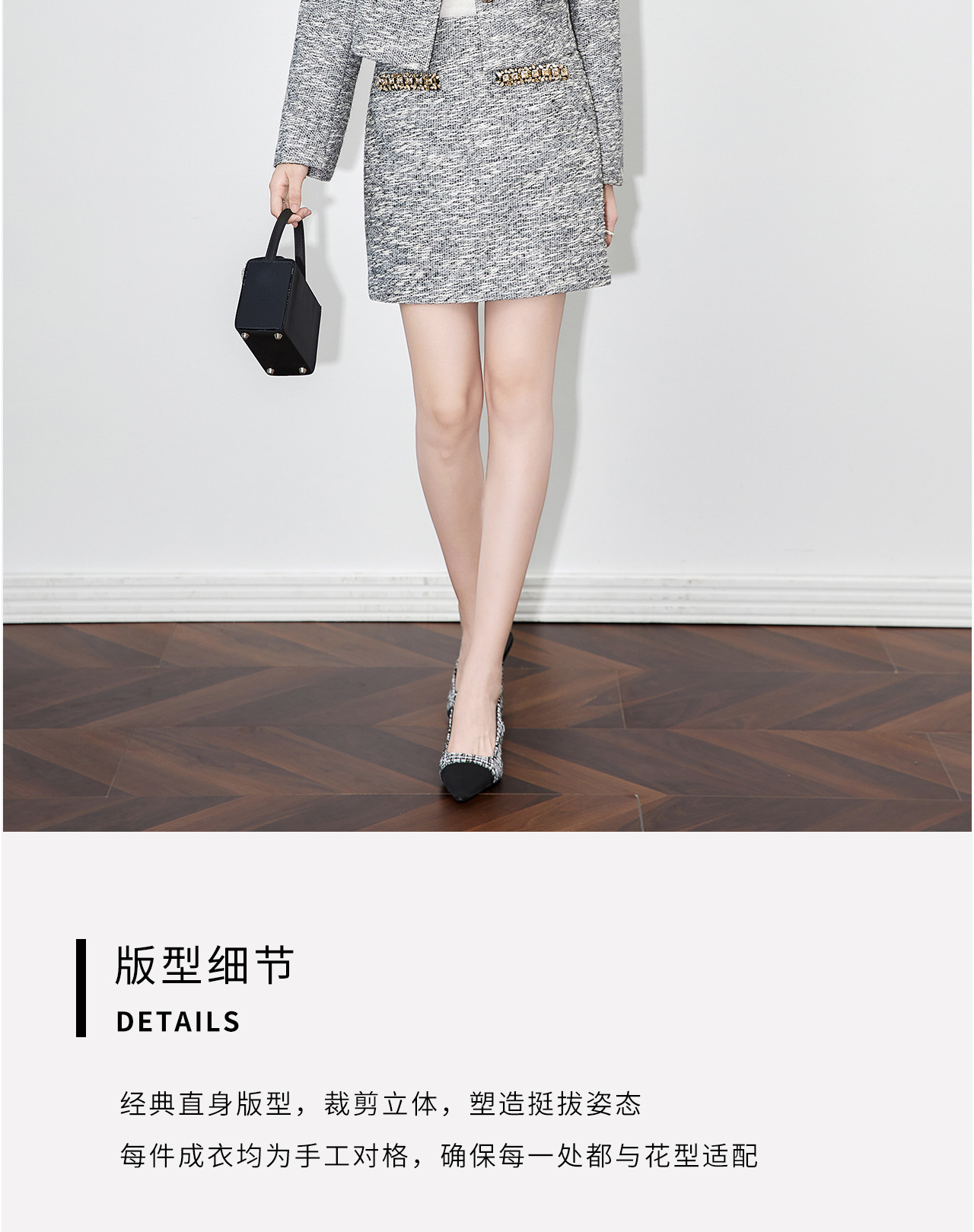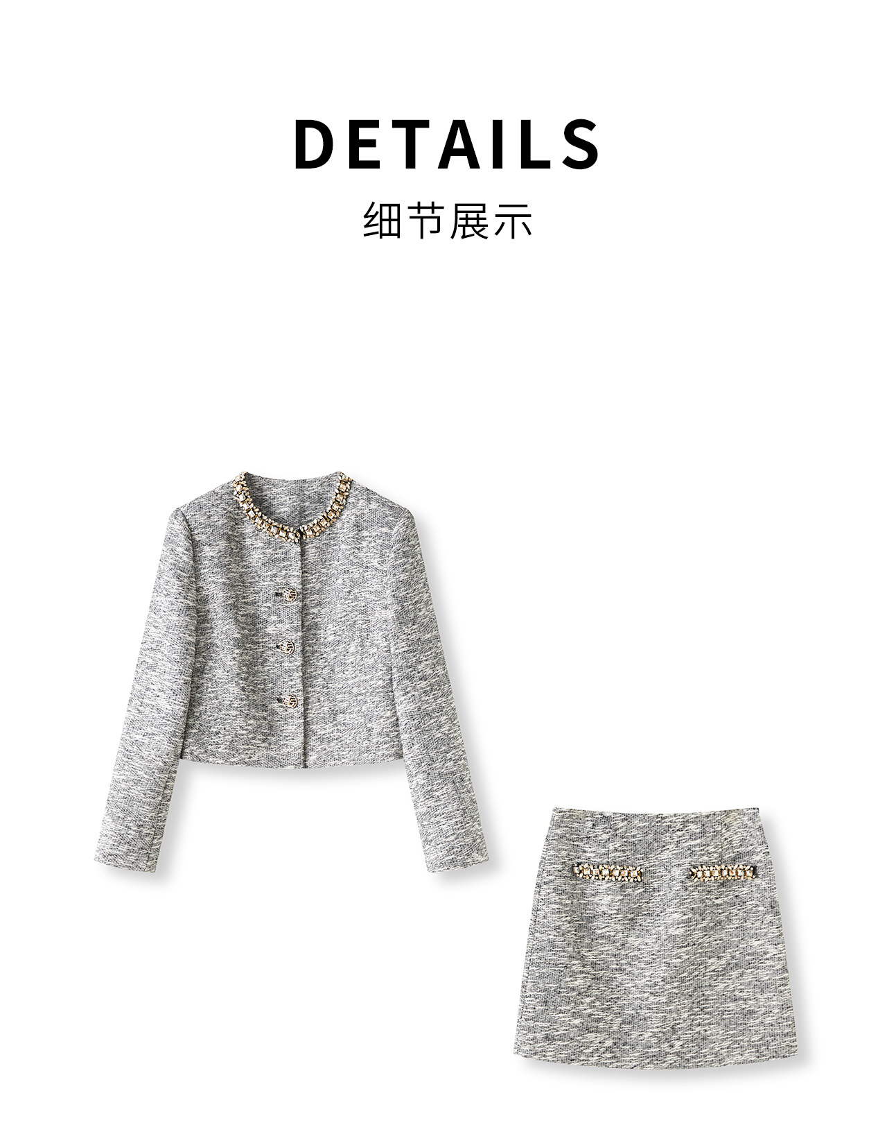 「高货wl」全新升级【铂金会员487/天猫659/差价172】(99537)洛诗琳轻奢小香粗花呢钉钻短外套上衣直筒半身裙两件套