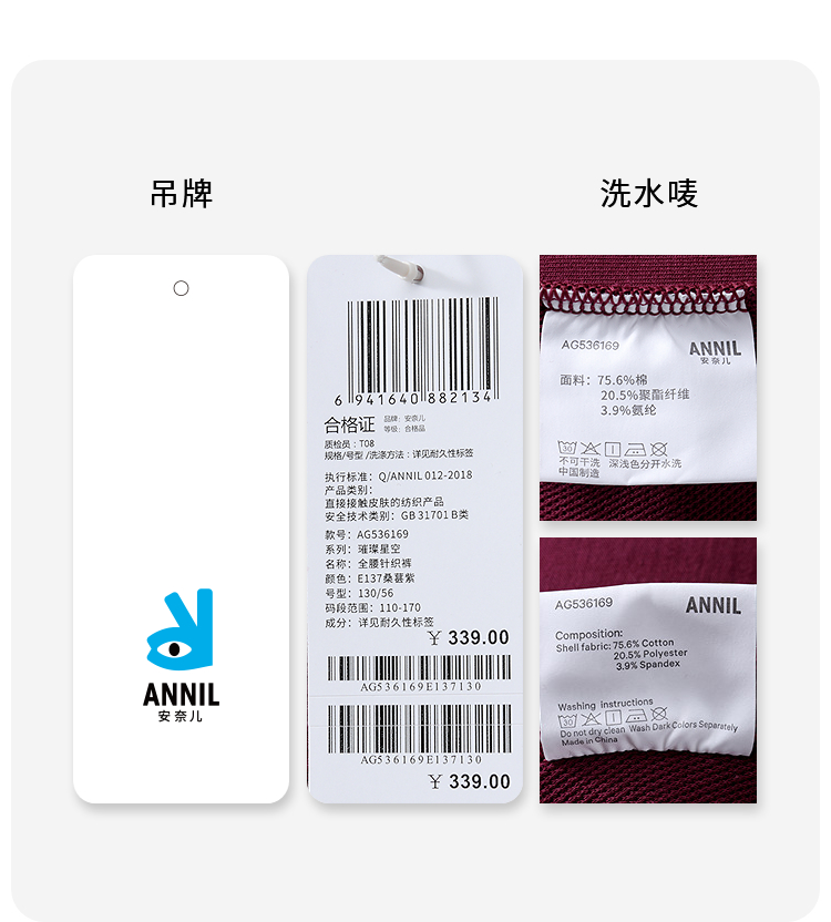 【实体店同款】女童全腰针织裤秋季新款安奈儿童装AG536169