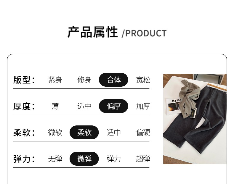 会员福利【绵羊毛+内里磨毛/不垮垂感】拉夏贝尔/La Chapelle秋冬新款通勤直筒裤!高级感斜纹加厚西裤