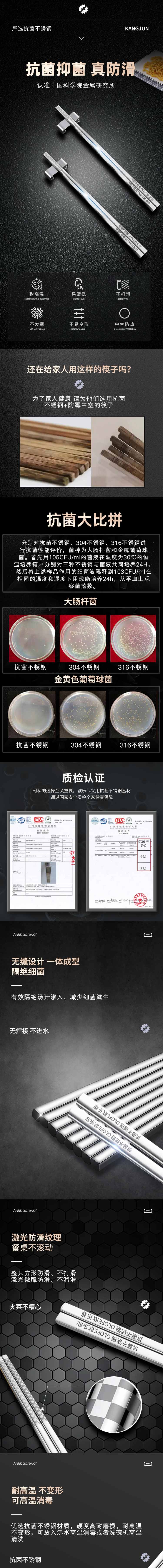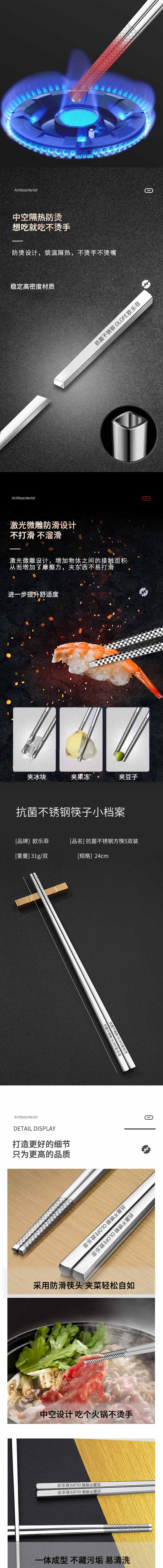 【官方正品保证】 欧乐菲抗菌不锈钢筷子高档防烫防霉家用家庭套装餐厅快子5双金属-OLOKZ-02