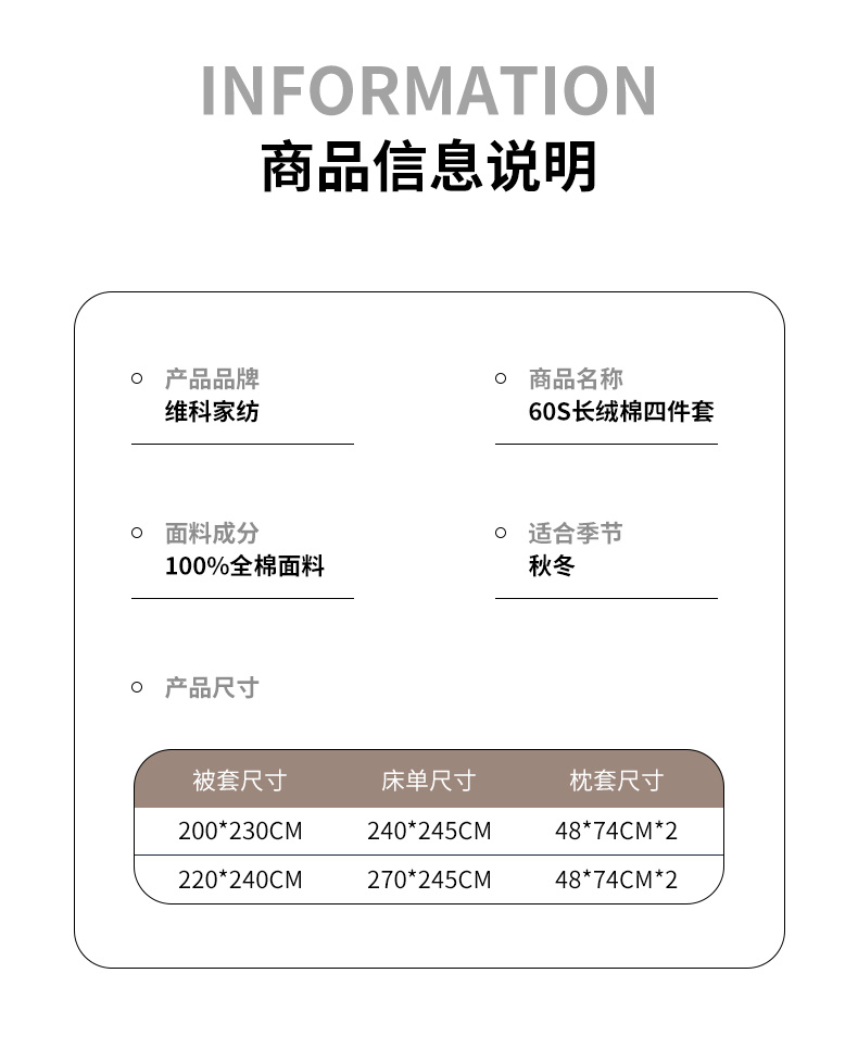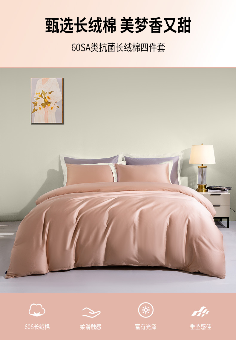【维科家纺】A类60S抗菌长绒棉四件套全棉纯棉床单被套床品1.8米床1.5
