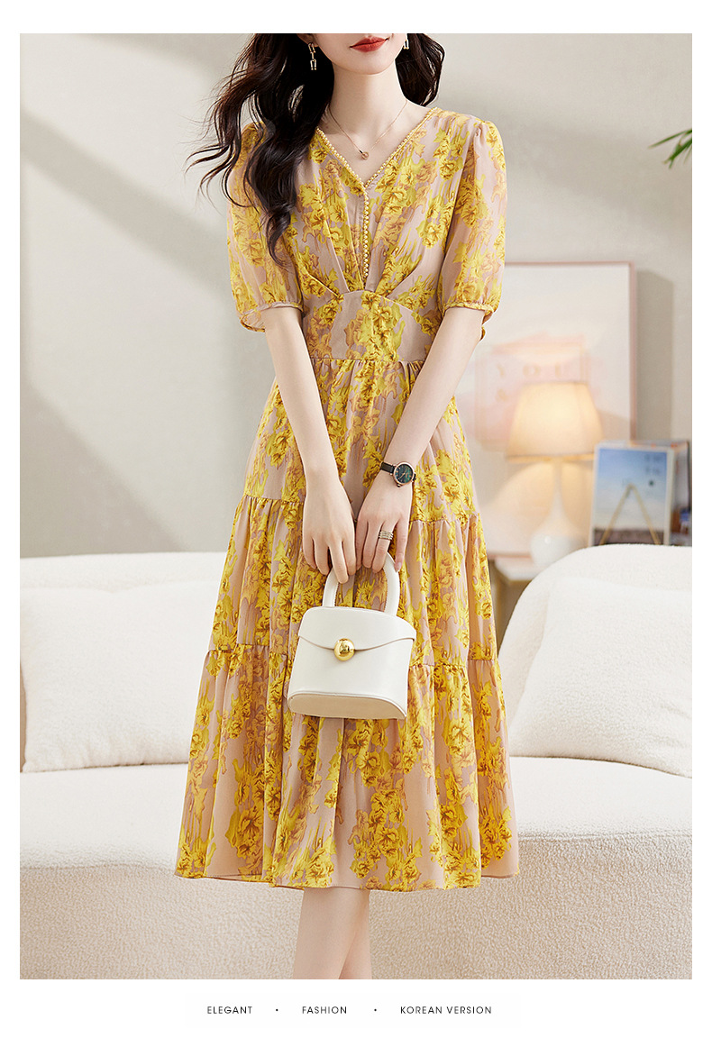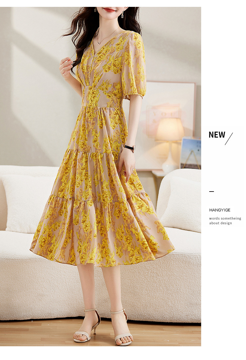 时尚气质显瘦,法式碎花连衣裙HR-ZRX5181