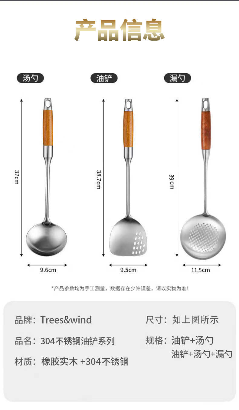 【重量】锅铲:185g / 汤勺:200g / 漏勺:200g