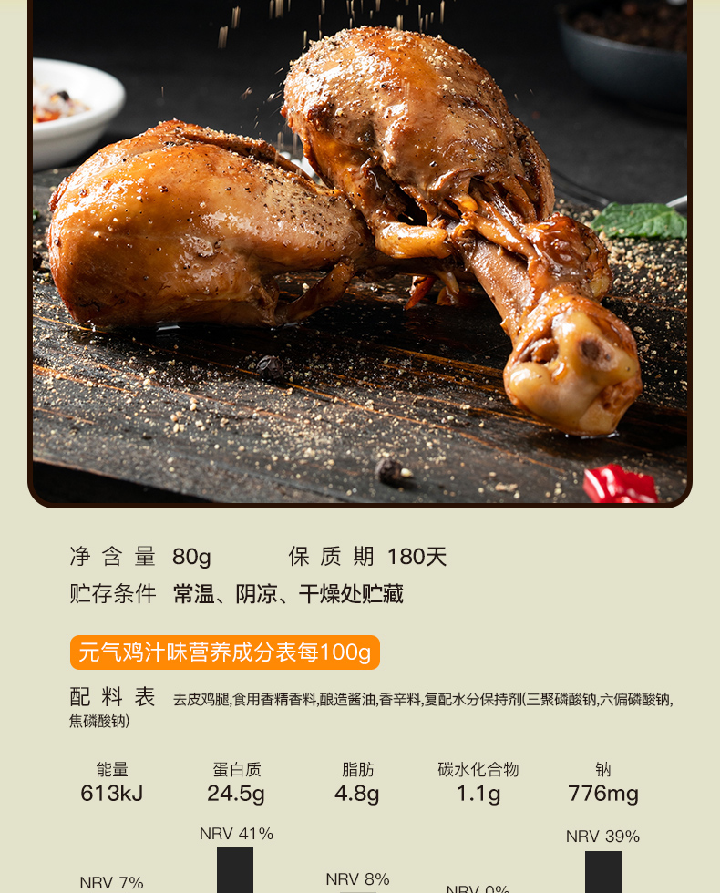 【暴肌独角兽 去皮鸡腿】高蛋白 不添加一滴油 精选优质鸡腿 独立真空包装80g/袋